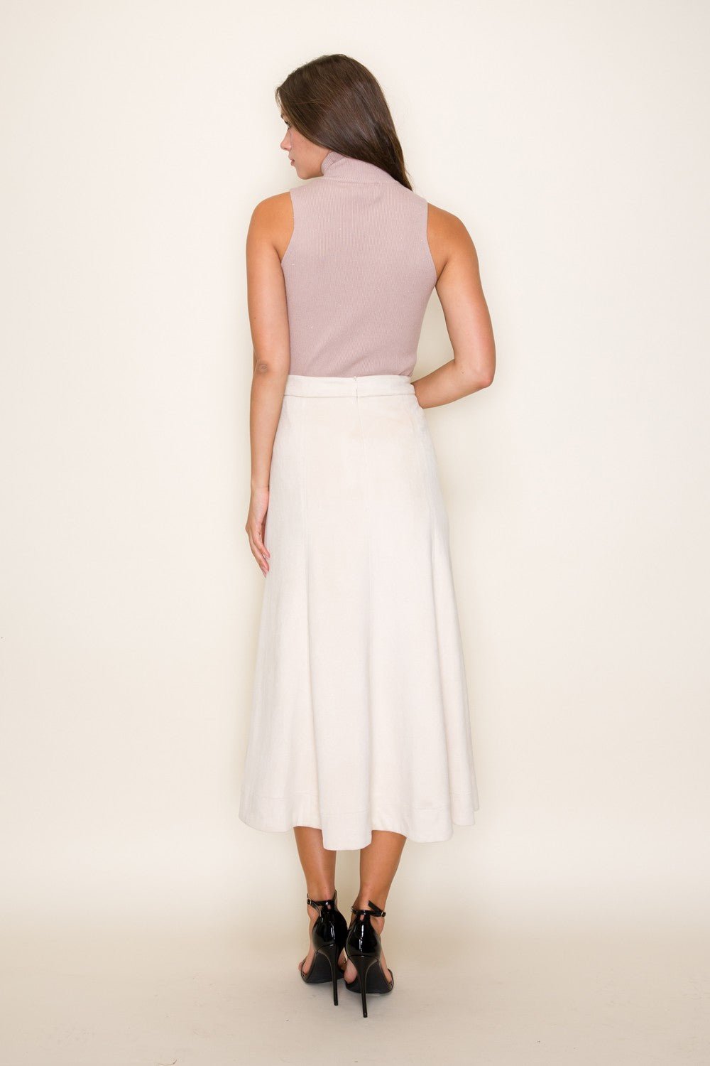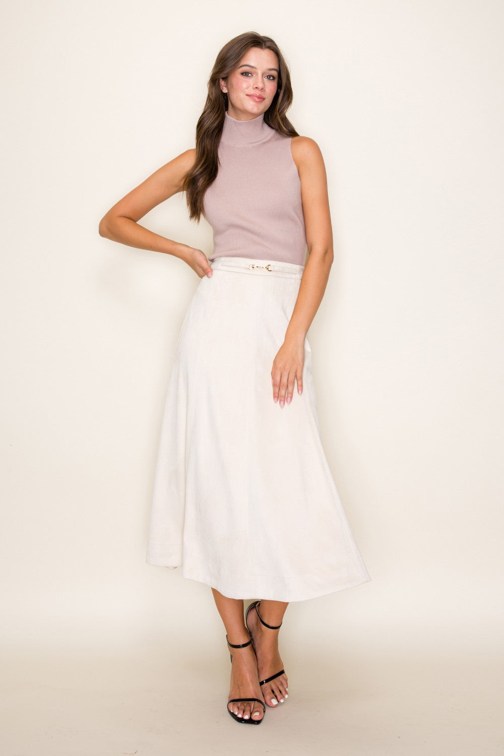 Step out in style with this Gold Charm Belt Suede A-Line Midi Skirt! The soft suede fabric adds a touch of luxury, while the gold charm belt gives your waist a playful sparkle. Its flattering A-line cut flows effortlessly, making every twirl a moment to shine. Perfect for mixing casual cool with a dash of glam!