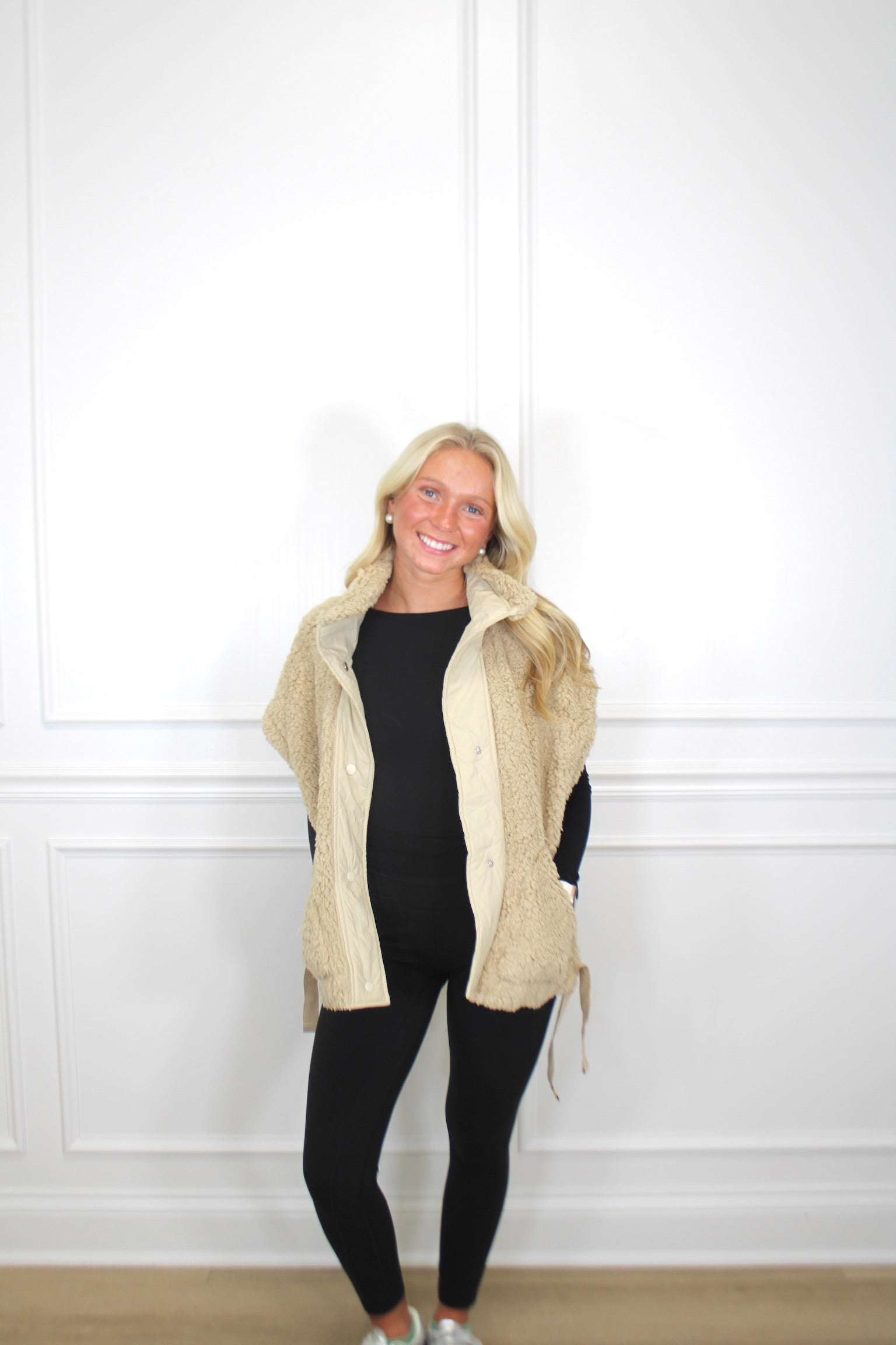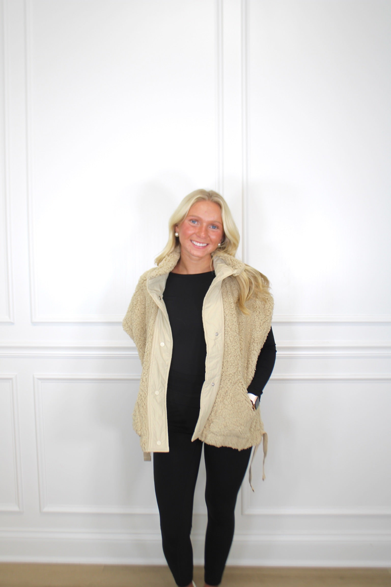 Wrap yourself in cozy luxury with this oversized sherpa fur sleeveless vest jacket! Perfect for layering over your favorite outfits, this plush piece brings instant warmth and effortless style. The soft, cloud-like sherpa fabric feels amazing against your skin, while the relaxed fit lets you move freely. Whether you're heading out for a casual day or snuggling up indoors, this versatile vest adds that perfect touch of comfort and charm to any look. Your new go-to for feeling fabulous and toasty!