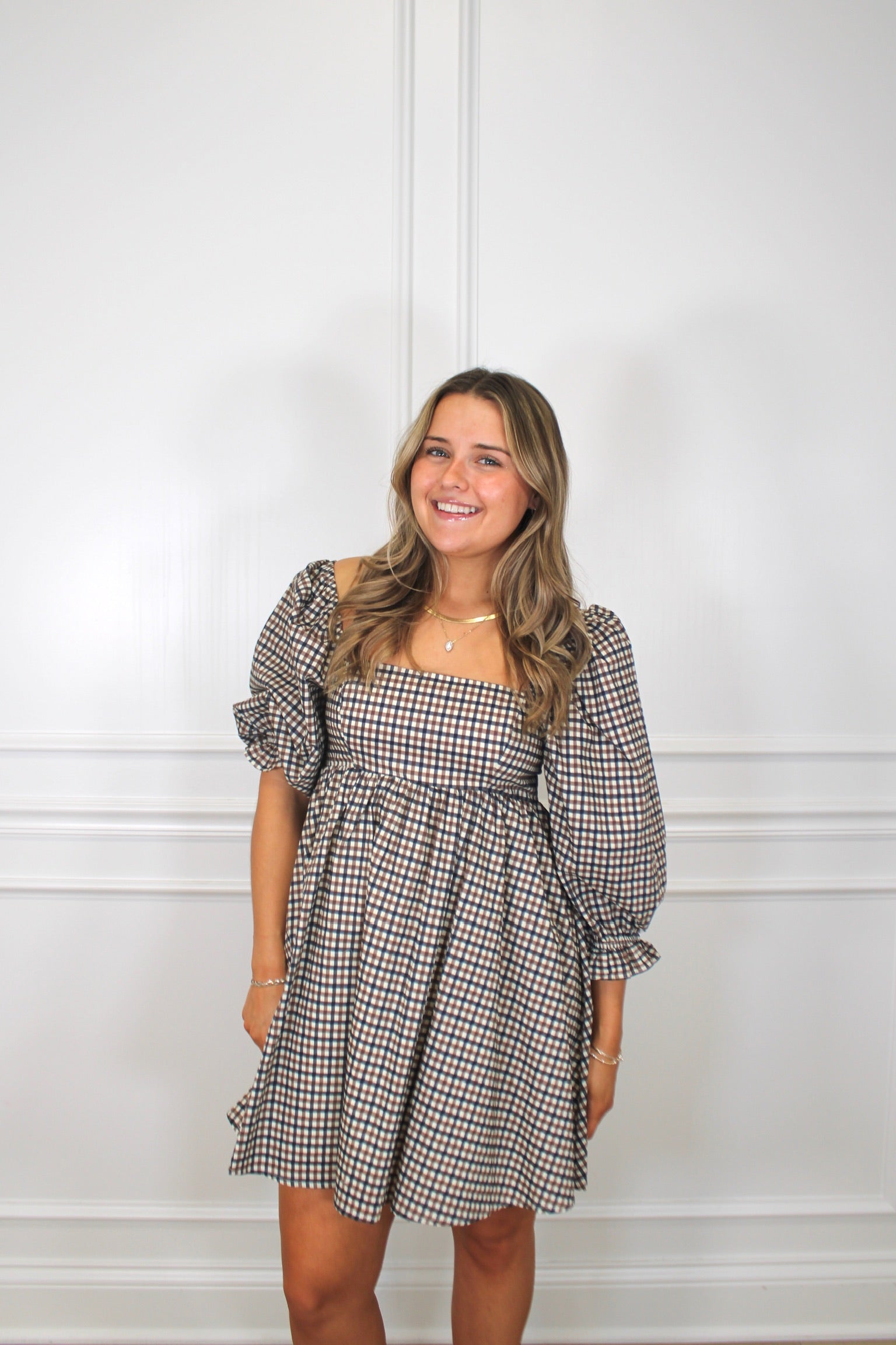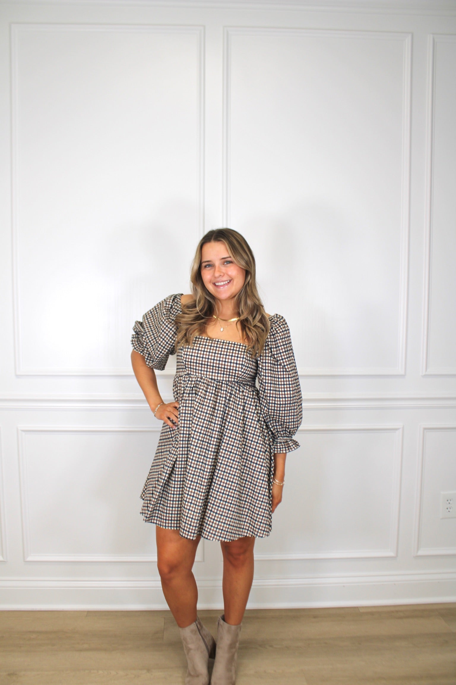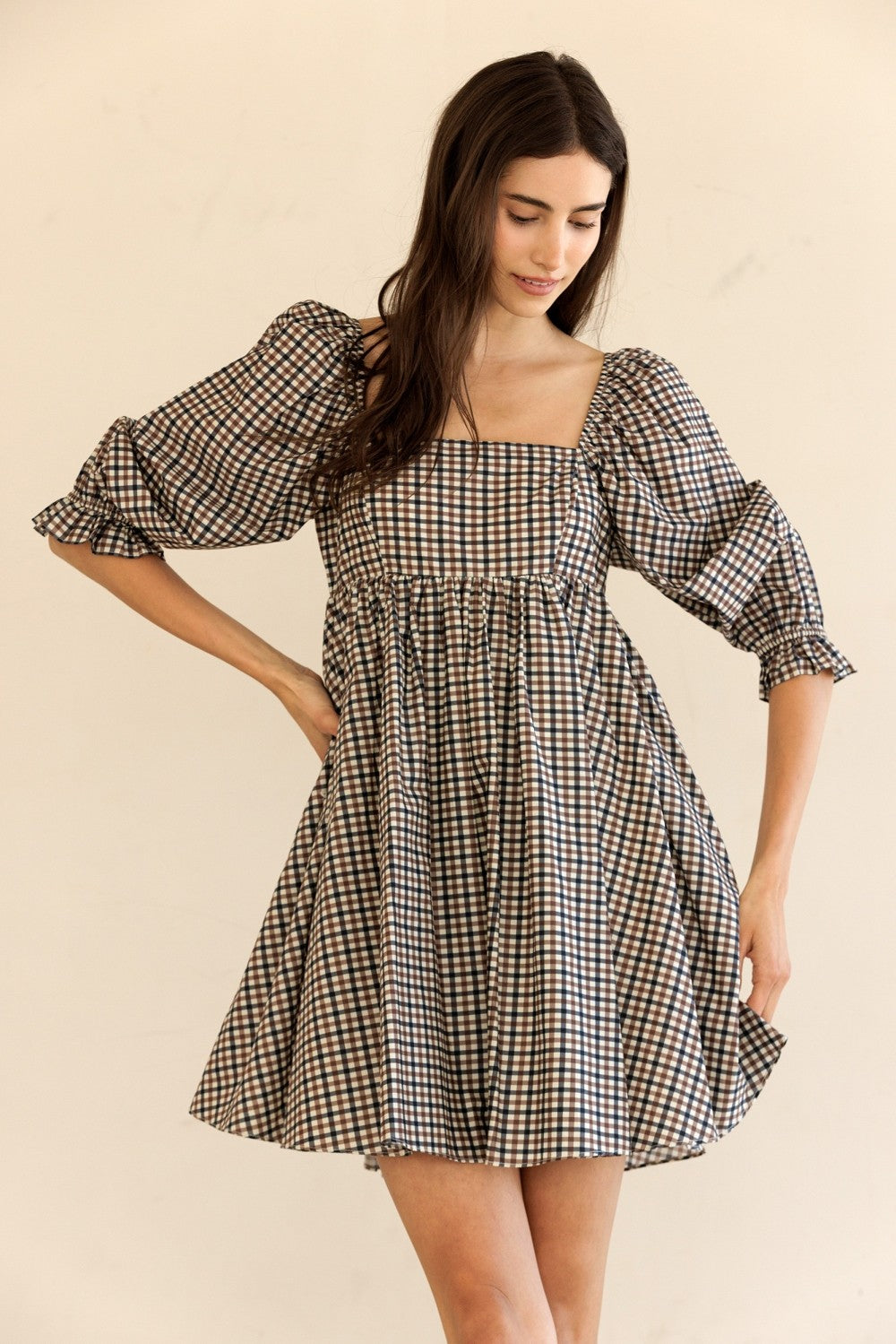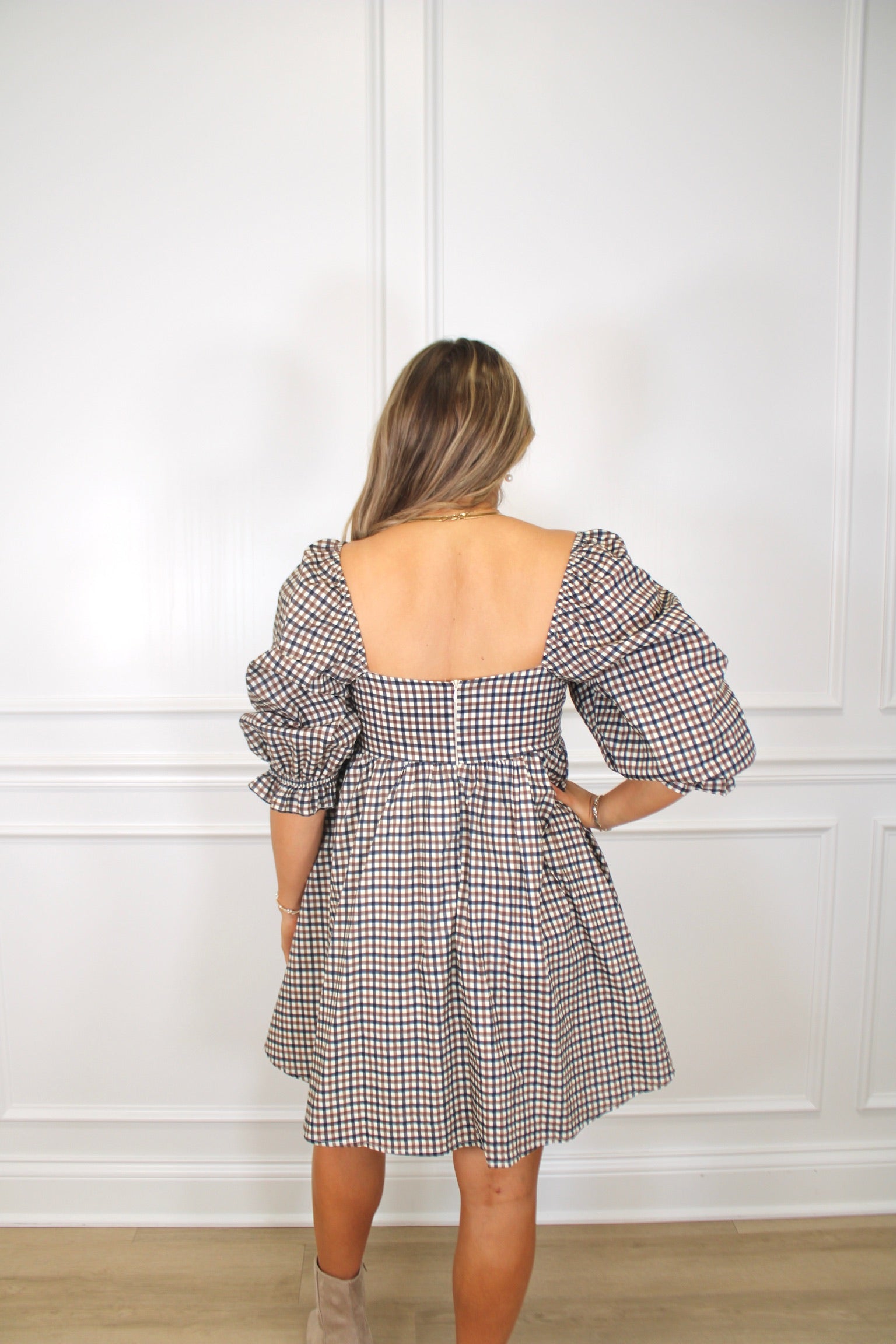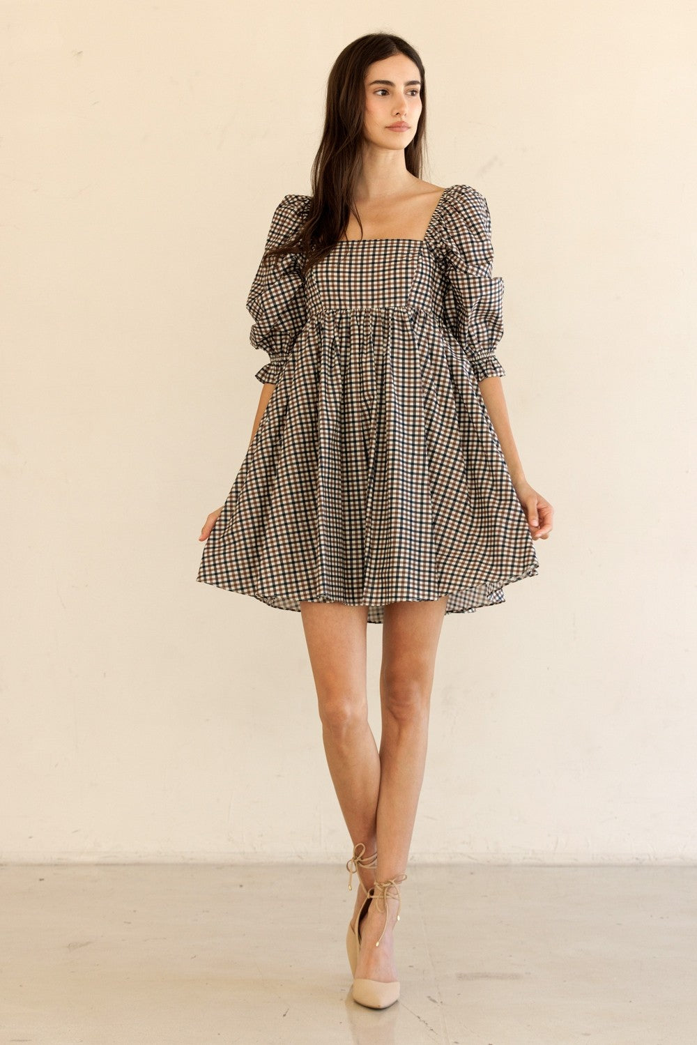Gingham never goes out of style—especially in this adorable mini dress! The charming checked pattern pairs perfectly with a flattering square neckline and romantic puff sleeves that add just the right amount of whimsy. Whether you're heading to brunch, a garden party, or a casual date night, this playful piece brings effortless charm and vintage-inspired flair to any occasion. Dress it up with heels or keep it casual with sneakers—either way, you'll turn heads!