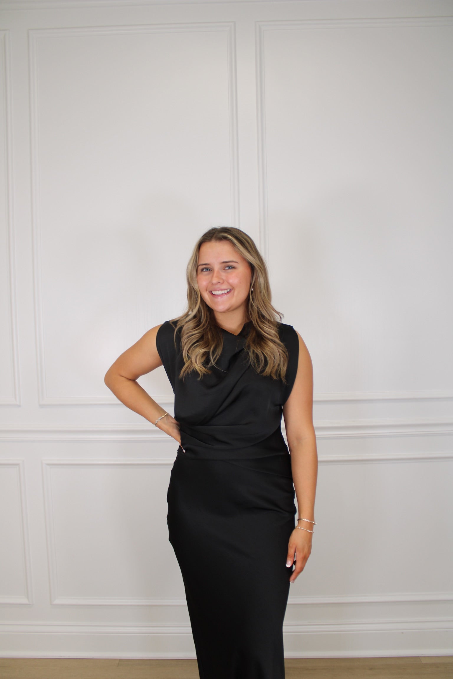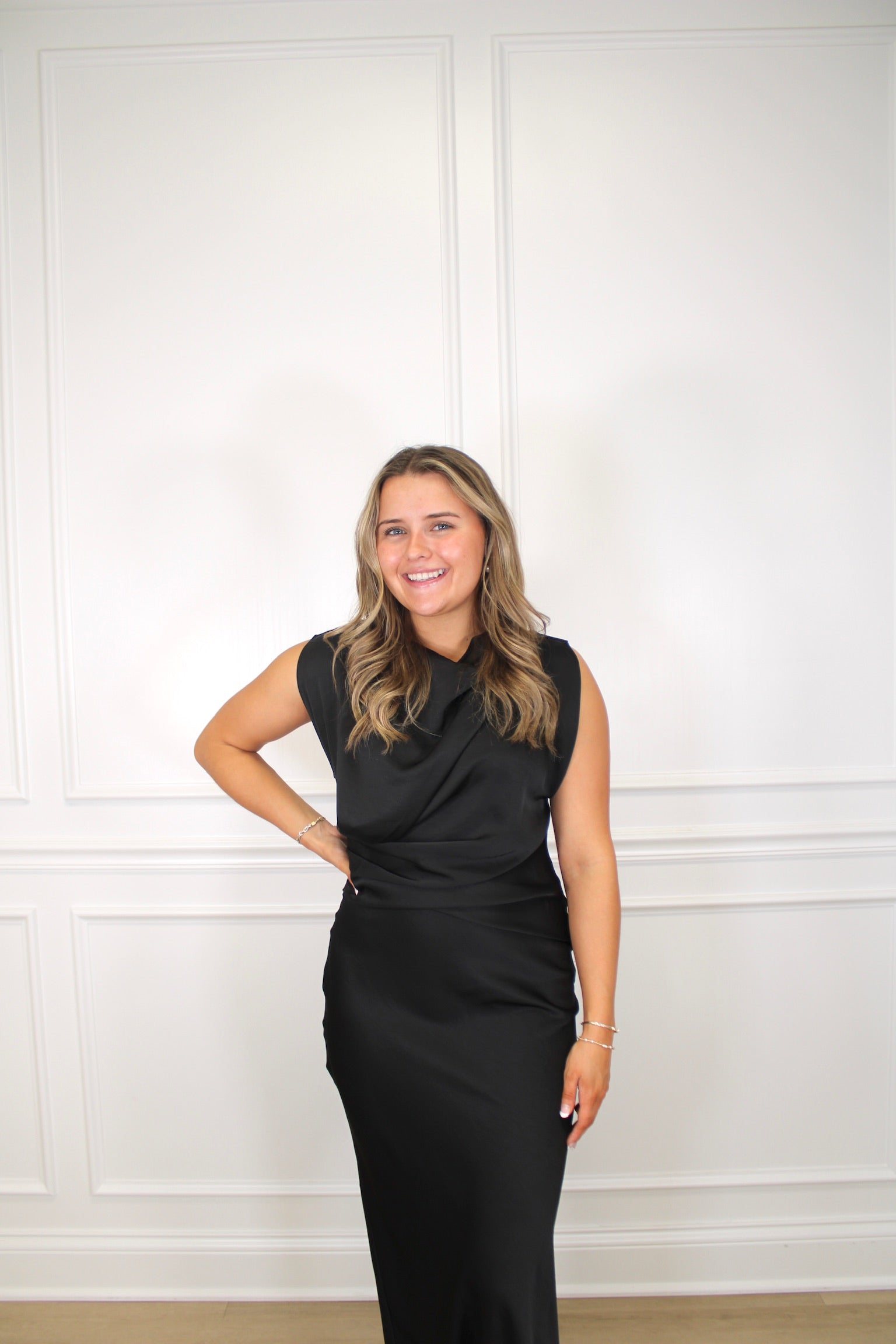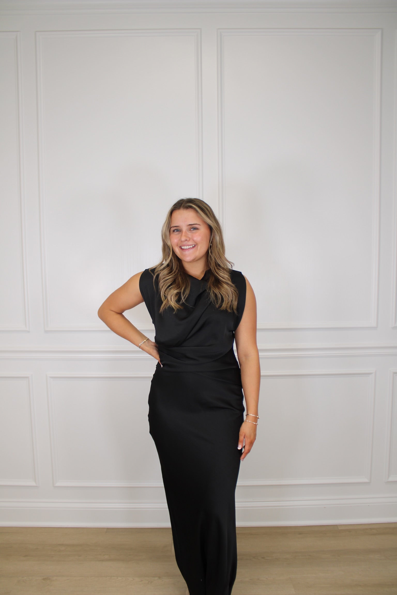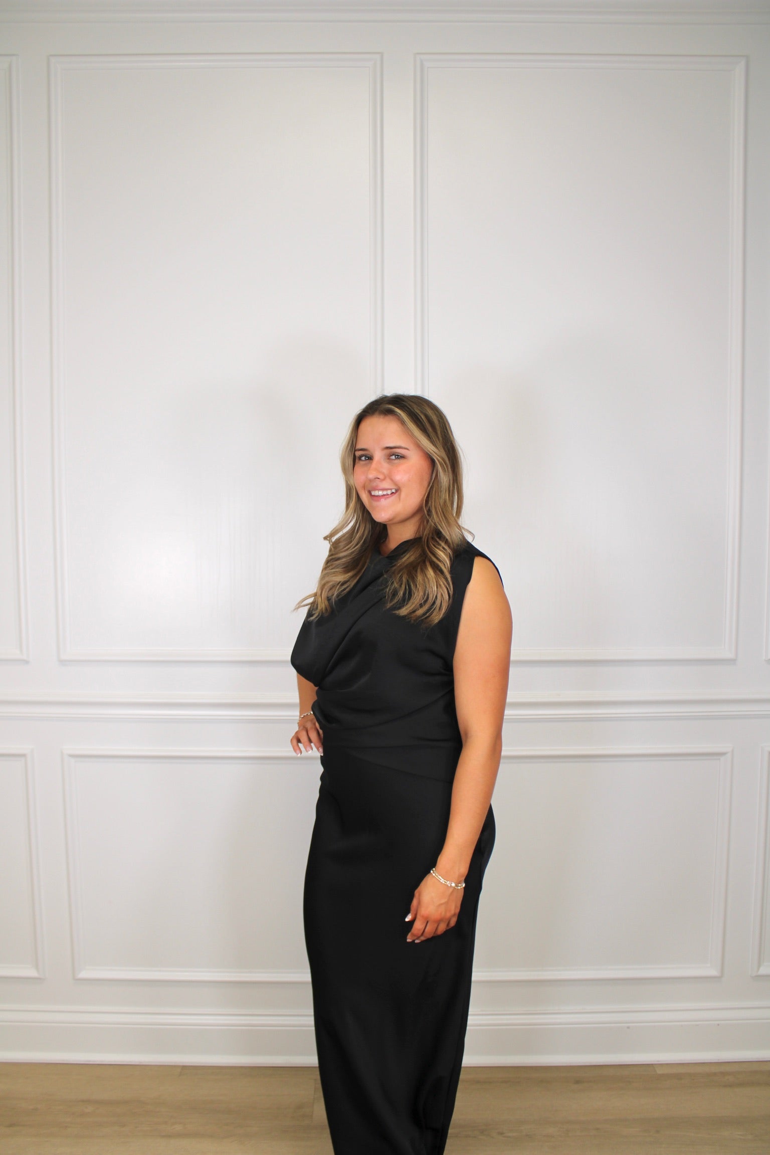 Slip into elegance with this stunning mock neck column dress that glides all the way to your ankles. The silky satin fabric drapes beautifully, creating a sleek silhouette that's perfect for everything from cocktail parties to special dinners. The mock neck adds a touch of sophistication while keeping things modern and chic. Whether you're dressing up for date night or turning heads at an event, this timeless piece proves that sometimes the simplest styles make the biggest impact. Pure satin sophistication, ready to steal the show.