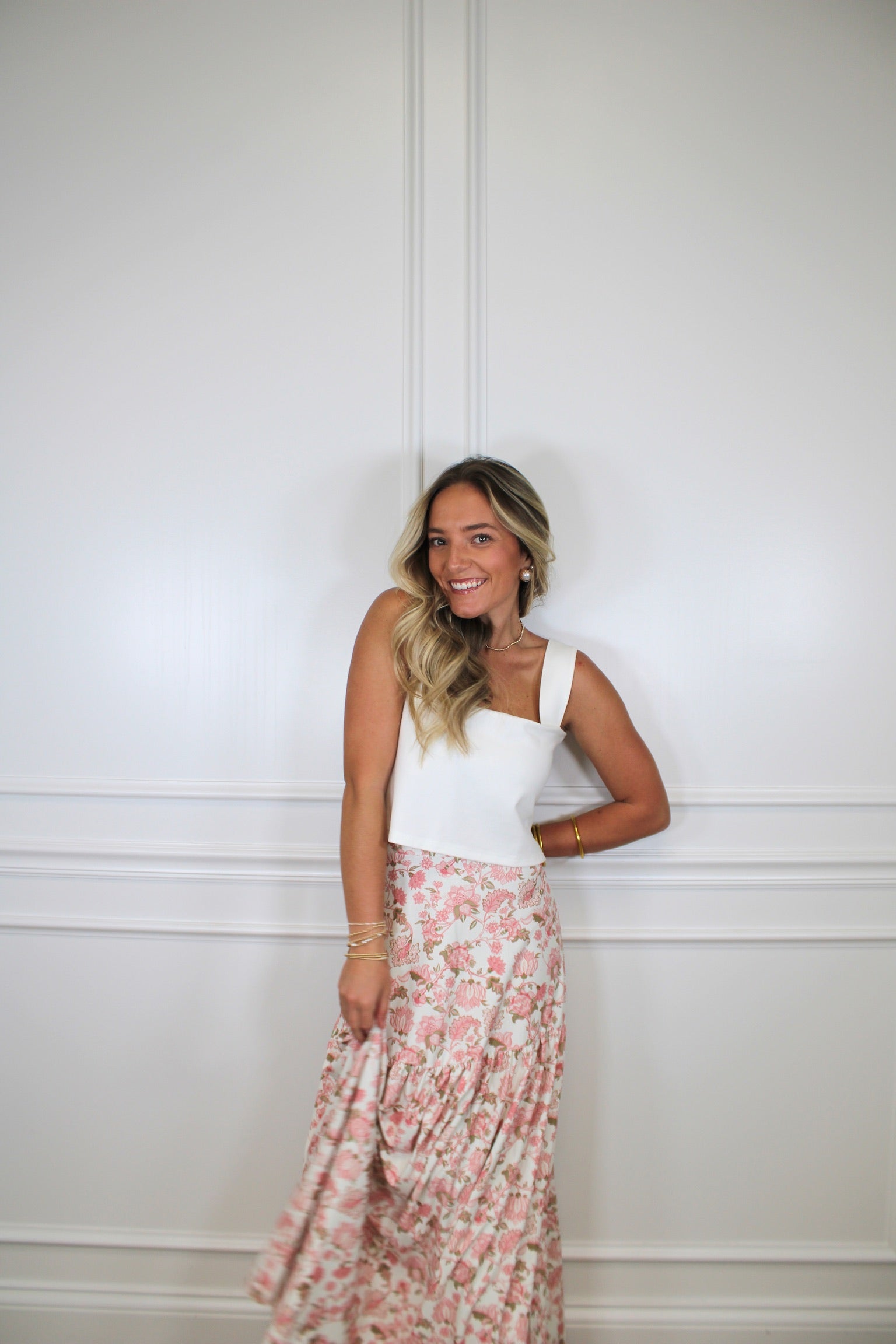 Faye Maxi Skirt - S / Pink is backordered and will ship as soon as it is back in stock.