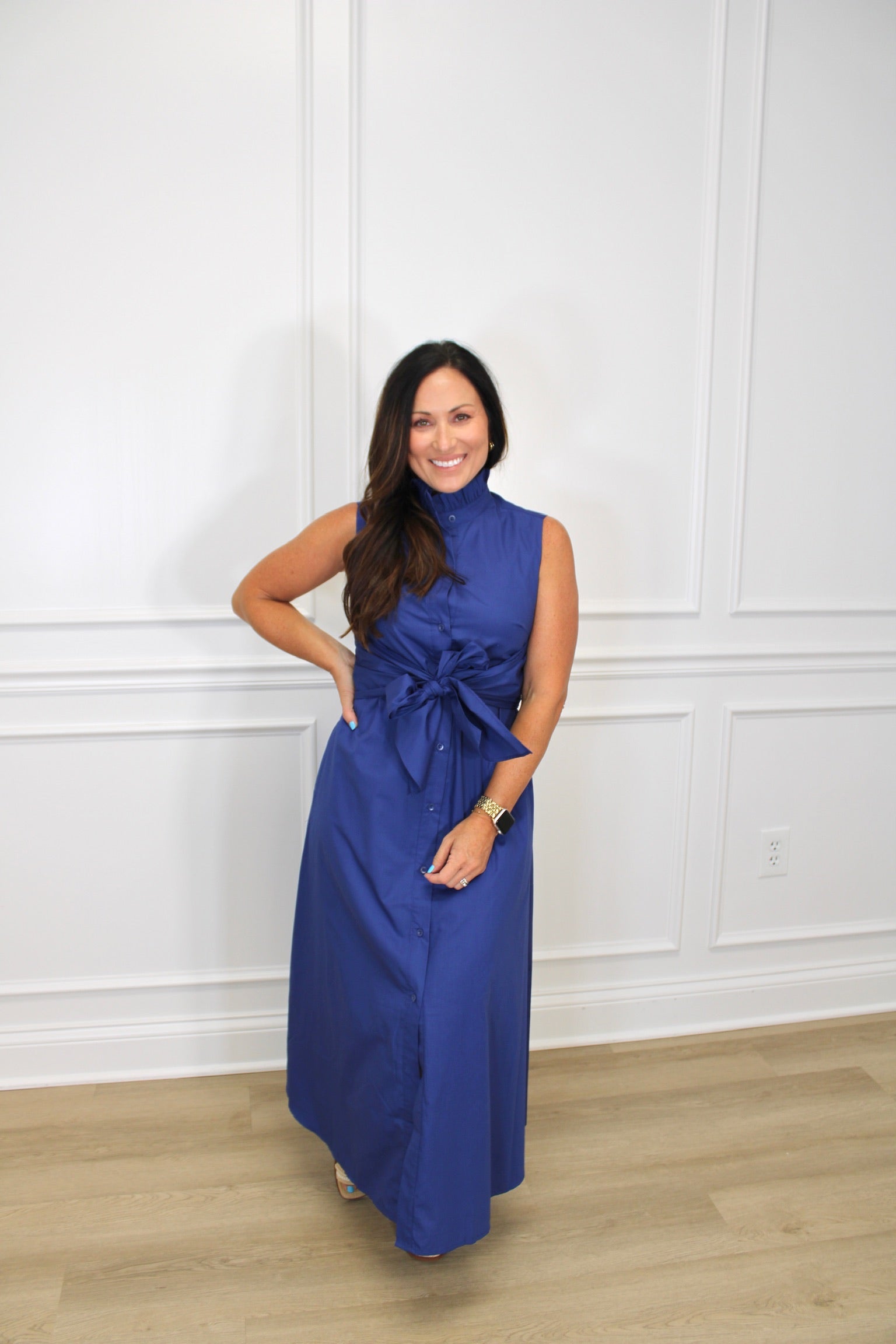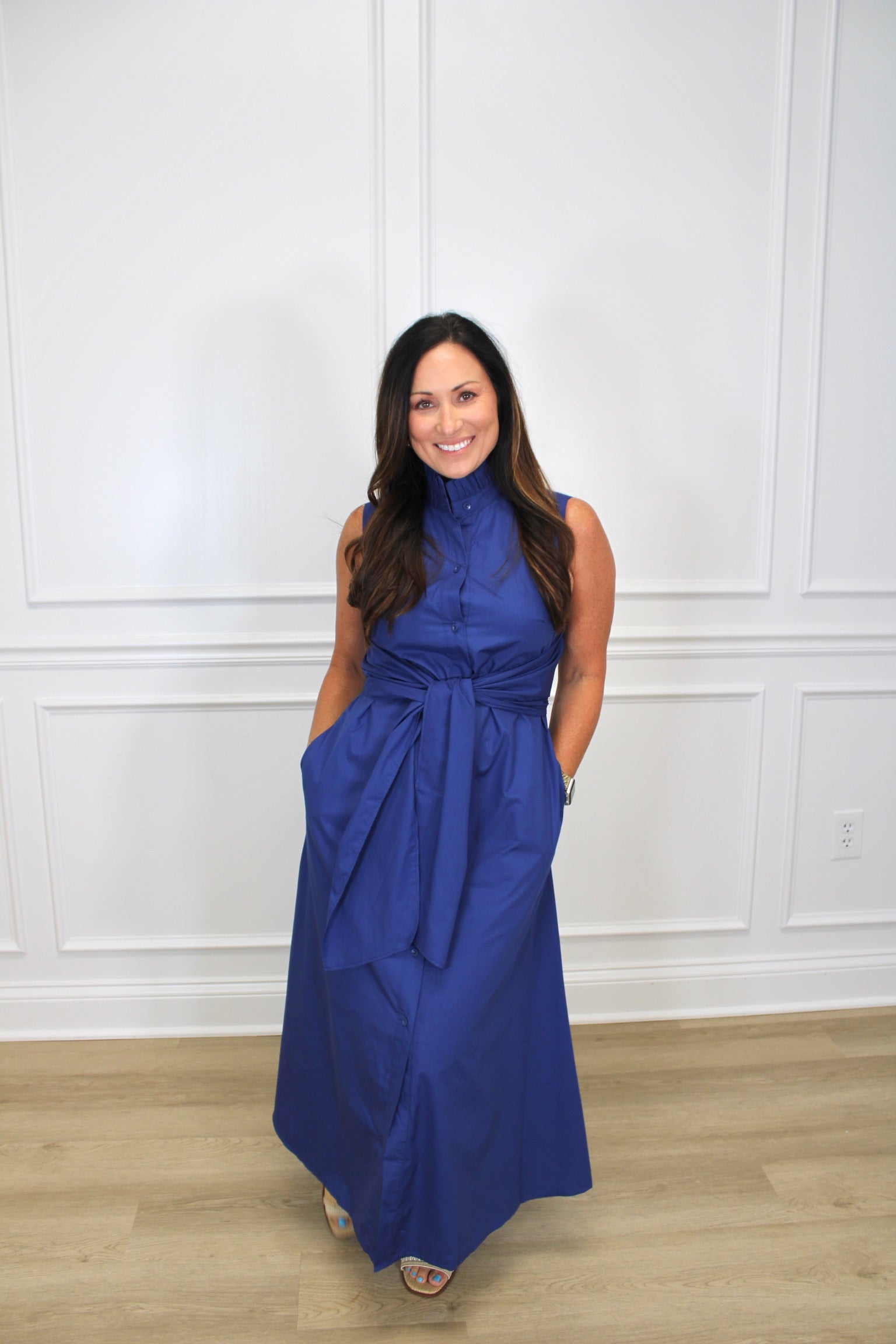 Slip into the Take Me Back Maxi, a playful navy sleeveless dress that wraps beautifully at the back for a flirty twist. Its classic maxi length flows effortlessly, making it perfect for sunny days or evening strolls. Embrace timeless style with a fun, modern edge.