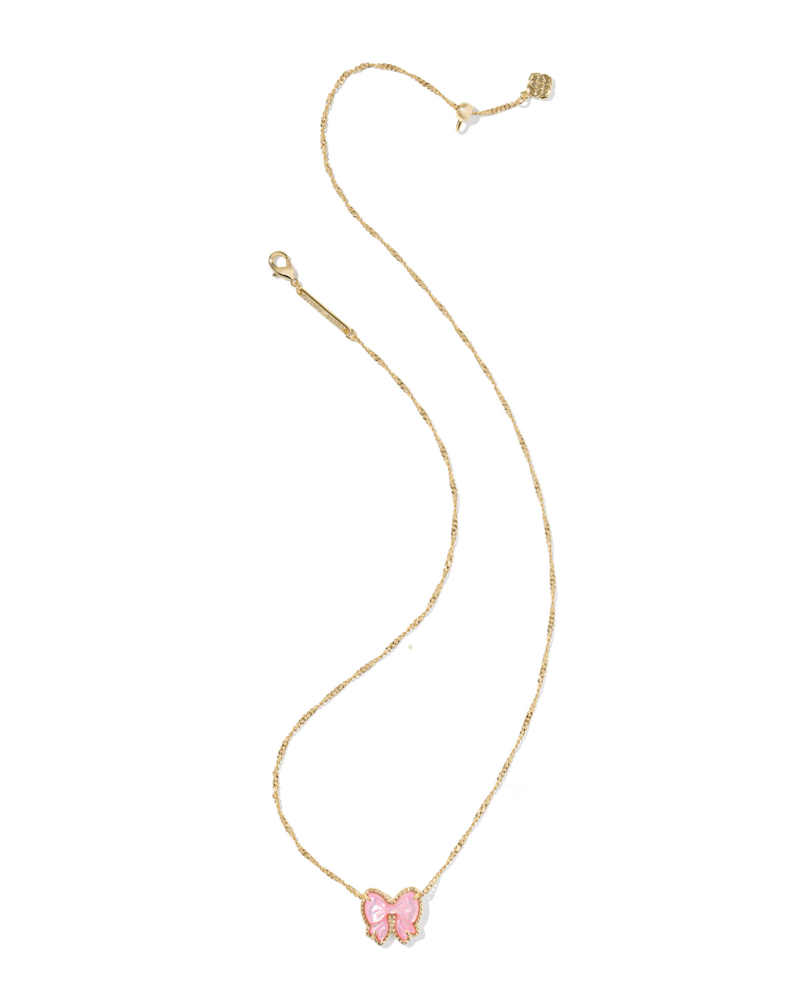 Wrap up your look with the Haley Gold Bow Short Pendant Necklace. Complete with our signature hoofprint detailing, custom-carved mother-of-pearl, and a reversible pendant for double the styling options, this necklace is a must have for any collection.