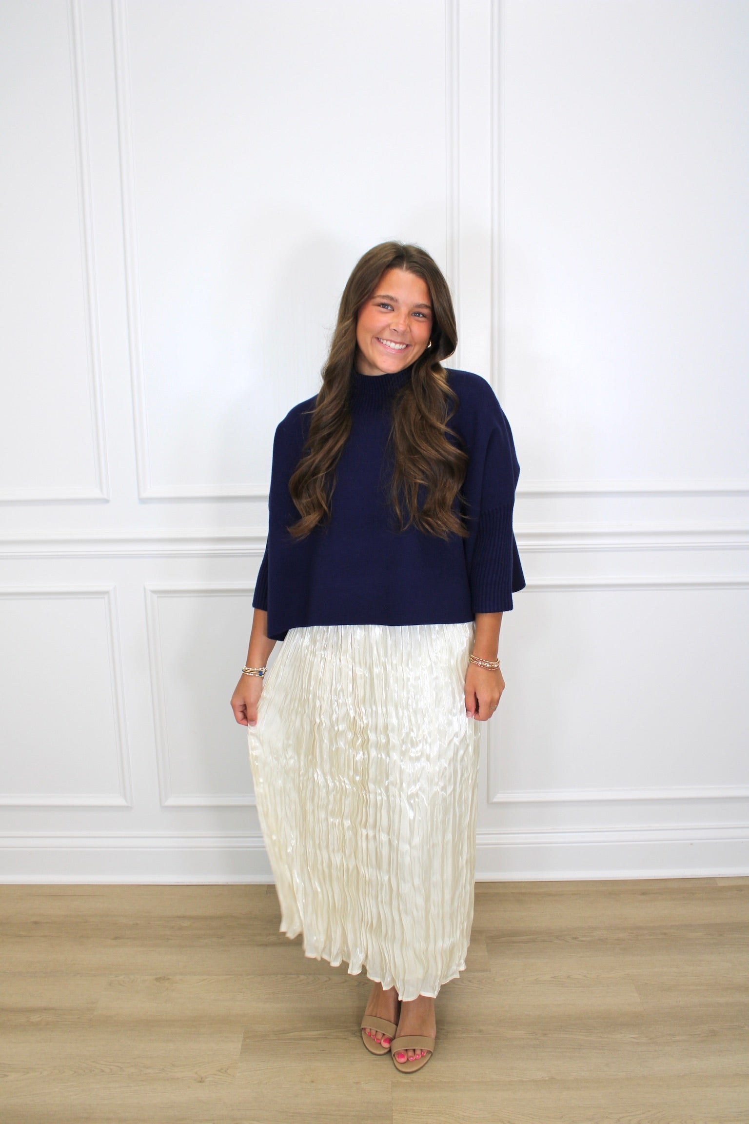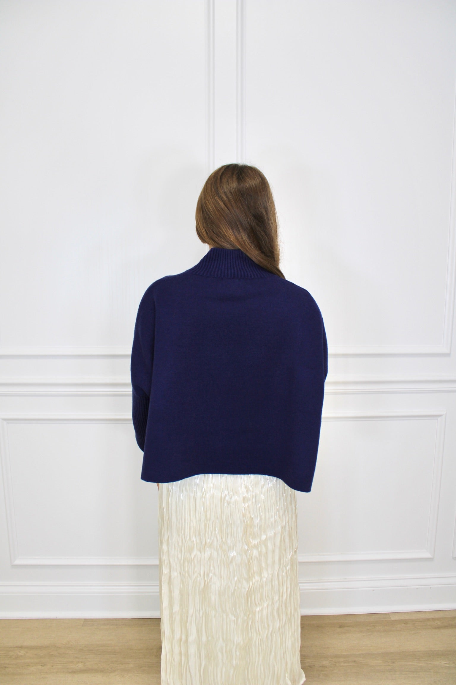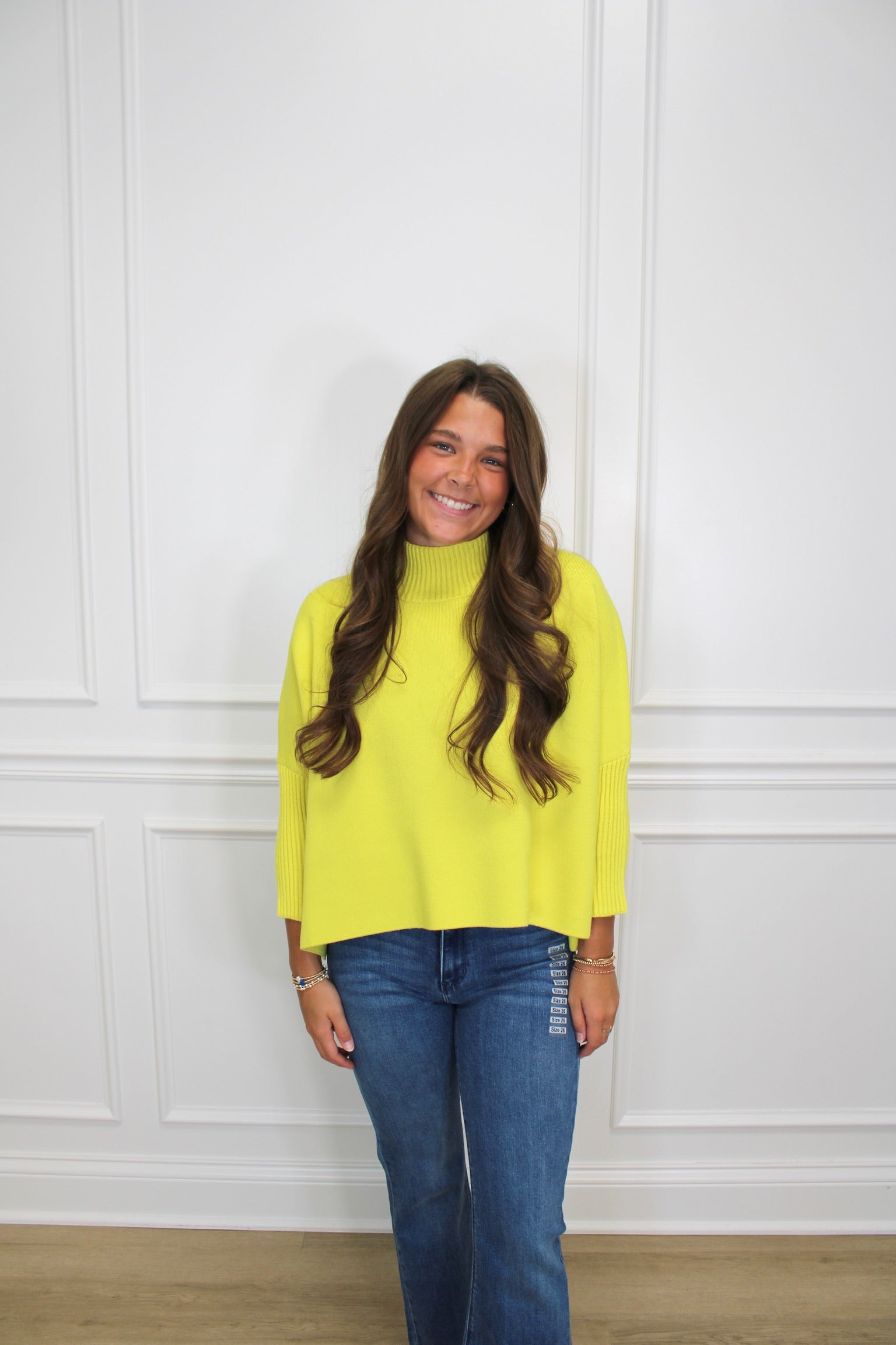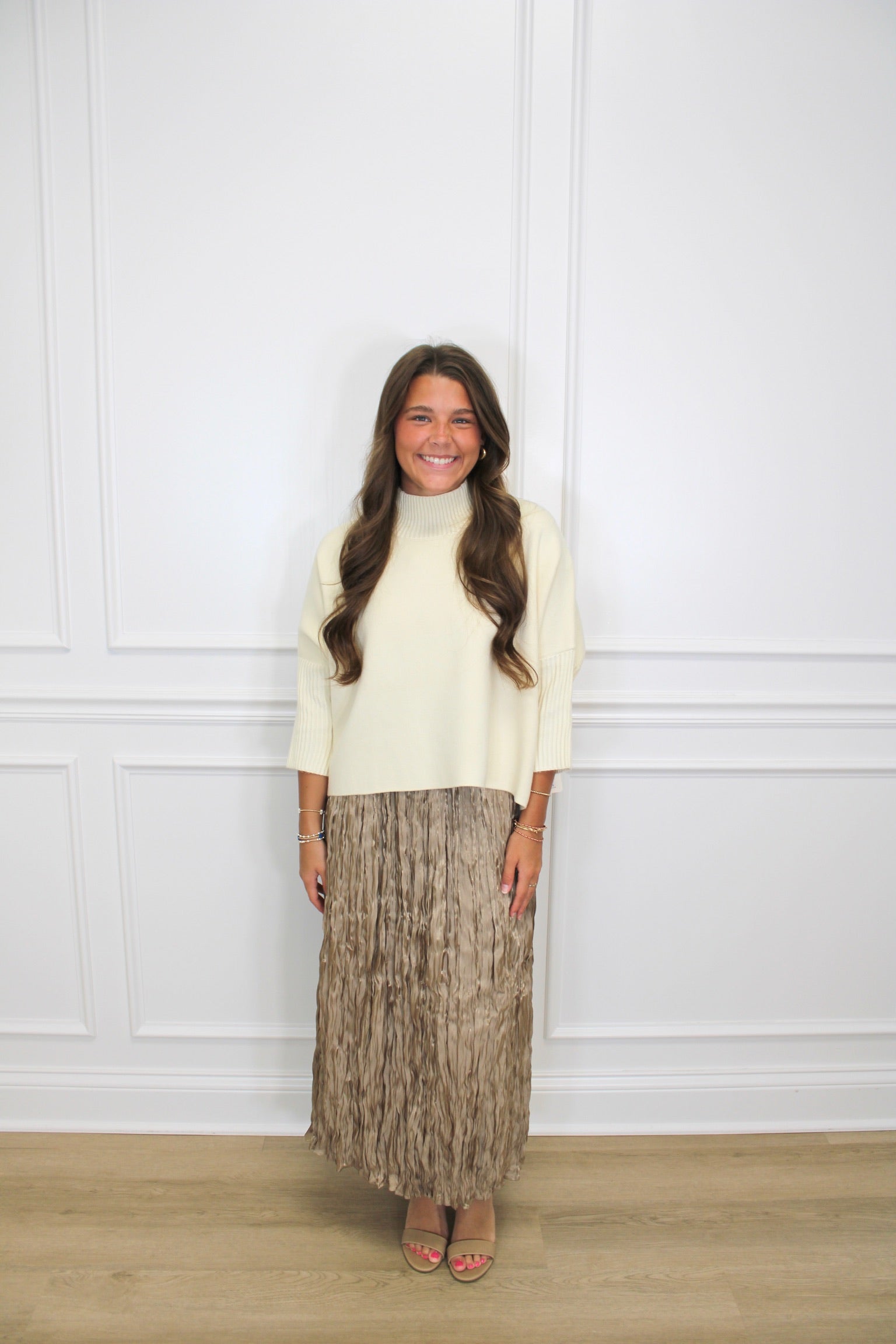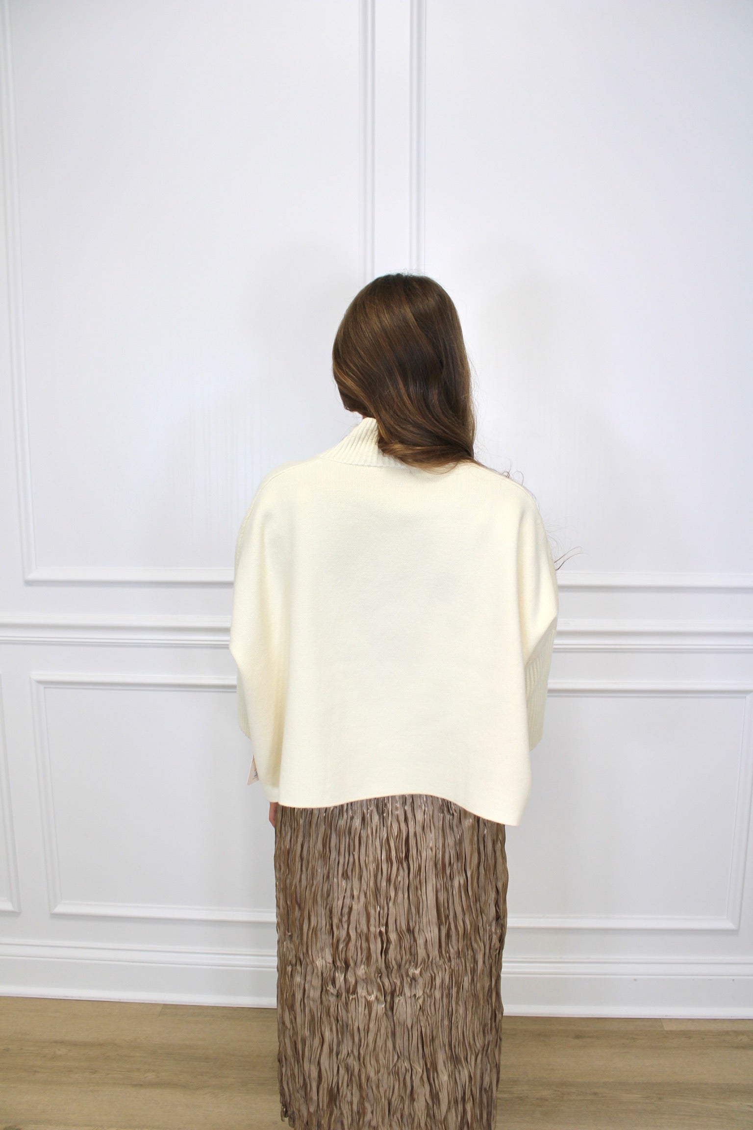 Oversized boxy sweater with fitted mock neck & 3/4 sleeves