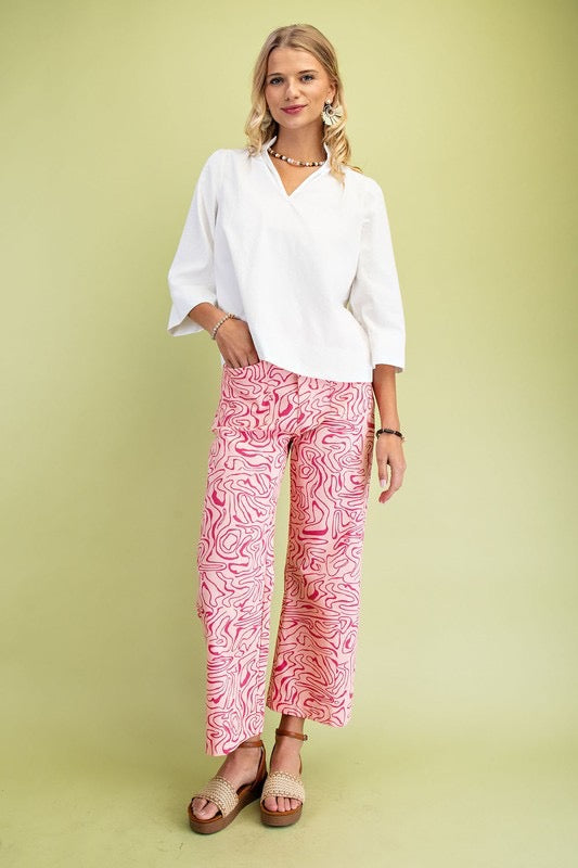 This ruffle neck blouse features charming 3/4 length wide sleeves that add a breezy, playful touch to your outfit. Its delicate ruffled neckline brings a flirty flair, perfect for brightening up any day with effortless style and comfort.