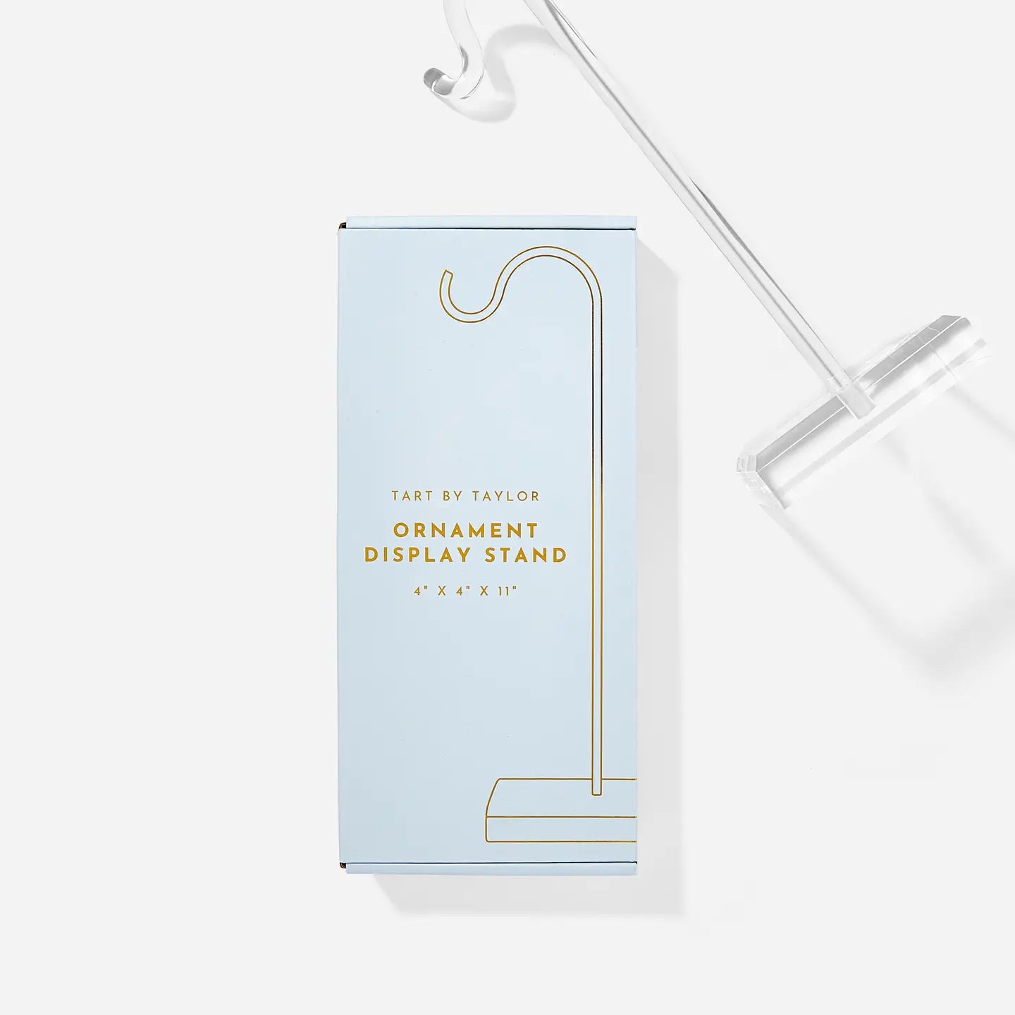Display your favorite Tart by Taylor ornaments in style with our sleek Acrylic Ornament Stand. Crafted from clear, high-quality acrylic, this modern stand lets your ornament steal the spotlight while adding a touch of sparkle to any space. Perfect for showing off your holiday favorites, photo frame ornaments, or even keepsakes year-round. - Base: 4" x 4" x 1" | Arm: 9" Tall  - Made of premium clear acrylic - Ideal for tabletop or shelf display - Wipe clean with damp cloth Pair it with one of our magnetic photo frame ornaments for the perfect gifting moment or holiday centerpiece.