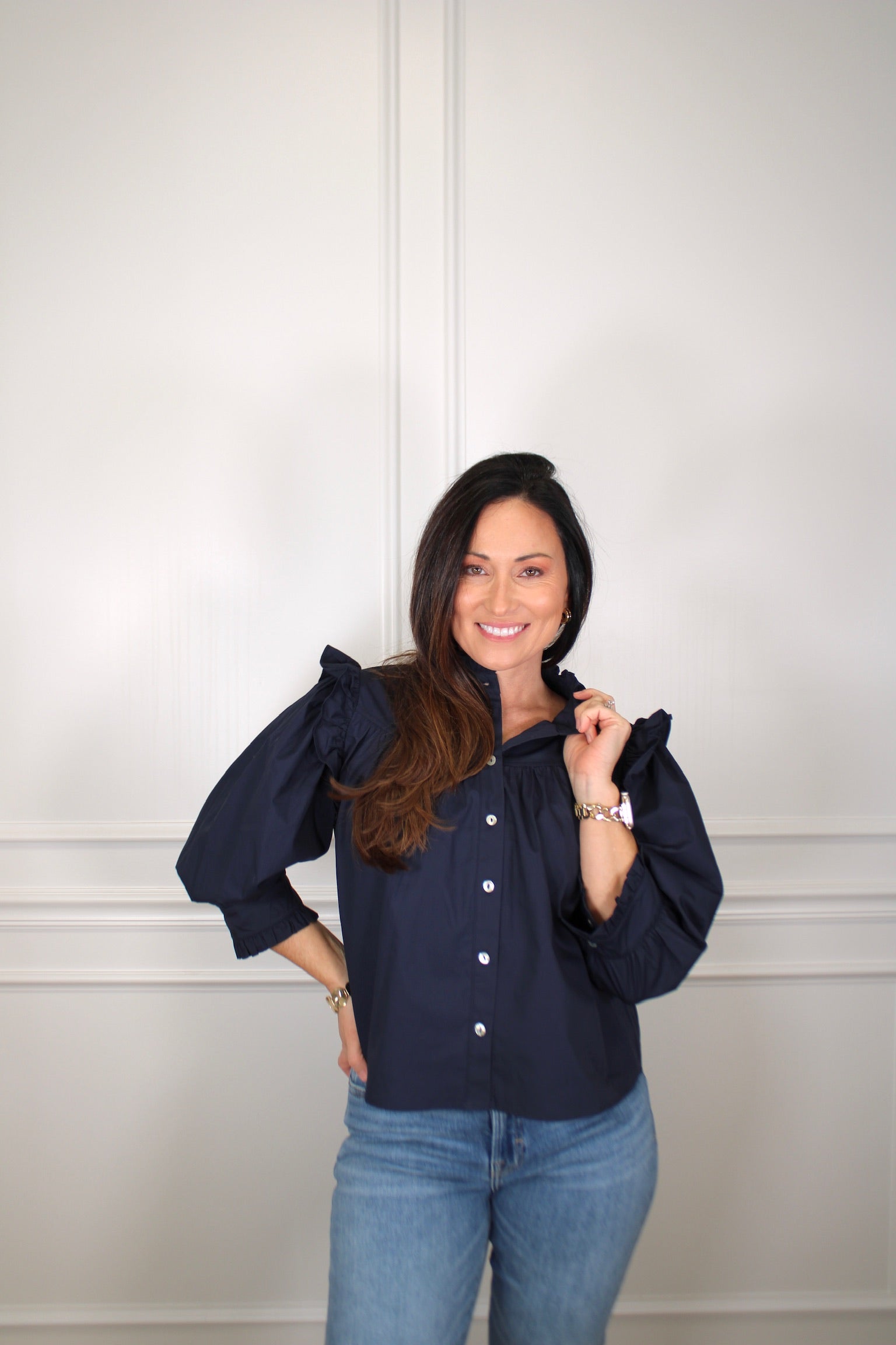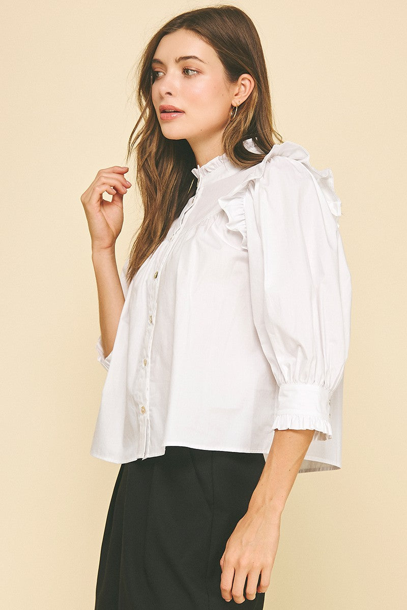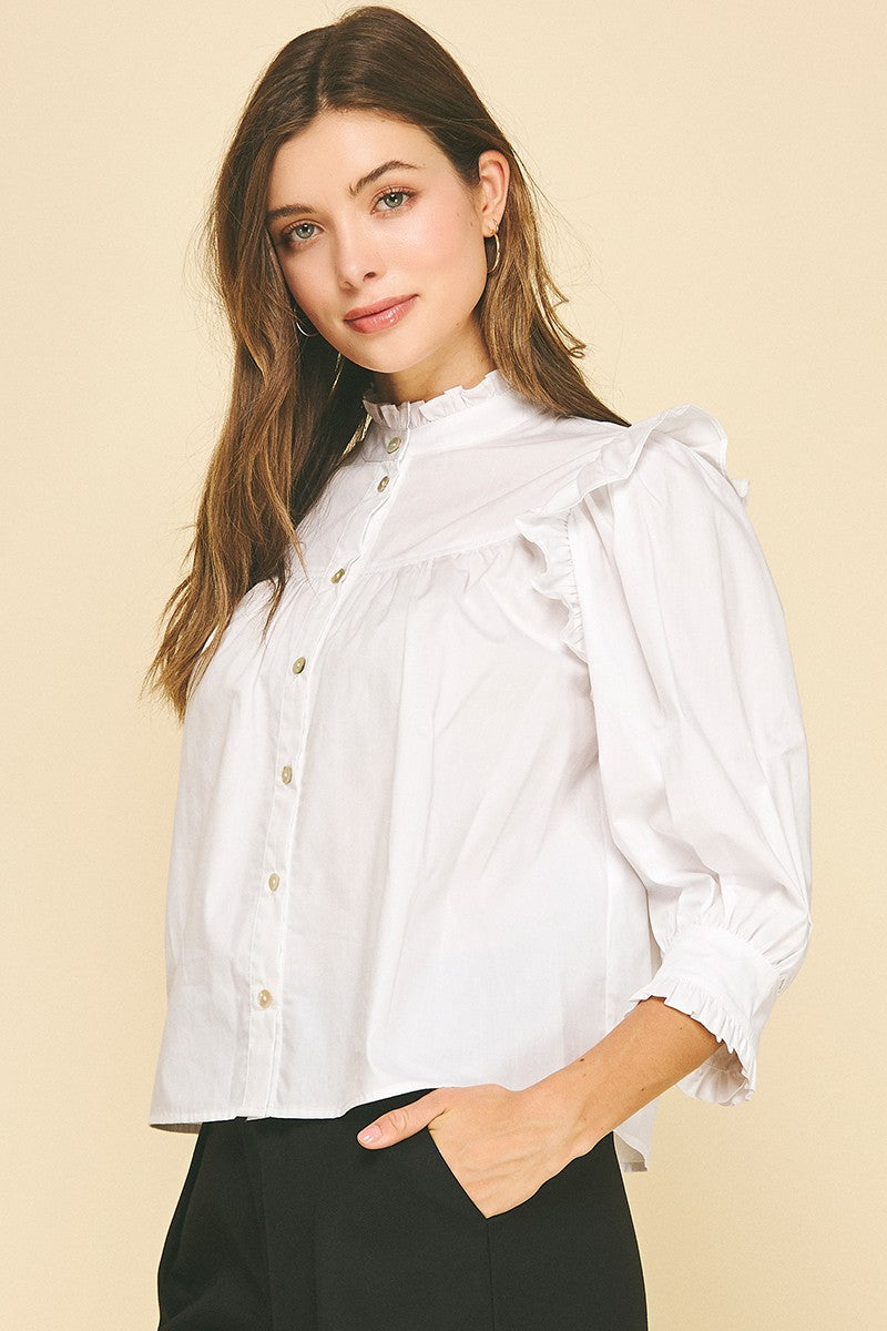 Add some fun and flair to your wardrobe with our Ruffled Button Down Blouse Top! This playful piece features ruffled detailing and a classic button down design. Perfect for adding a touch of quirkiness to any outfit.