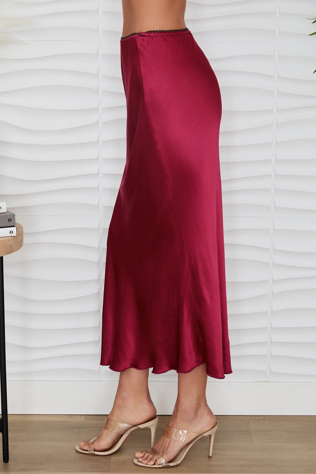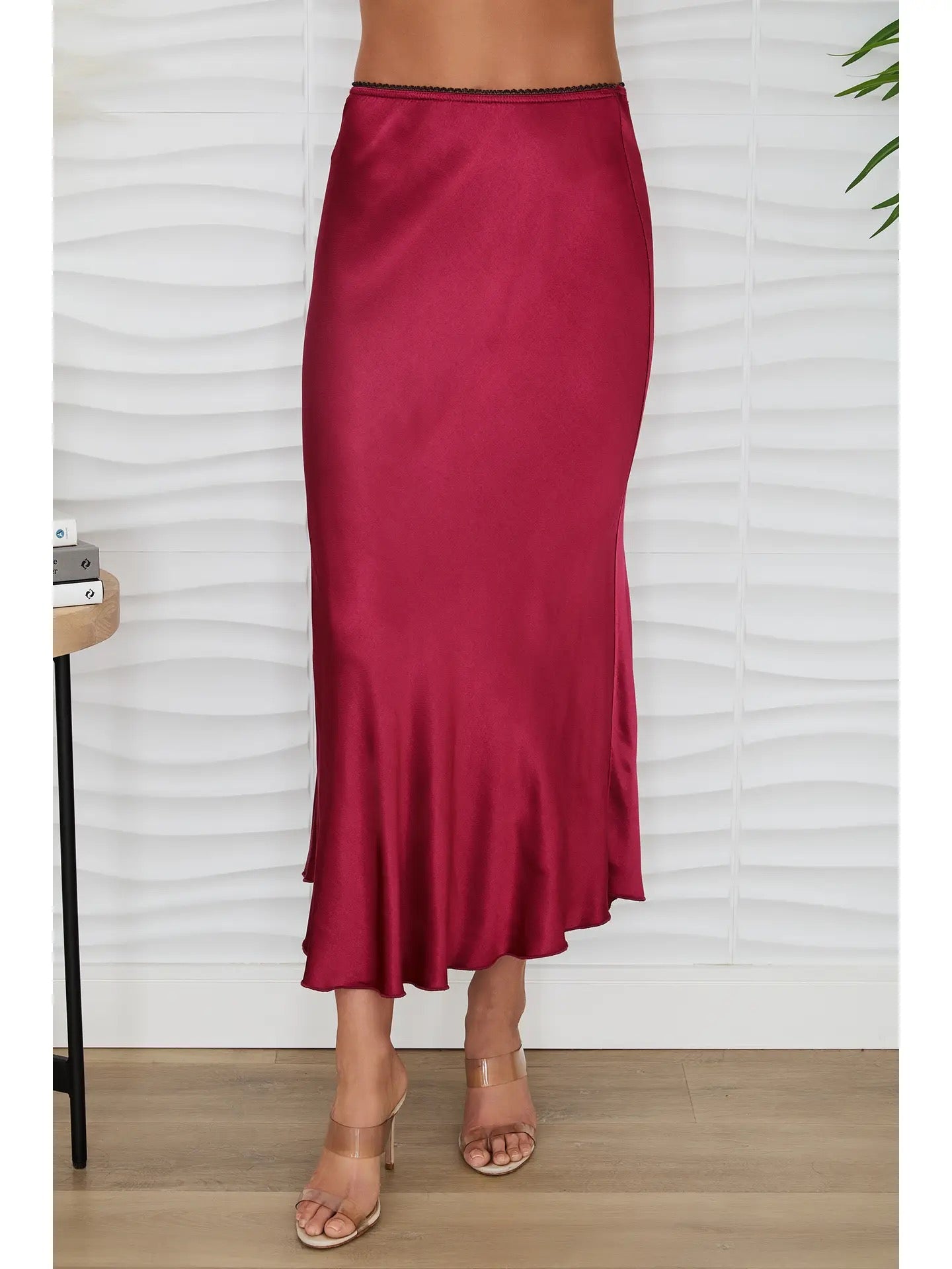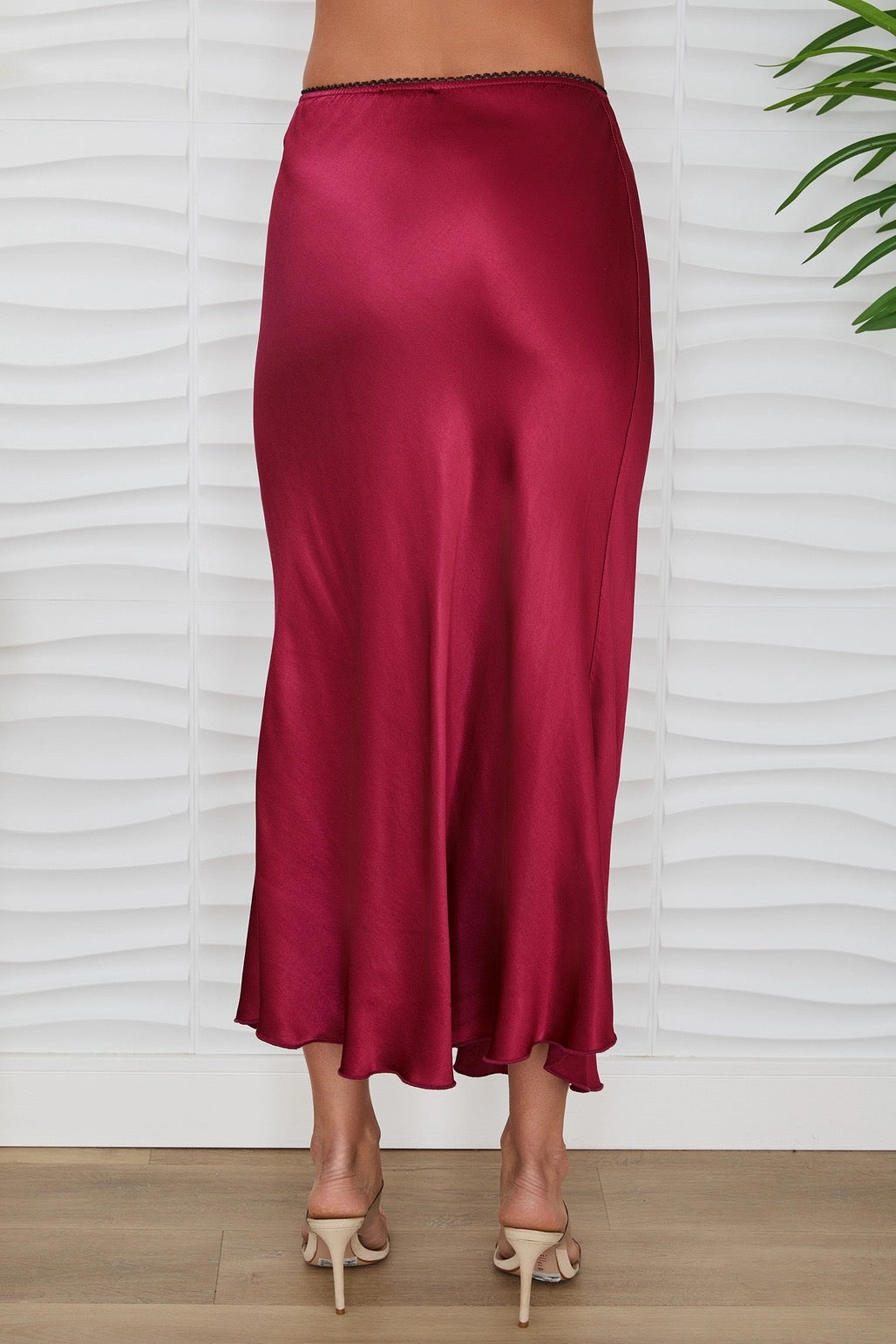 Glide through your day in luxurious comfort with our Silk Serenade Skirt. This elegant slip skirt features a sumptuous silk fabric that feels like a gentle caress against your skin, paired with a delicate lace elastic waistband that keeps everything in place without the squeeze. Perfect for layering under sheer dresses, wearing solo with a fitted top, or slipping on under your favorite slip dress. The silky smooth drape creates an effortlessly chic silhouette while the lace detail adds a touch of feminine allure. Your new wardrobe essential awaits.