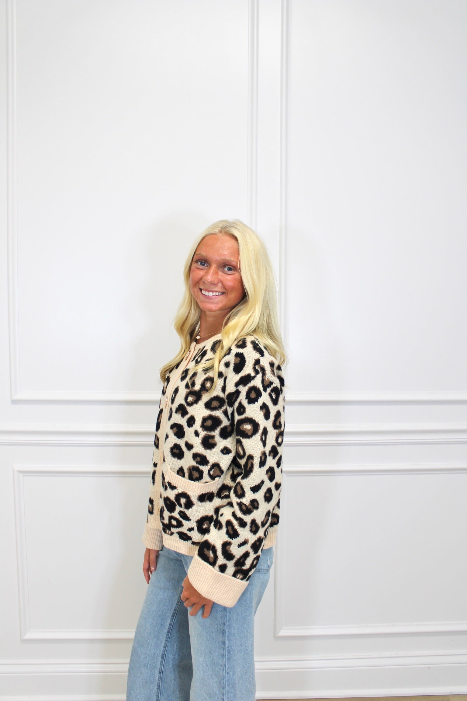 Add a wild twist to your wardrobe with this playful leopard print cardigan. Cozy and stylish, it’s perfect for layering and turning heads wherever you go. Embrace your fierce side with a touch of fun that keeps you comfy all day long.