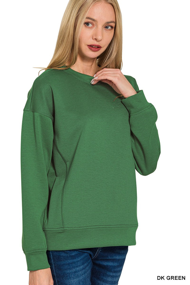 Wrap yourself in cloud-like comfort with our Soft Scuba Round-Neck Sweatshirt! Crafted from premium scuba fabric, this cozy layer features a luxurious stretch that moves with you all day long. The classic round neckline pairs perfectly with everything in your closet, while the soft, breathable material keeps you feeling amazing whether you're lounging at home or out on the town. Say goodbye to stiff, uncomfortable sweatshirts—this is the hug you've been waiting for!