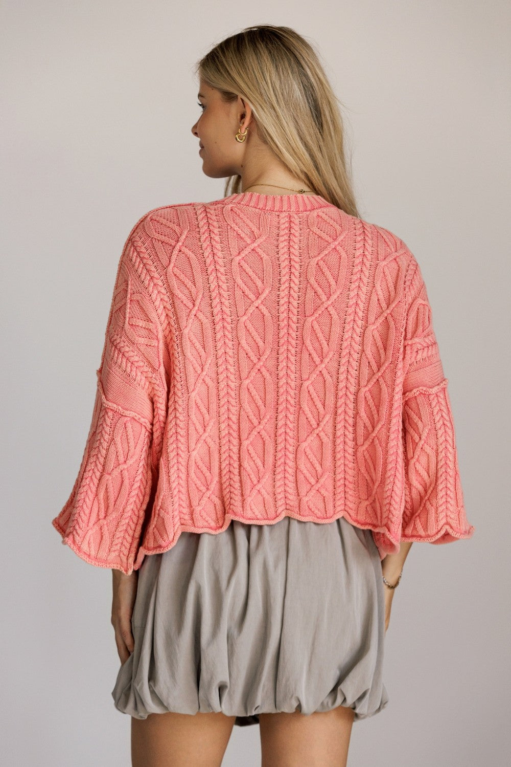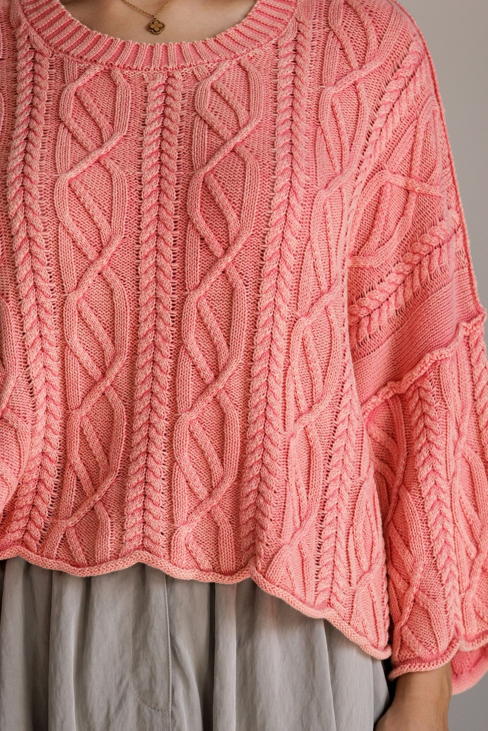 Wrap yourself in cozy vibes with this charming cable knit pullover! Featuring a relaxed, boxy fit with a slightly cropped cut, it's the perfect balance of comfort and style. The classic crew neckline is finished with ribbed detailing, while intricate cable knit patterns add texture and visual interest throughout. Drop shoulders and wide long sleeves with a subtle bell shape create an effortlessly chic silhouette that's ready for everything from lazy weekends to casual hangouts. Layer it, style it, love it—this pullover is your new go-to piece for laid-back elegance.