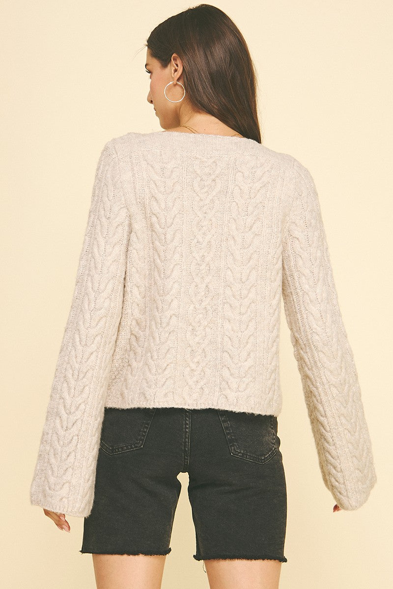 Cozy up in style with this charming cable knit crop sweater! Perfect for layering or showing off your favorite high-waisted bottoms, this piece brings effortless texture and warmth to any outfit. The classic cable knit pattern adds timeless appeal, while the cropped silhouette keeps things modern and fun. Whether you're heading to brunch or a casual night out, this sweater delivers comfort without compromising on fashion-forward flair.
