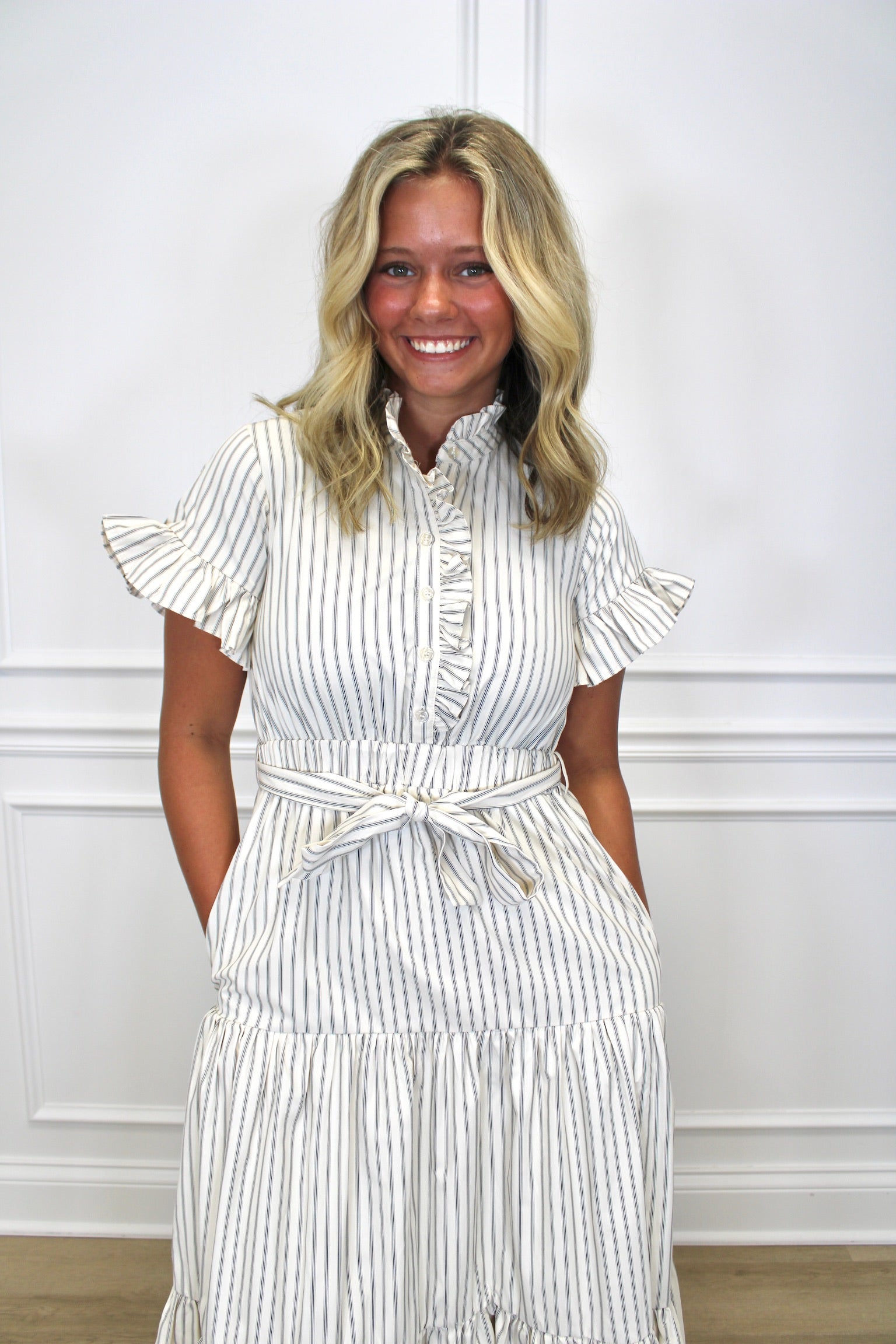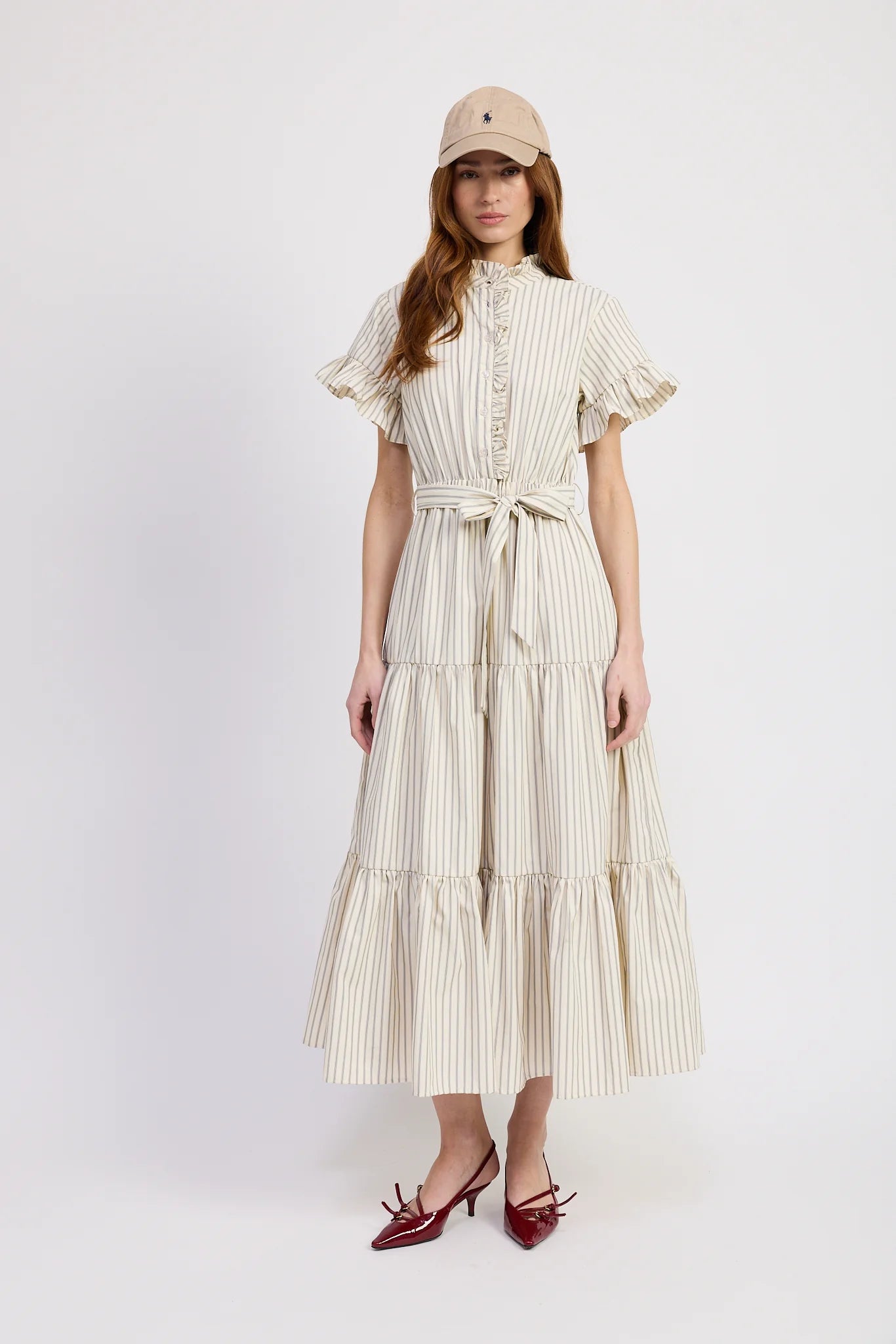 This playful Azra Striped Maxi dress features a ruffle placket and a belted, tiered skirt that adds fun movement to your look. Crafted from a comfortable blend of 55% polyester and 45% cotton with a 100% cotton lining, it’s perfect for breezy days and stylish outings. Imported for quality and charm, this maxi dress brings effortless flair to your wardrobe.
