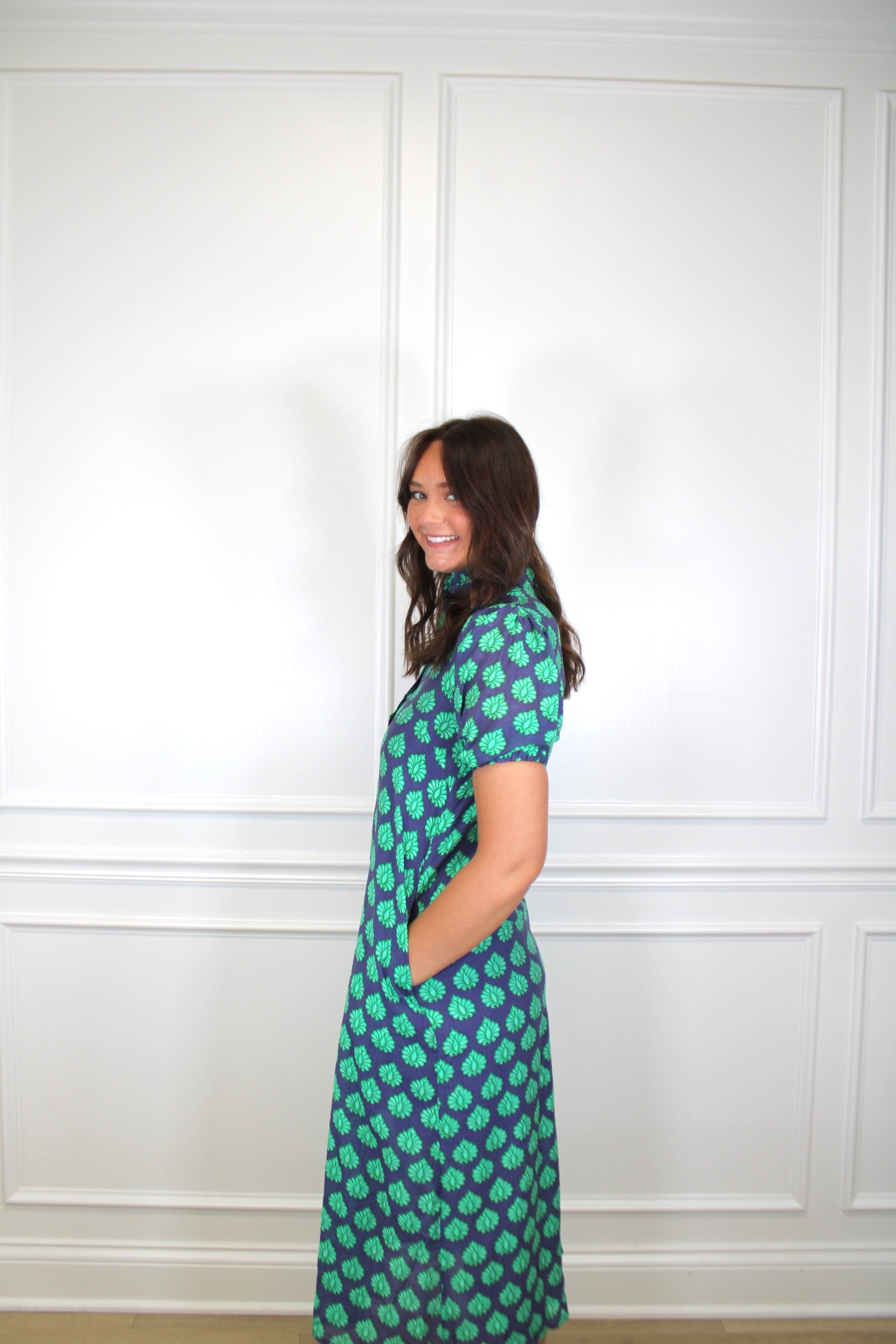Elevate your everyday style with this charming printed button-down midi dress that's as fun as it is functional. The ruffled collar adds a flirty touch, while elastic-banded arms keep things comfortable and chic. Fully lined for a smooth silhouette, this versatile piece transitions effortlessly from brunch to dinner. Perfect for anyone who loves a dress that does the work for you—just slip it on and go!