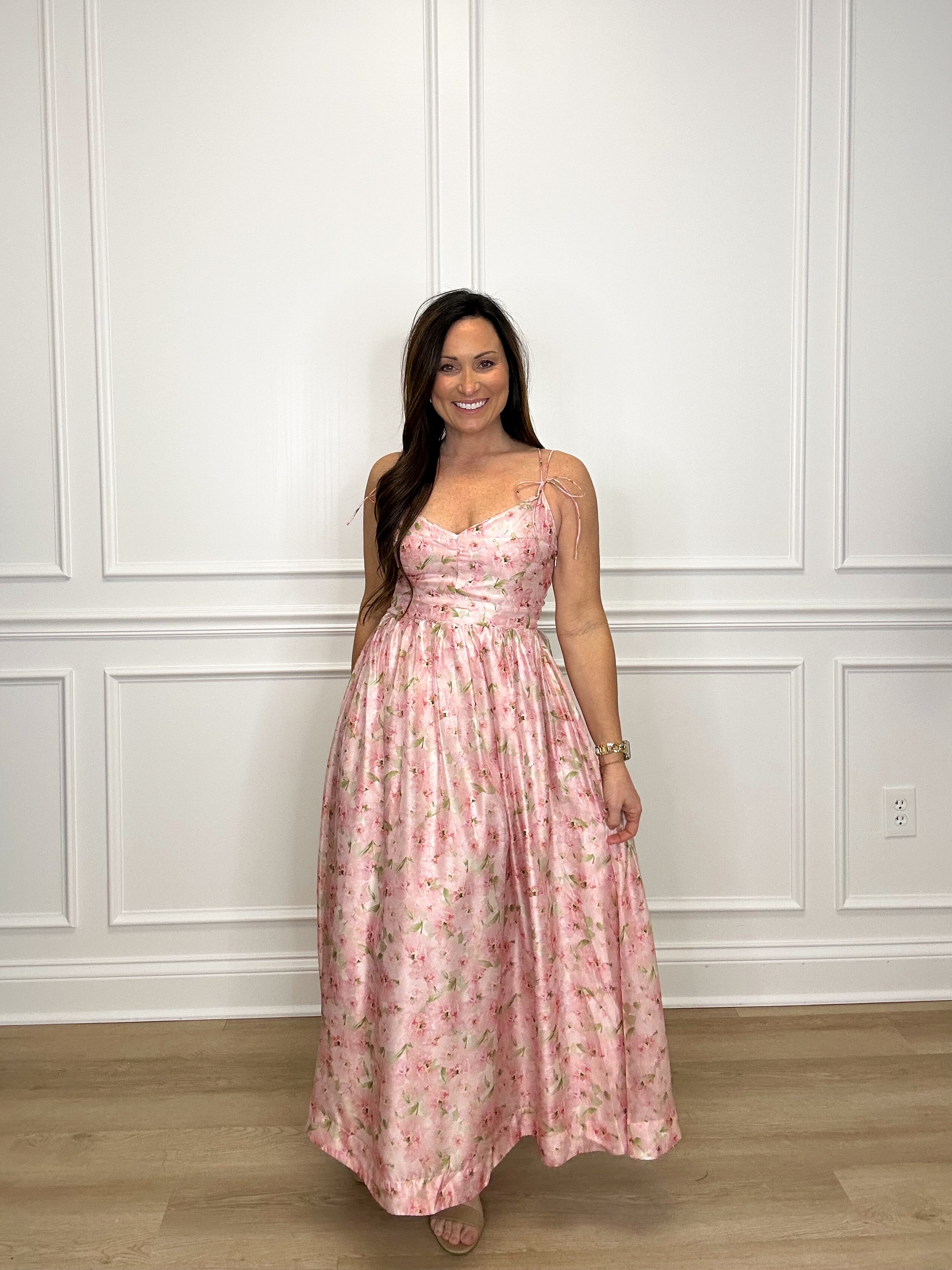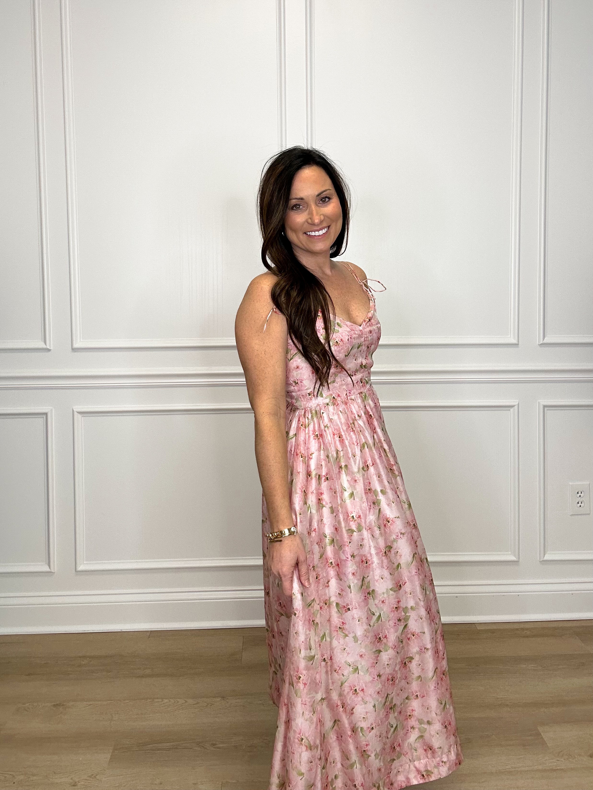 Float through your day in the charmingly playful In Wonder Midi dress. Made with a floral chiffon fabric and adorned in a pretty pink floral print, this cami midi dress will have you feeling like a dream. Perfect for any occasion, this dress effortlessly combines style and comfort.