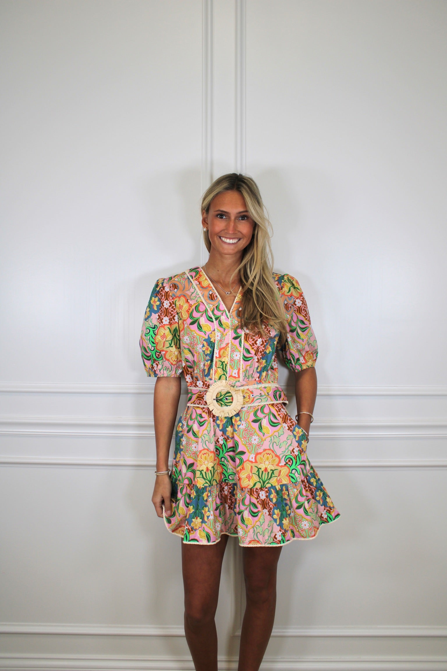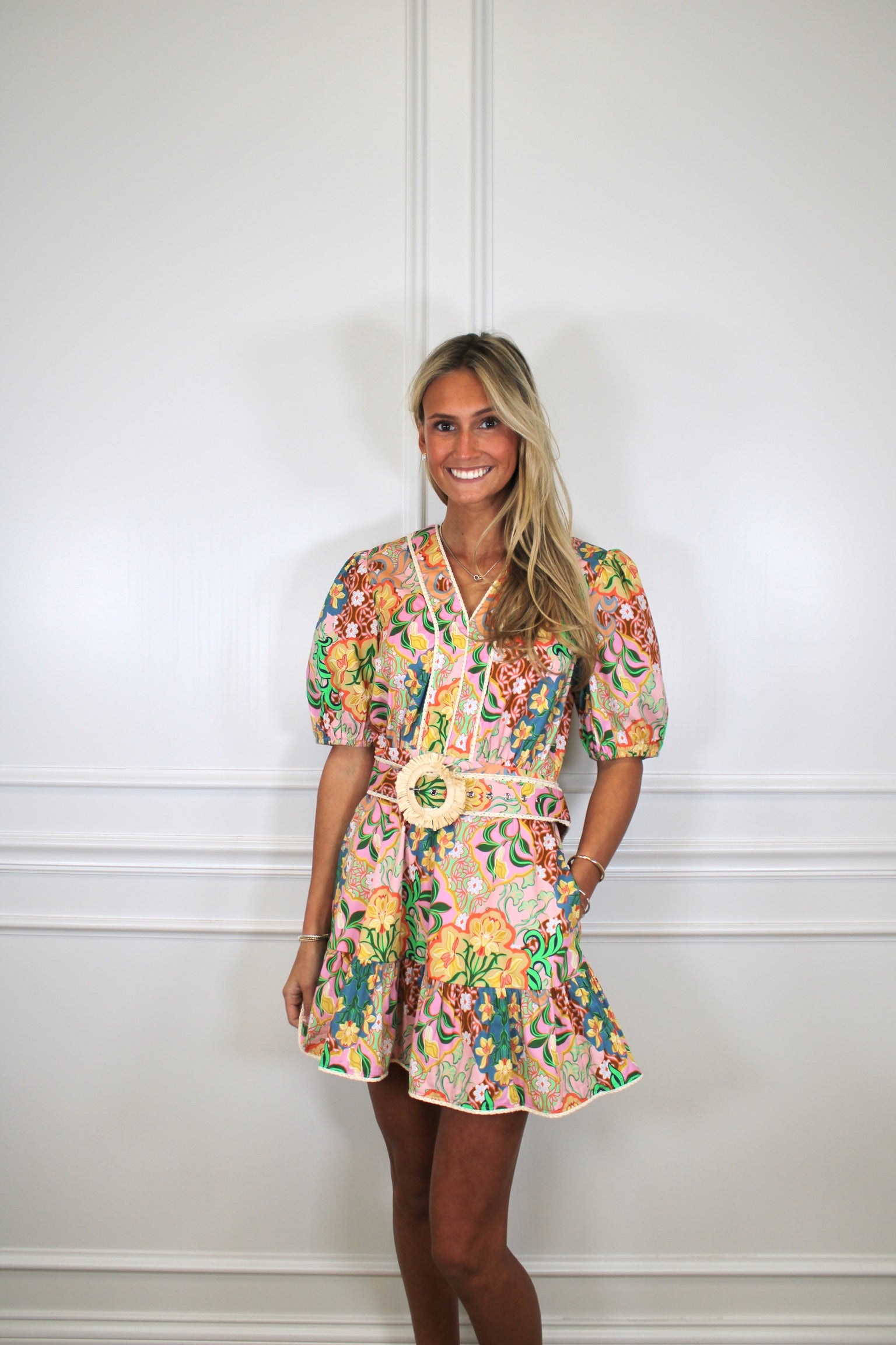 Strut your stuff in this playful mini dress that's ready for anything. The printed PU sleeves add an edgy vibe while the fitted belt cinches your waist for a flattering silhouette. Perfect for nights out, casual hangouts, or whenever you want to turn heads. Mix and match with your favorite accessories to make it uniquely yours—because great style is all about having fun with fashion.