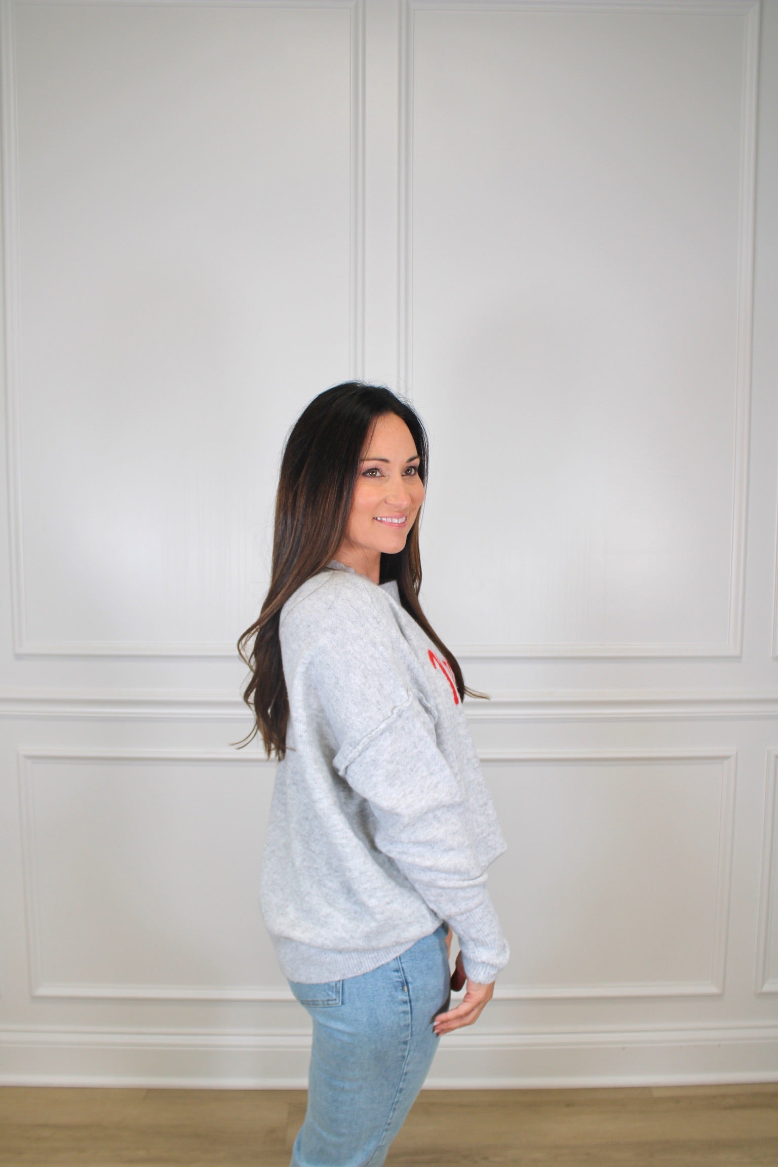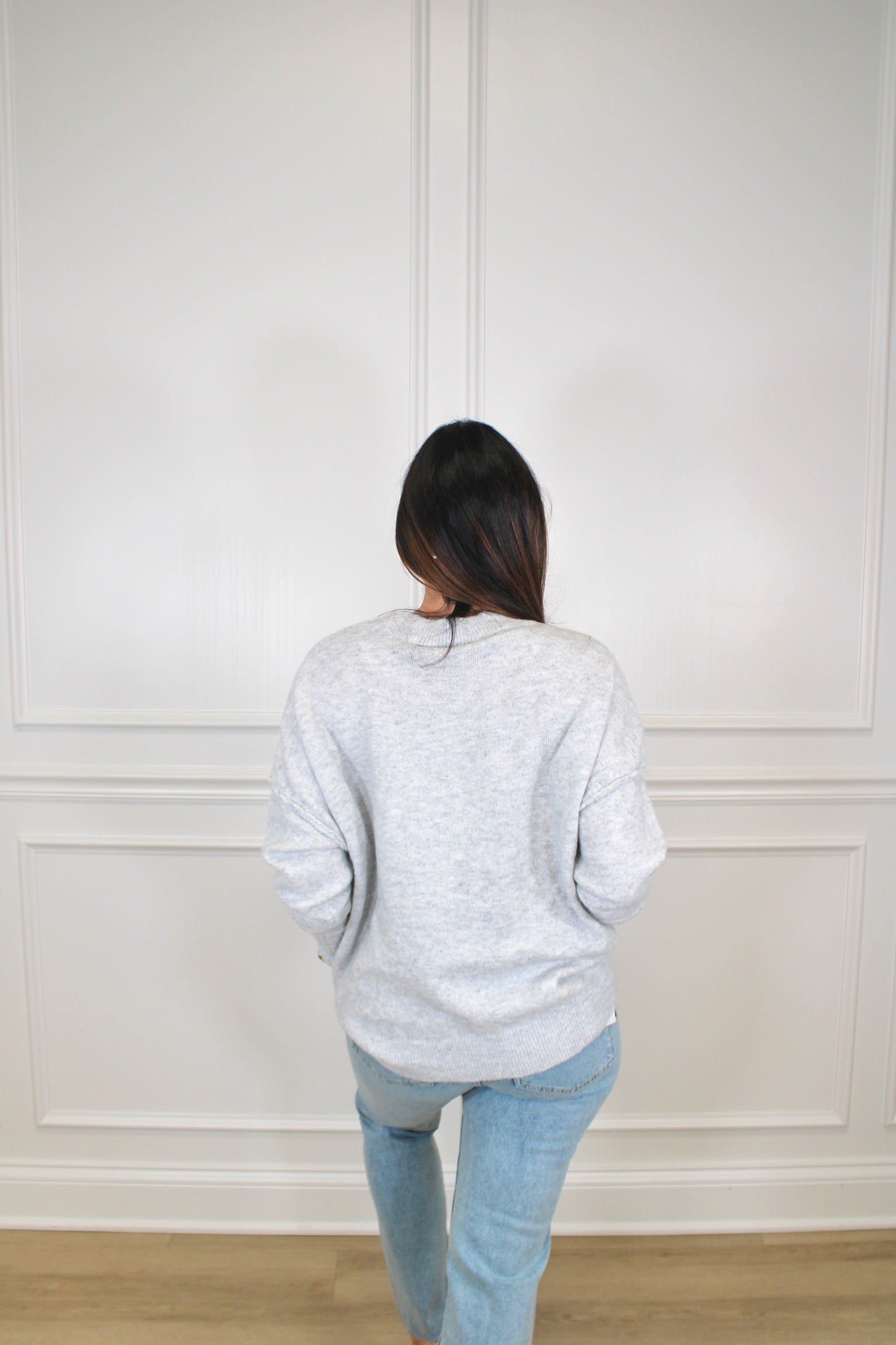 Wrap yourself in cozy charm with this delightful grey crew neck sweater! Perfect for layering or wearing solo, its long sleeves and timeless grey hue make it a versatile wardrobe essential. The mock neck adds a polished touch while keeping things casual and comfortable. Whether you're sipping cocoa by the fire or running errands around town, this sweater delivers warmth and style in one cheerful package. A merry addition to any seasonal collection!