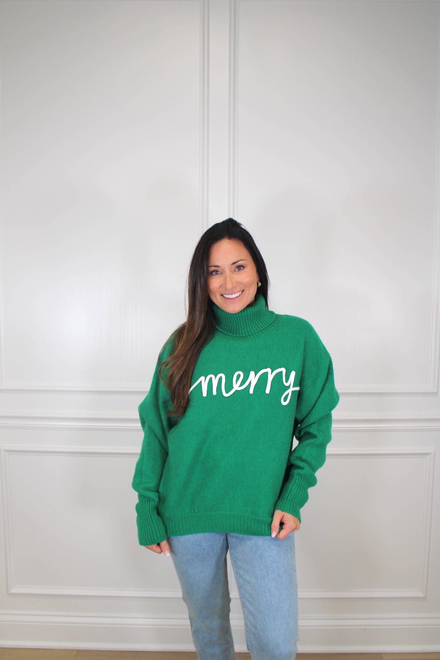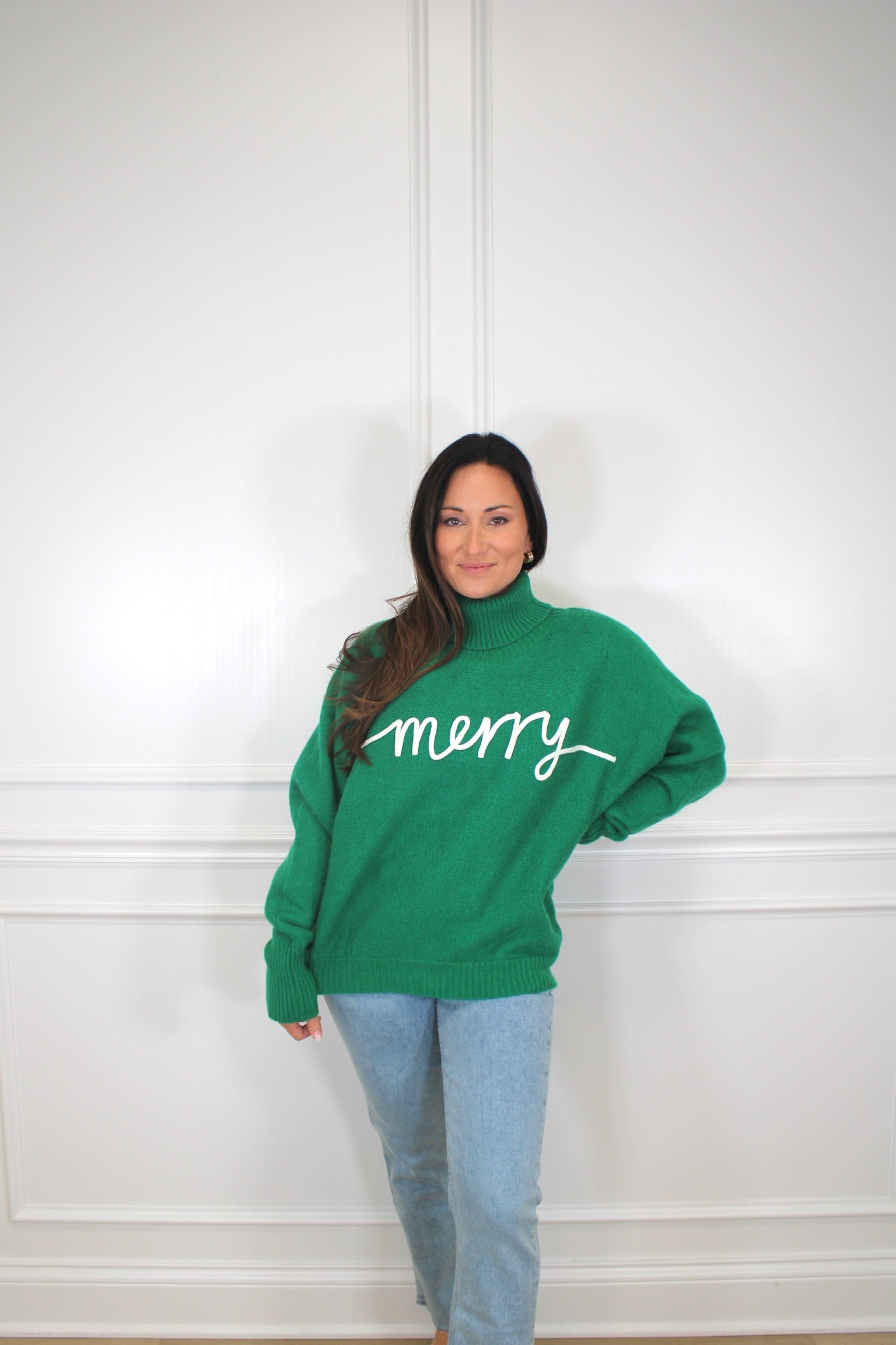Wrap yourself in cozy cheer with this delightful green turtleneck sweater! Perfect for spreading holiday spirit all season long, this playful piece combines comfort with festive flair. The rich green hue pairs beautifully with any winter wardrobe, while the classic turtleneck keeps you warm and snug. Whether you're sipping cocoa by the fire or heading out for seasonal adventures, this merry sweater brings joy to every moment. A wardrobe essential that's as fun as it is functional!