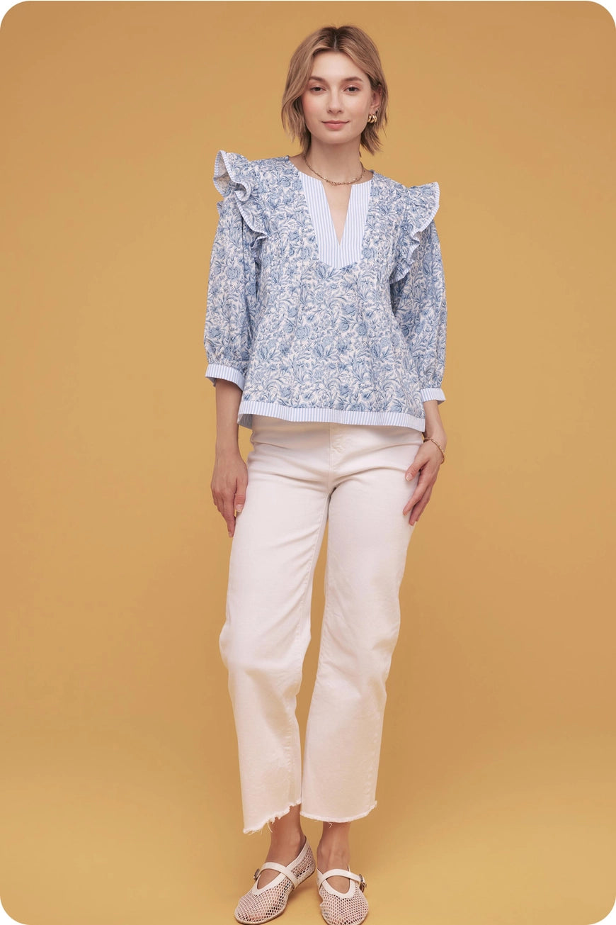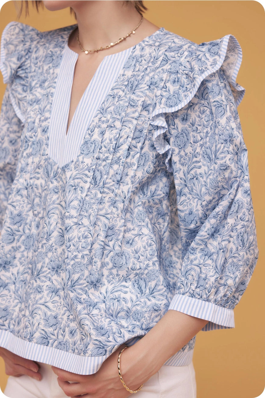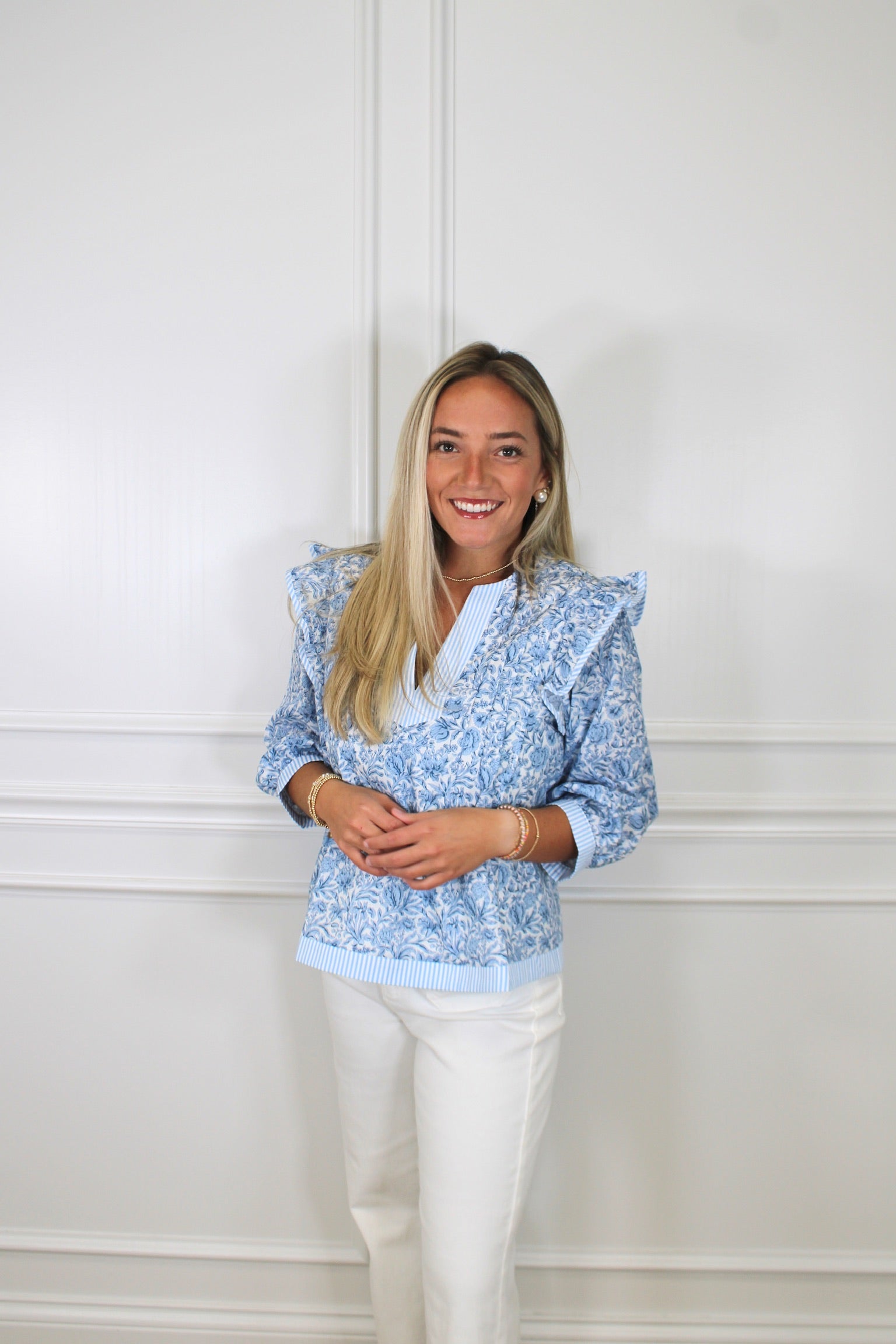 Elevate your wardrobe with this charming Spring Rosette Blouse, featuring delightful puff sleeves that add a touch of whimsy to any outfit. The crisp blue fabric is accented with playful striped detailing that brings movement and visual interest to your look. Perfect for spring days when you want to feel both polished and fun, this blouse pairs effortlessly with jeans, skirts, or tailored trousers. A versatile piece that celebrates feminine style with a modern twist.