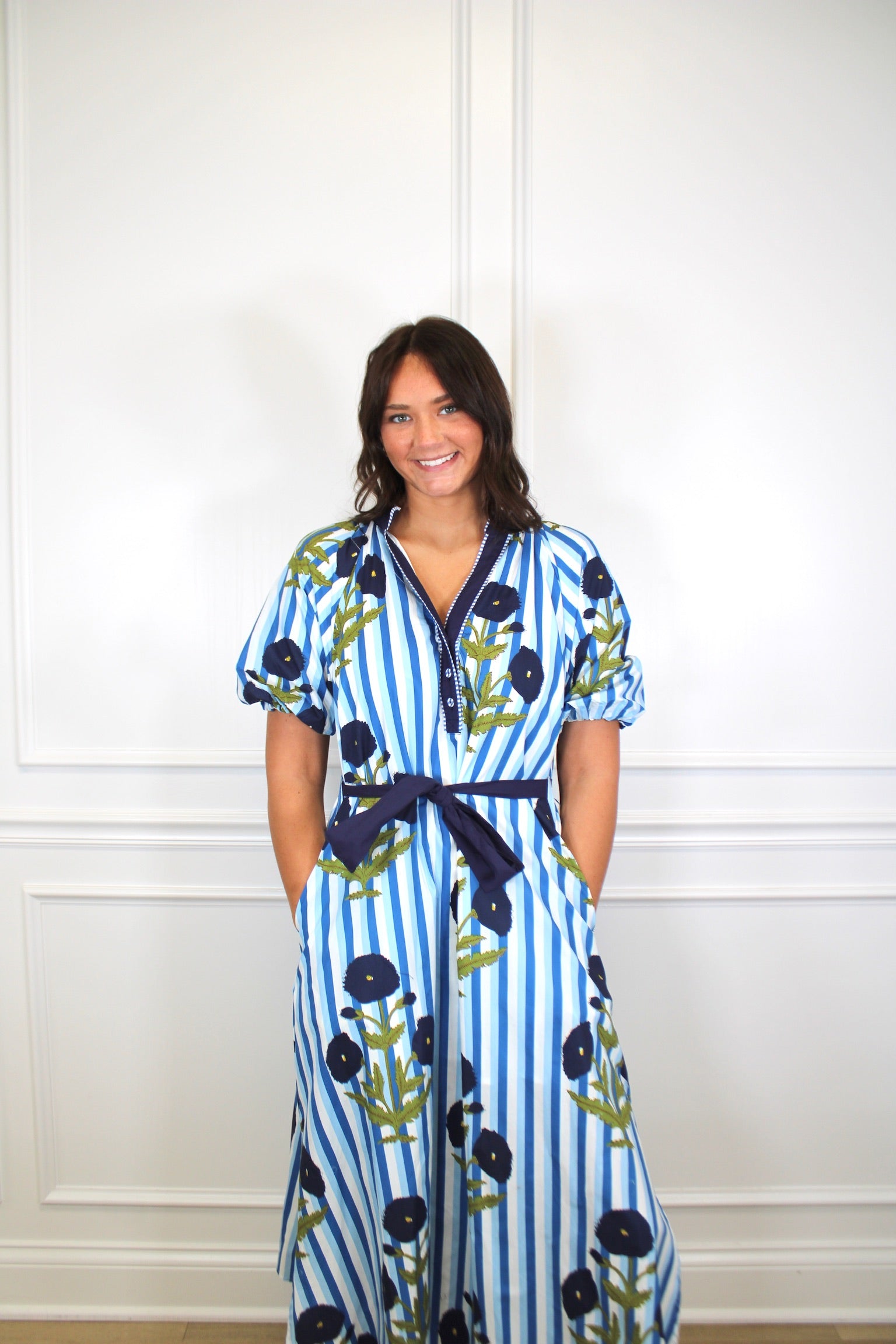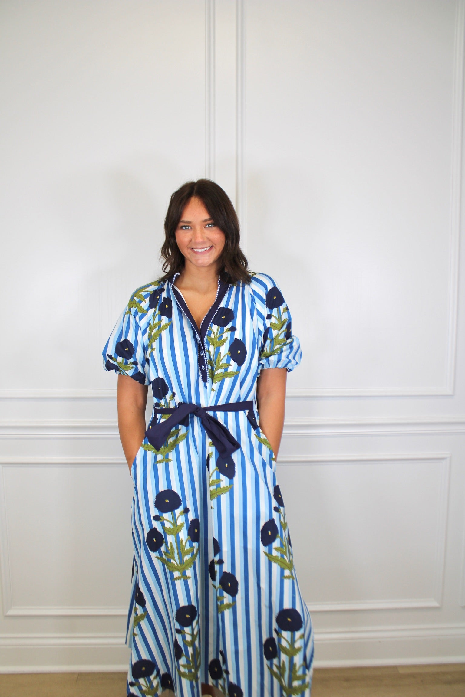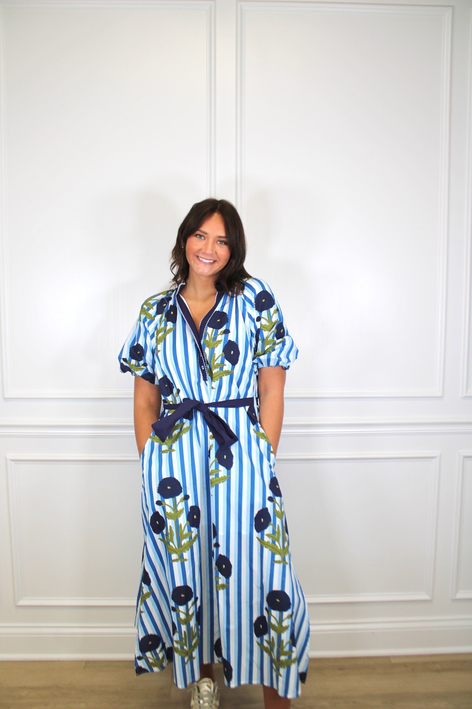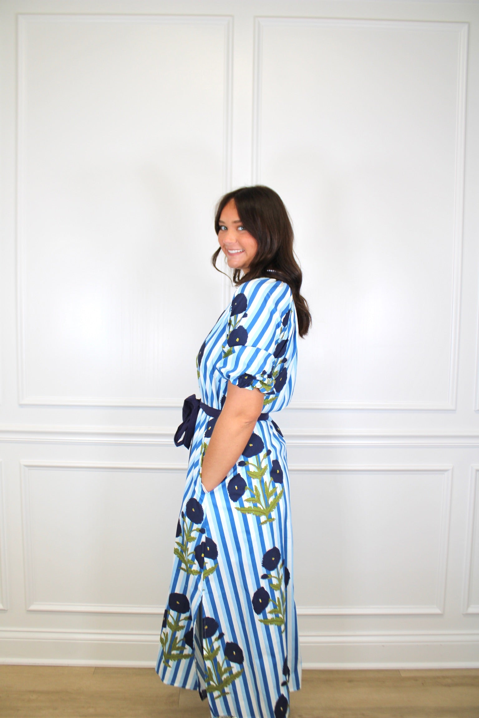 Twirl into any occasion in this charming striped floral maxi dress! The playful mix of stripes and blooms creates an effortlessly chic look, while the adjustable tie waist lets you cinch it just right for the perfect fit. Flowing fabric moves beautifully with every step, making it ideal for everything from garden parties to casual weekend adventures. A versatile wardrobe essential that feels as good as it looks.