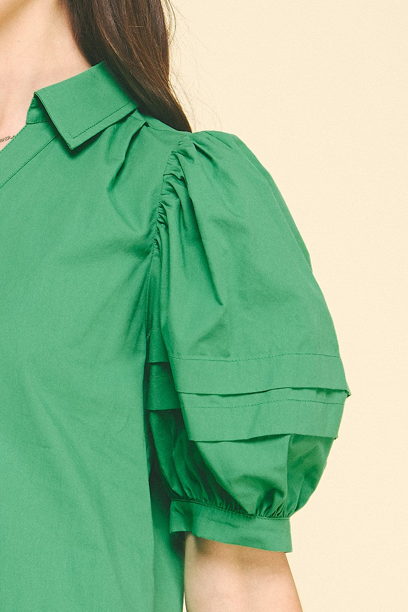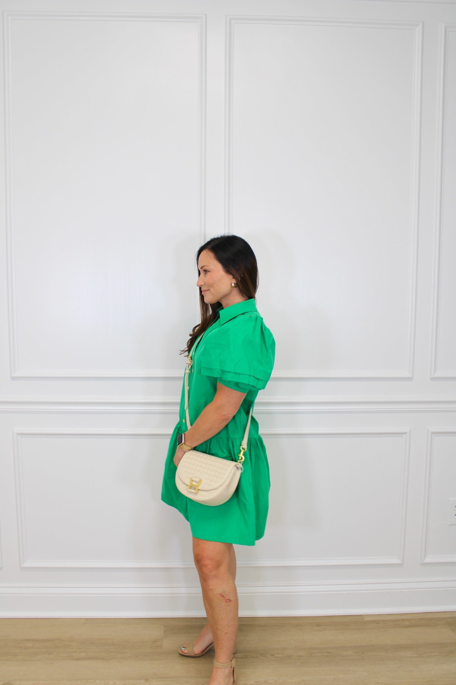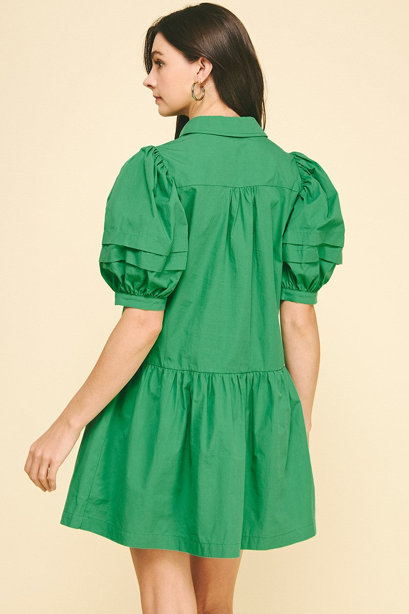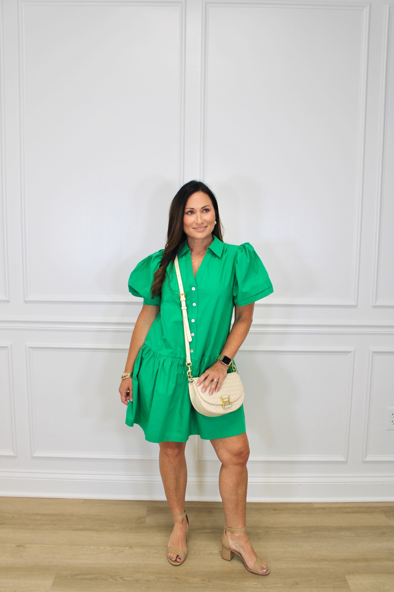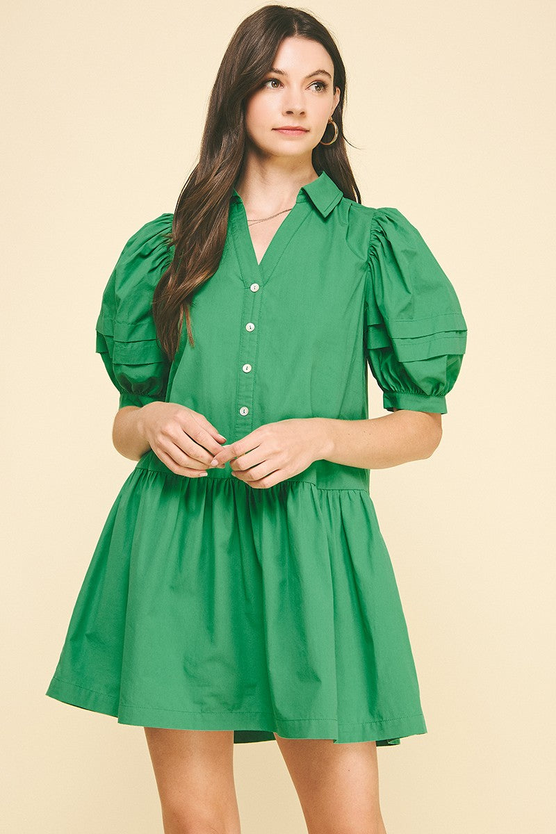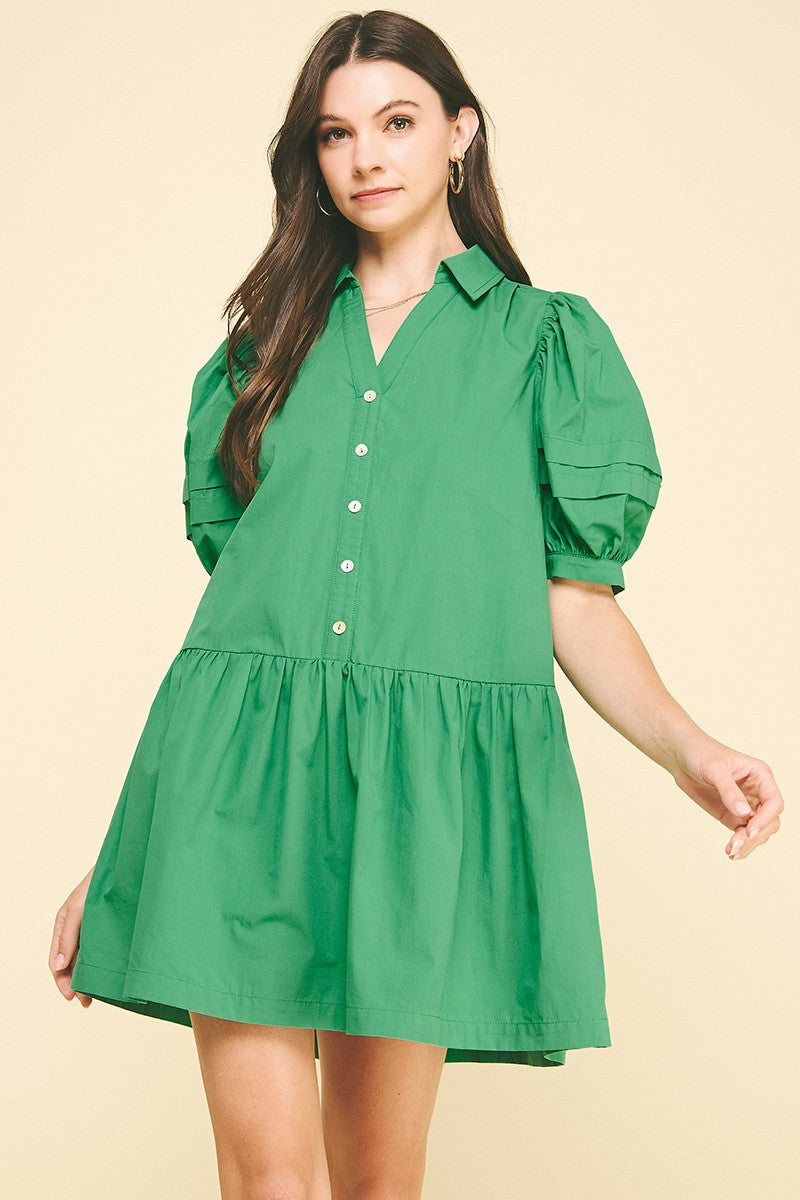 This playful Always Have Mini dress features a classic button-down front and a charming basic collar. The tucked detail at the sleeves adds a flirty touch, while the shirring detail creates a fun, textured look. Perfect for adding a dash of whimsy to your wardrobe!