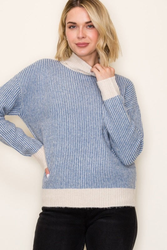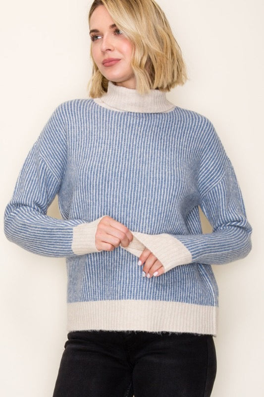 Get cozy and stylish with this stripe long sleeve turtleneck sweater! Its snug fit and classic stripes add a fun twist to your cold-weather wardrobe. Perfect for layering or rocking solo, it keeps you warm while turning heads with a playful pop of pattern. Stay comfy, look cool!