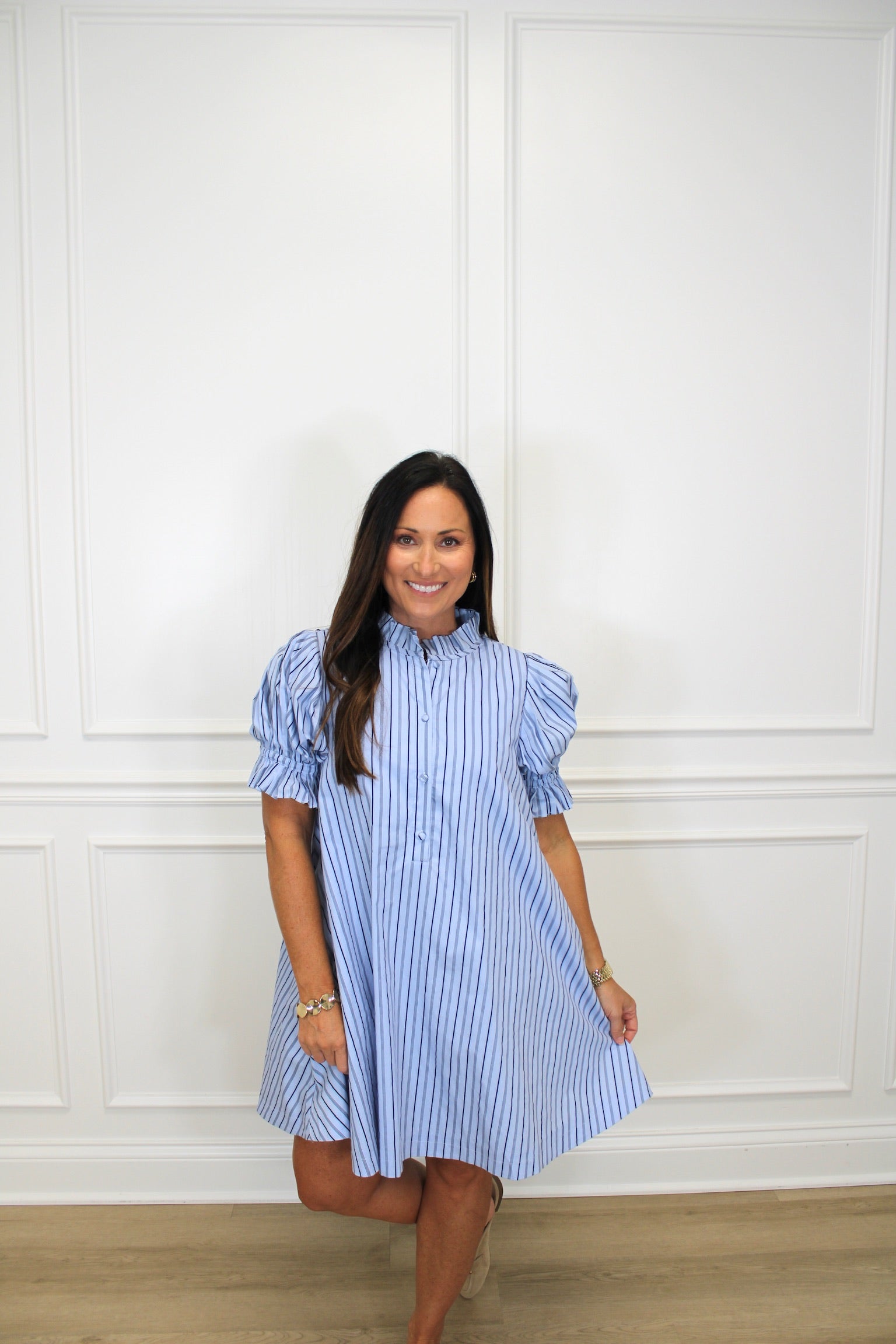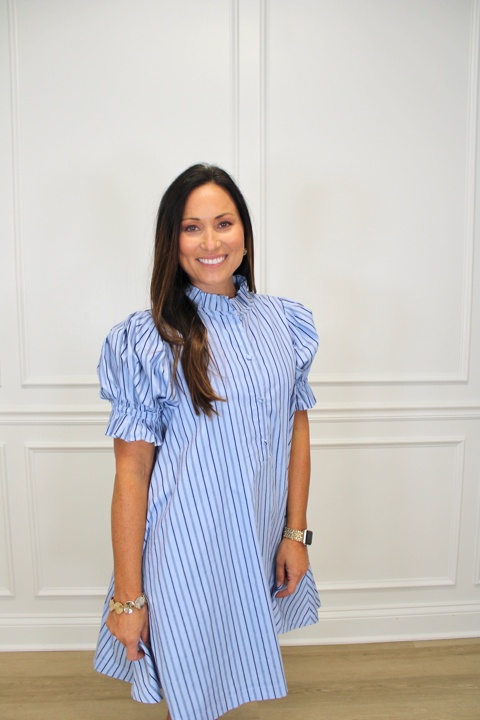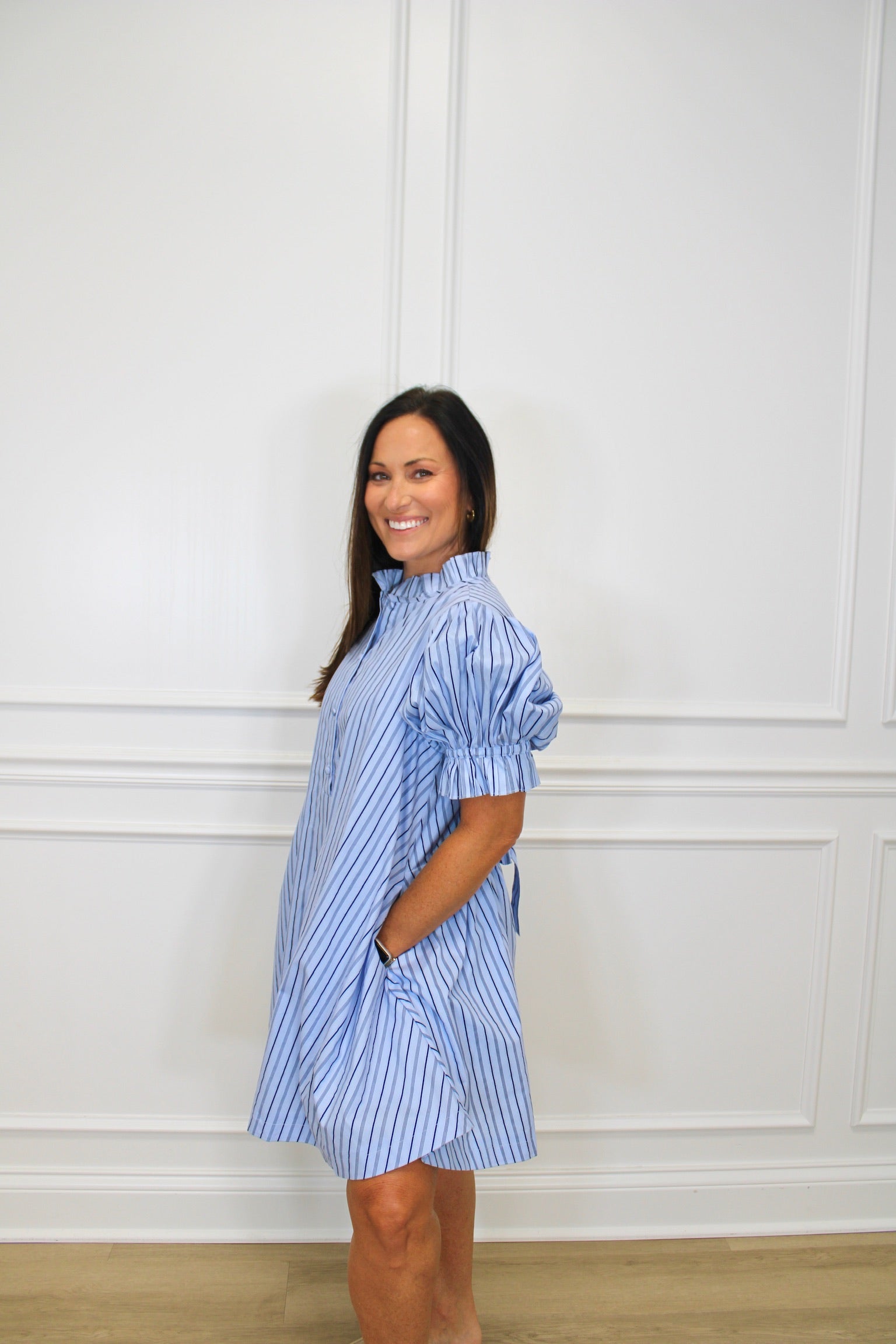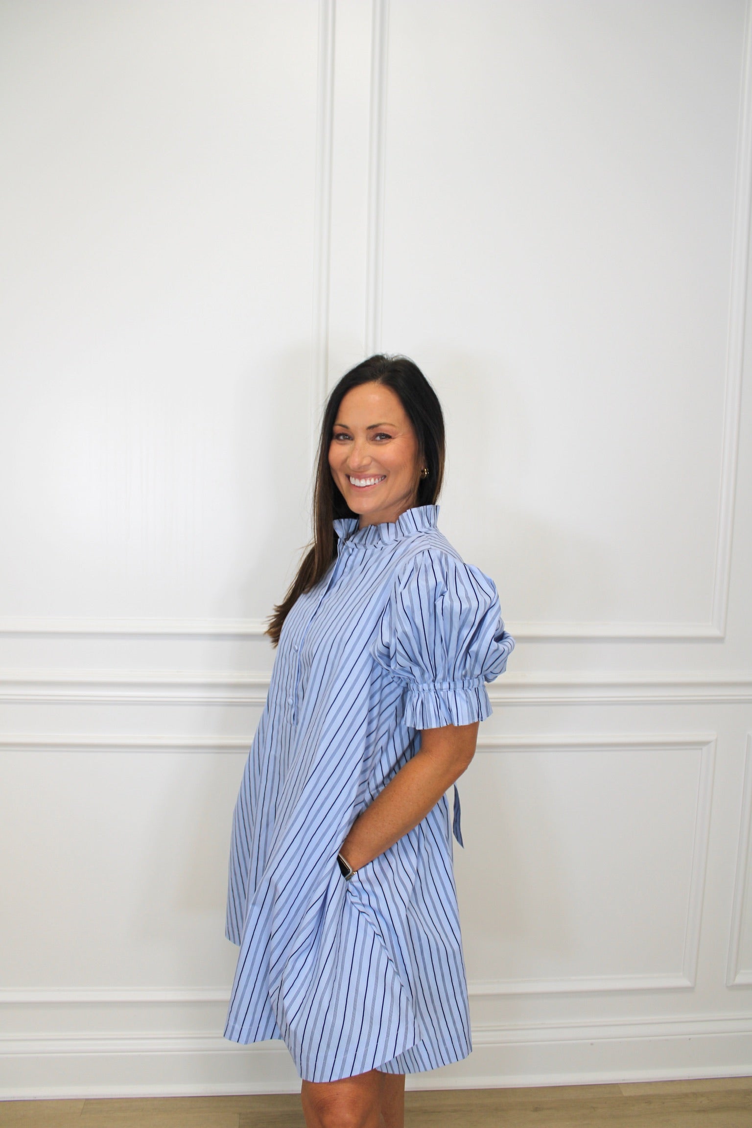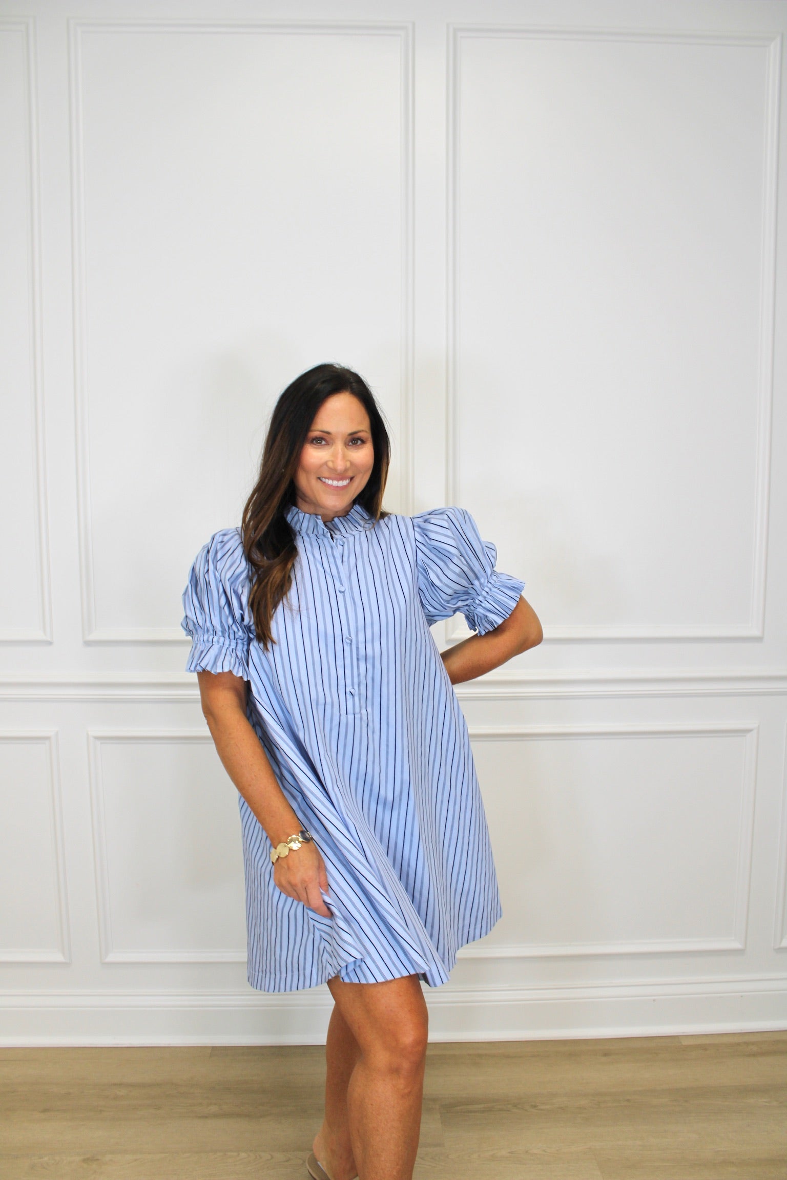 Step into sunshine with the Blue Breeze Striped Dress, featuring charming puff sleeves and fresh stripes that dance with every move. This playful piece adds a breezy vibe to your wardrobe, perfect for days when you want to feel effortlessly fun and bright. Lightweight and easy to wear, it’s your new go-to for casual outings or spontaneous adventures.