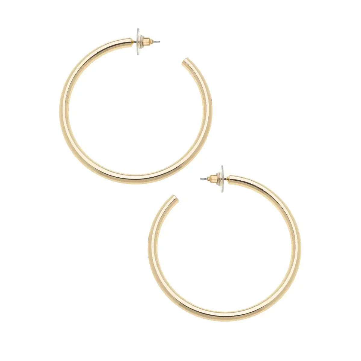 Add a touch of playful charm to your look with the Ivy Hoop Earrings. These gleaming gold hoops, measuring 2.25" across, blend modern simplicity with everyday sparkle. Lightweight and stylish, they’re perfect for brightening up any outfit with a fun, effortless vibe.