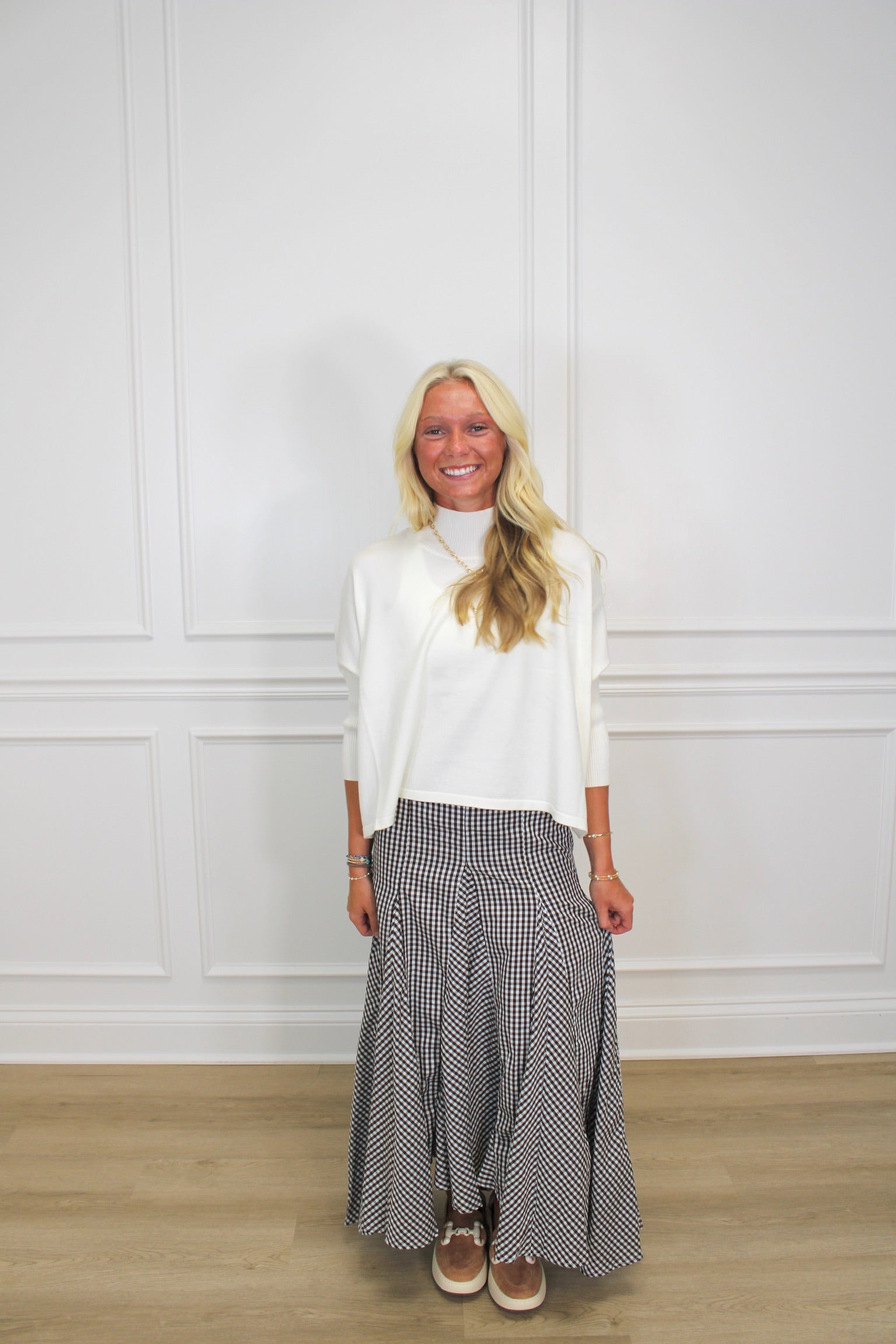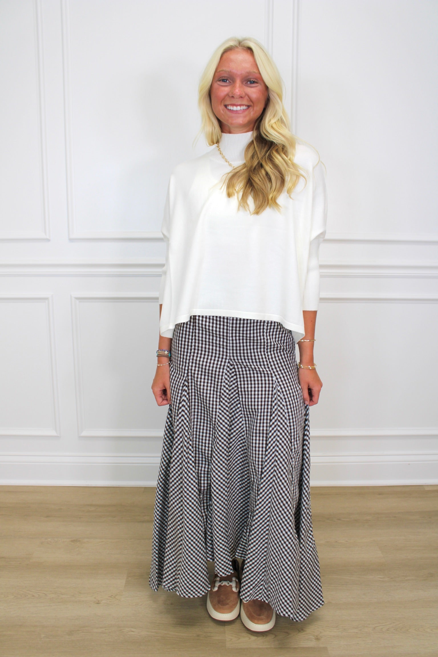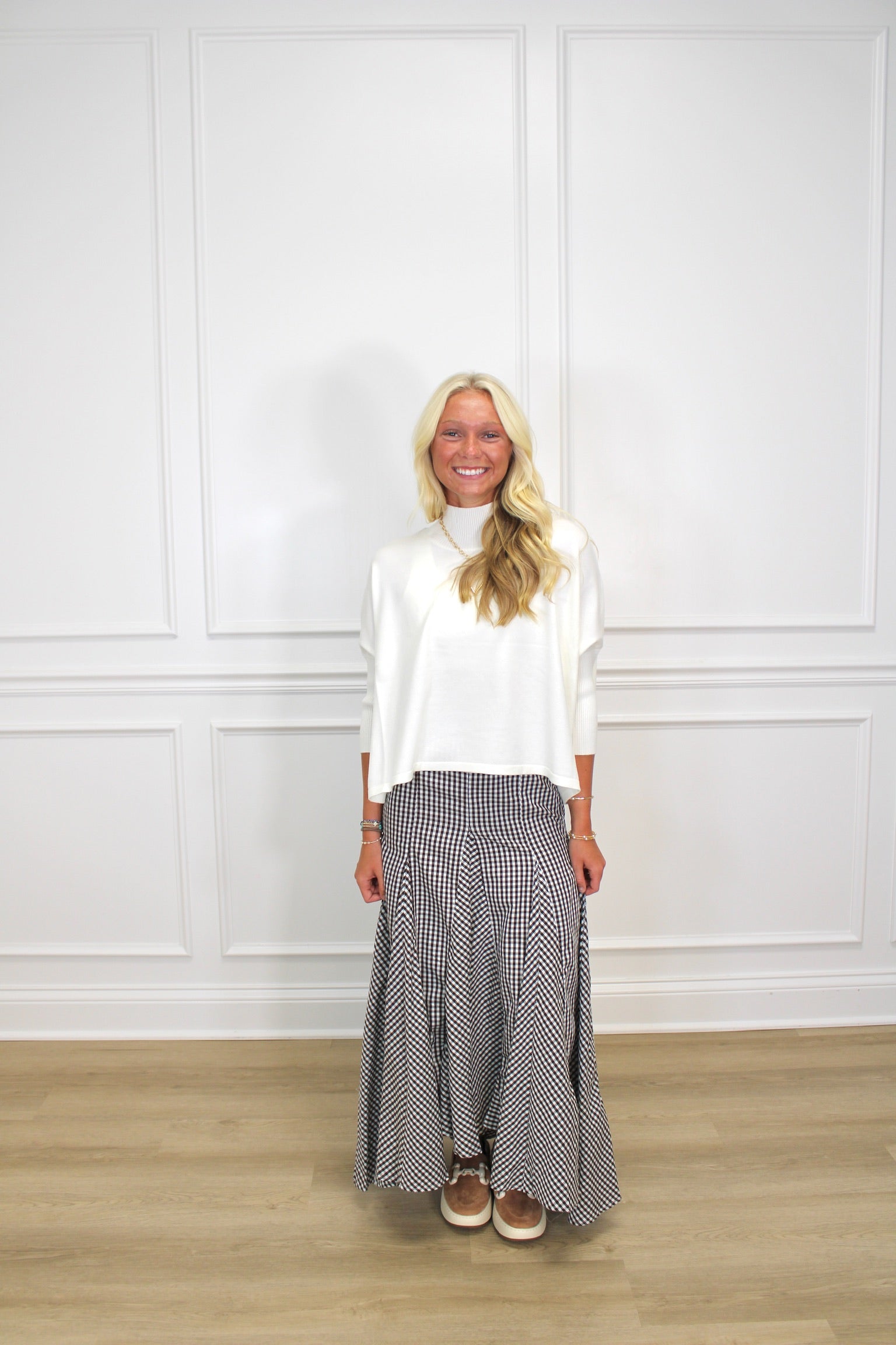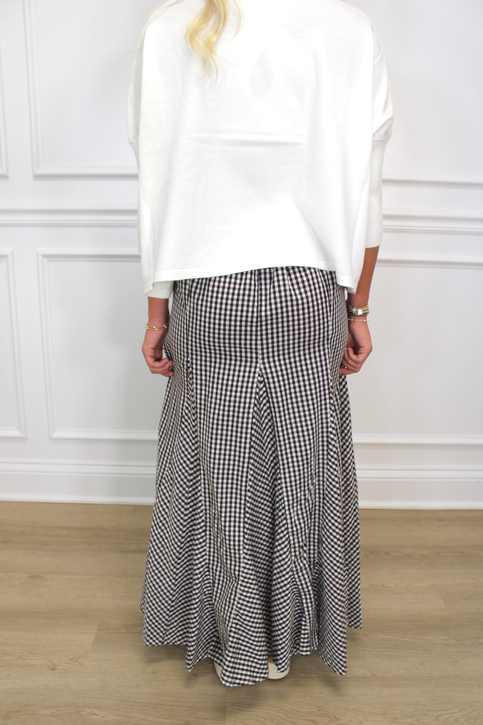 Step out in style with the On The Town Gingham Skirt, featuring a classic brown gingham pattern that adds a fun twist to your wardrobe. Its flattering fit and lightweight fabric make it perfect for casual outings or brunch dates, combining comfort and charm effortlessly. Pair it with your favorite tops and enjoy a playful, chic look wherever you go!
