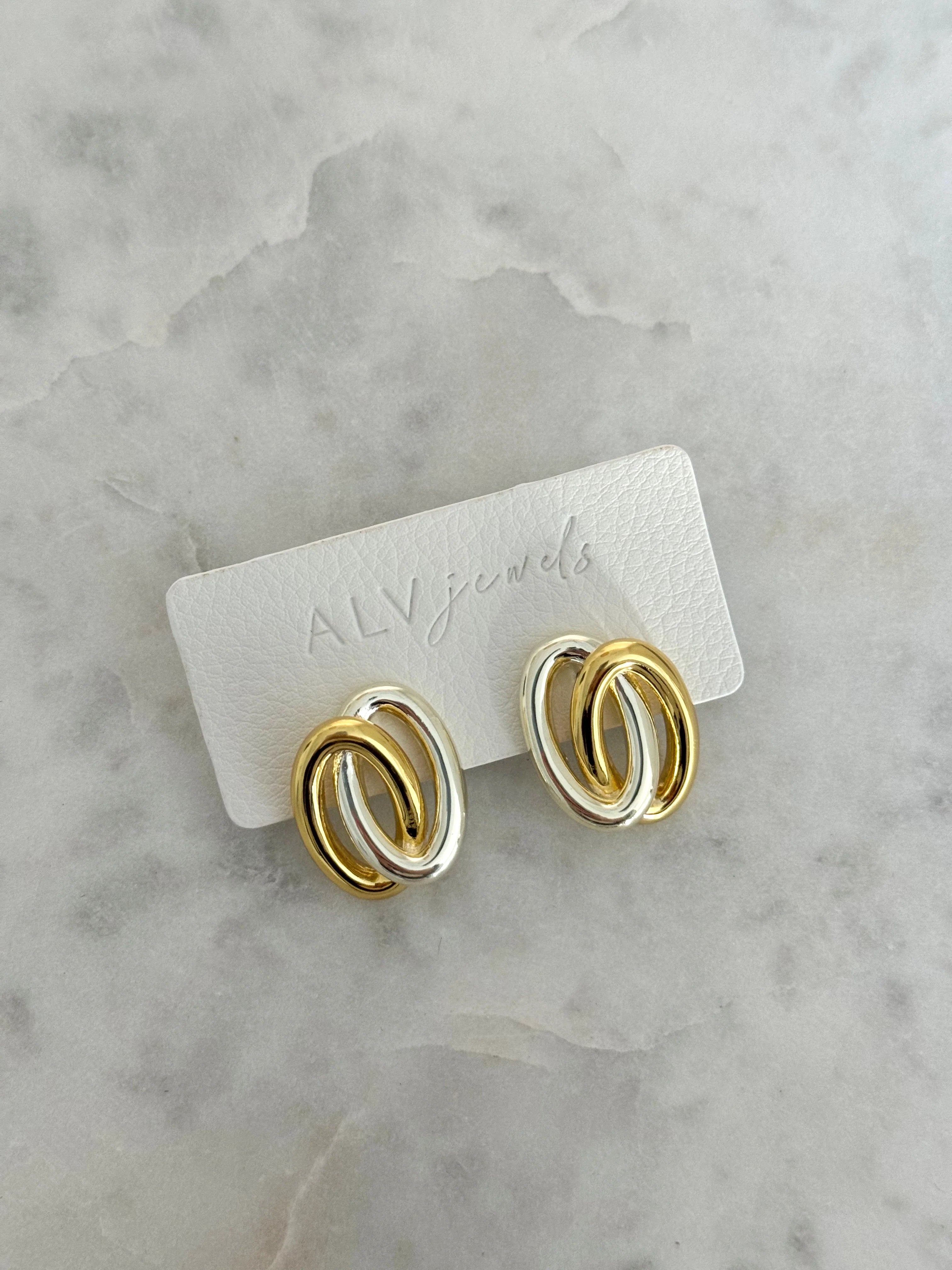 Add a touch of sparkle and fun to your look with these Silver & Gold Loop Stud earrings. Their playful mix of silver and gold loops creates a charming twist on classic studs, perfect for brightening up any outfit with a dash of whimsy and shine.