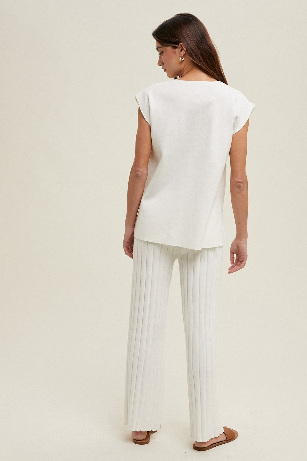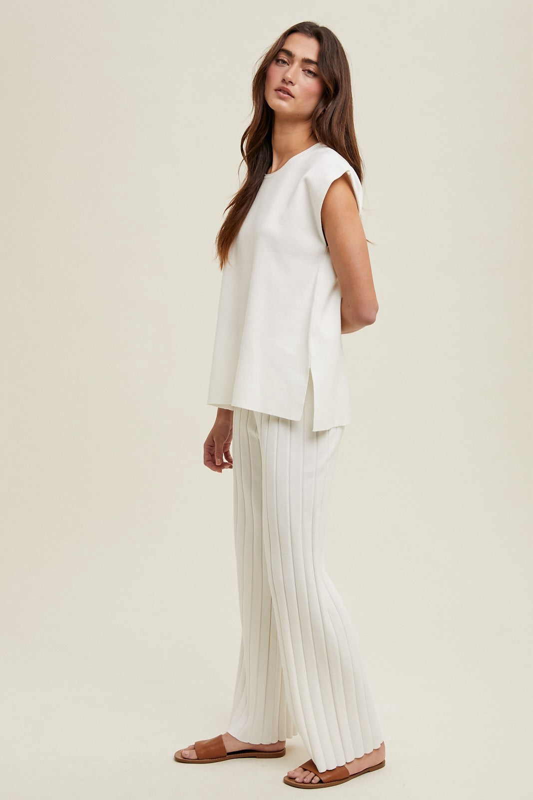 This two-piece off-white sweater set is your new go-to for effortless style. The cap sleeve top features side slits for a breezy fit, while the lightweight fabric keeps you comfy all day. Perfect for throwing on and looking instantly put together, it’s a playful way to upgrade everyday casual.