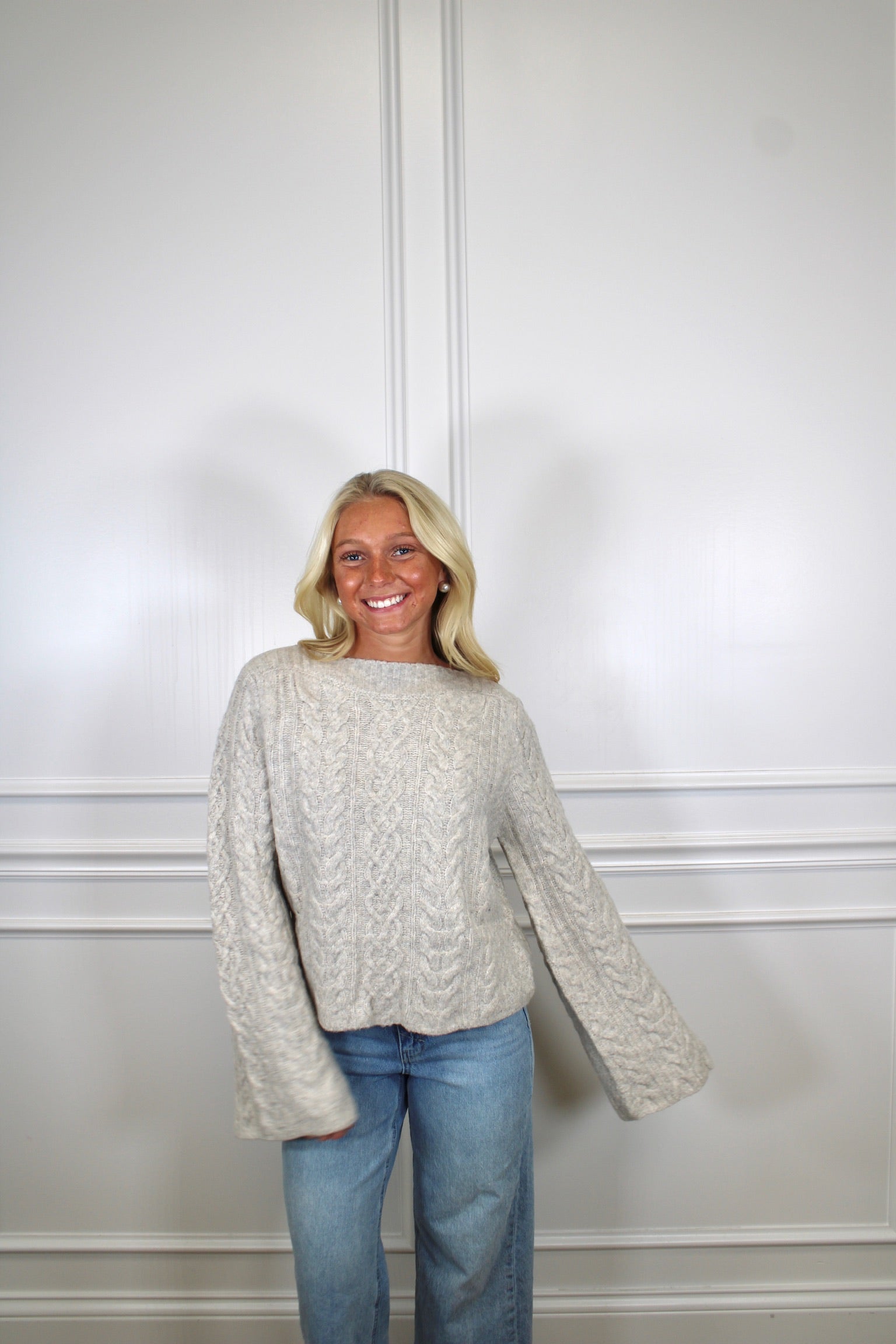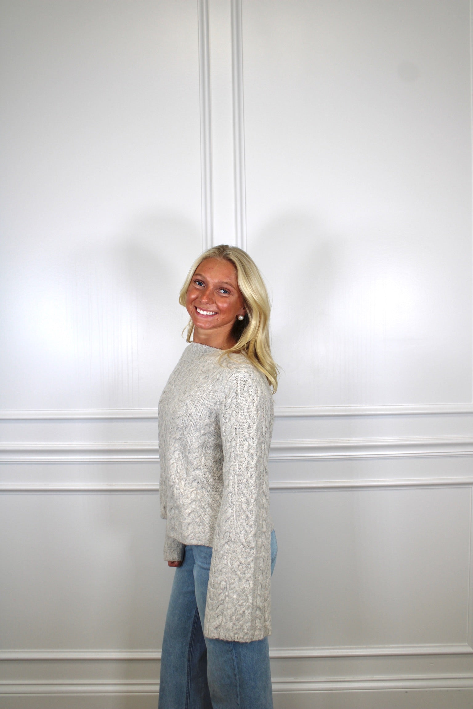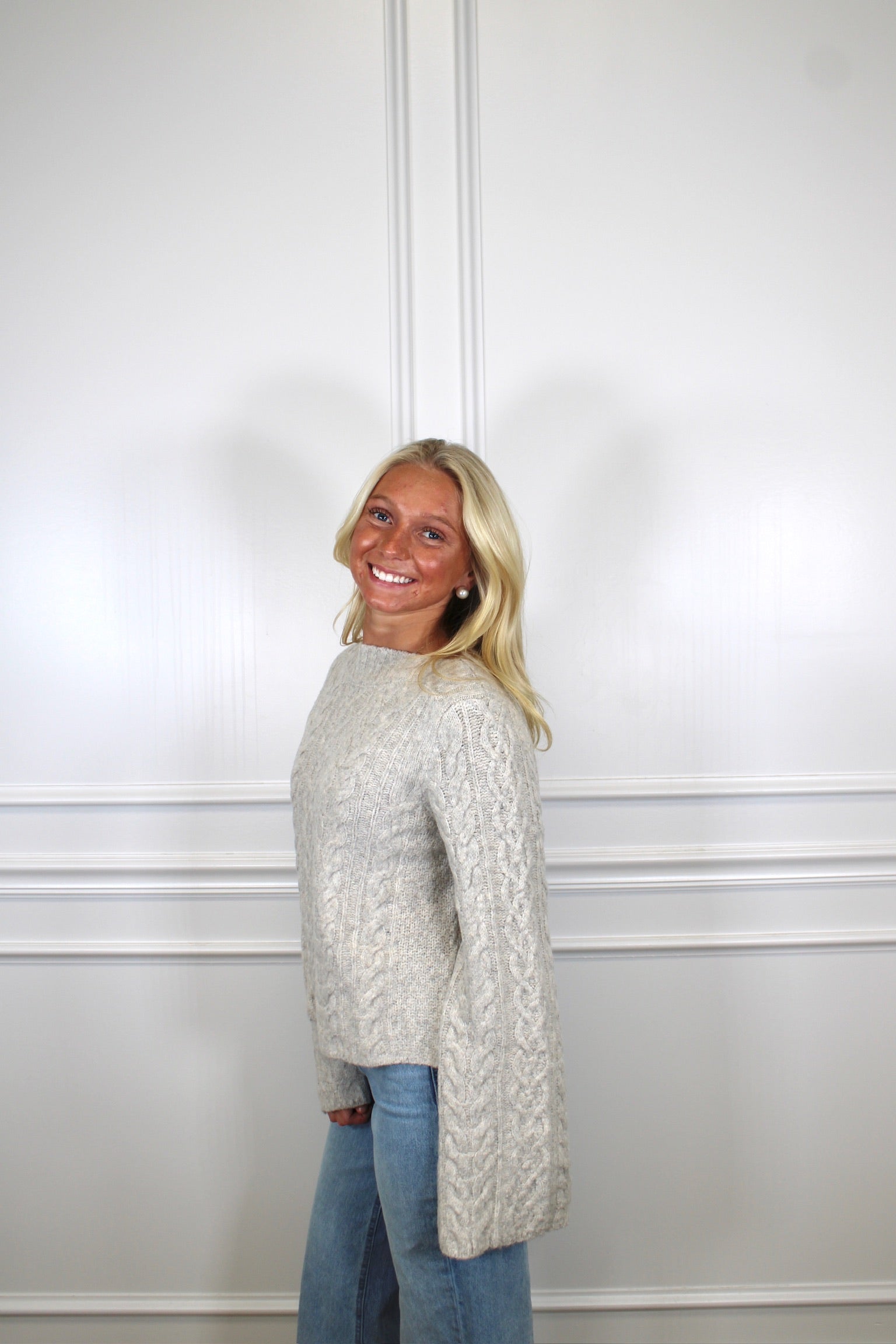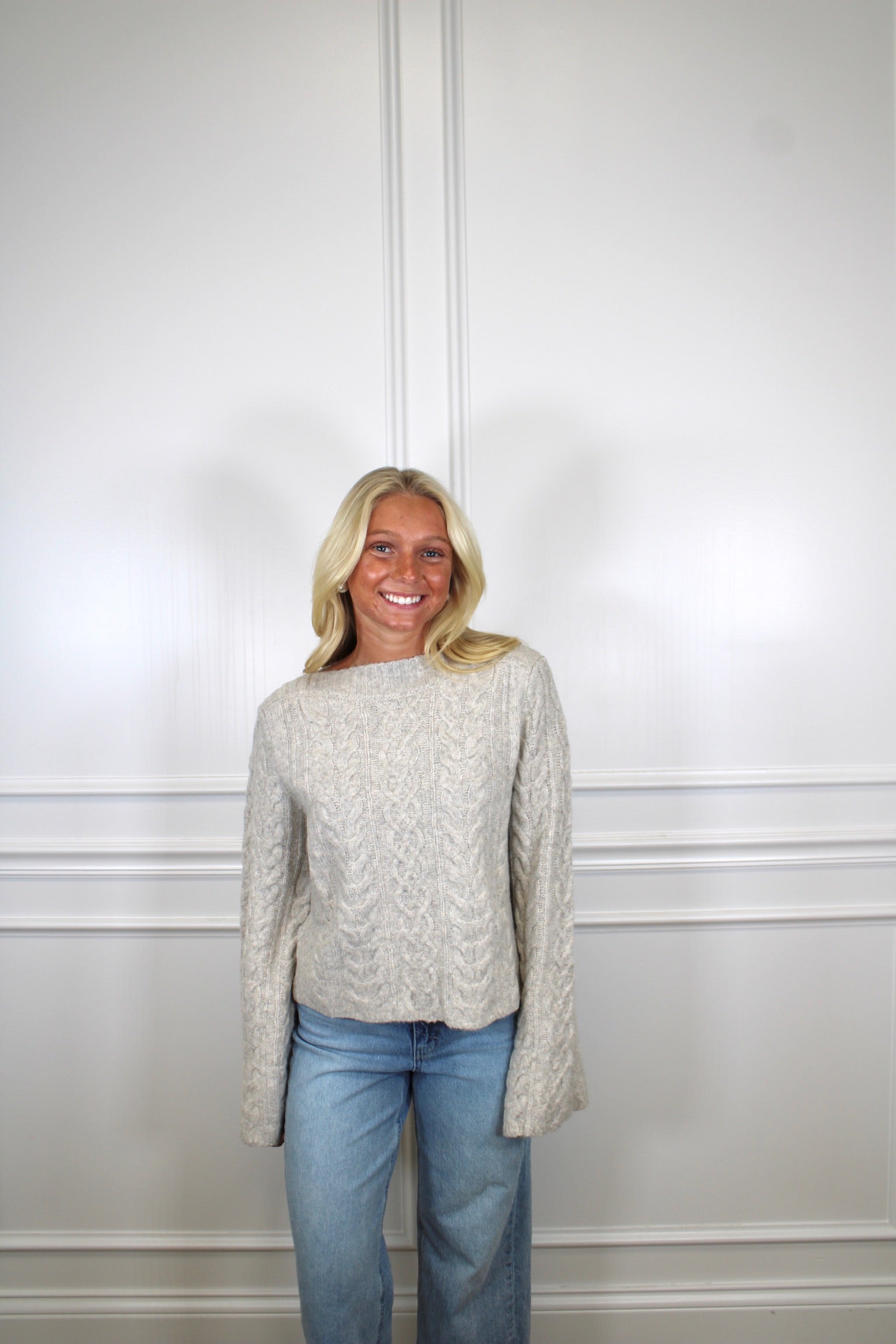Cozy up in style with this charming cable knit crop sweater! Perfect for layering or showing off your favorite high-waisted bottoms, this piece brings effortless texture and warmth to any outfit. The classic cable knit pattern adds timeless appeal, while the cropped silhouette keeps things modern and fun. Whether you're heading to brunch or a casual night out, this sweater delivers comfort without compromising on fashion-forward flair.