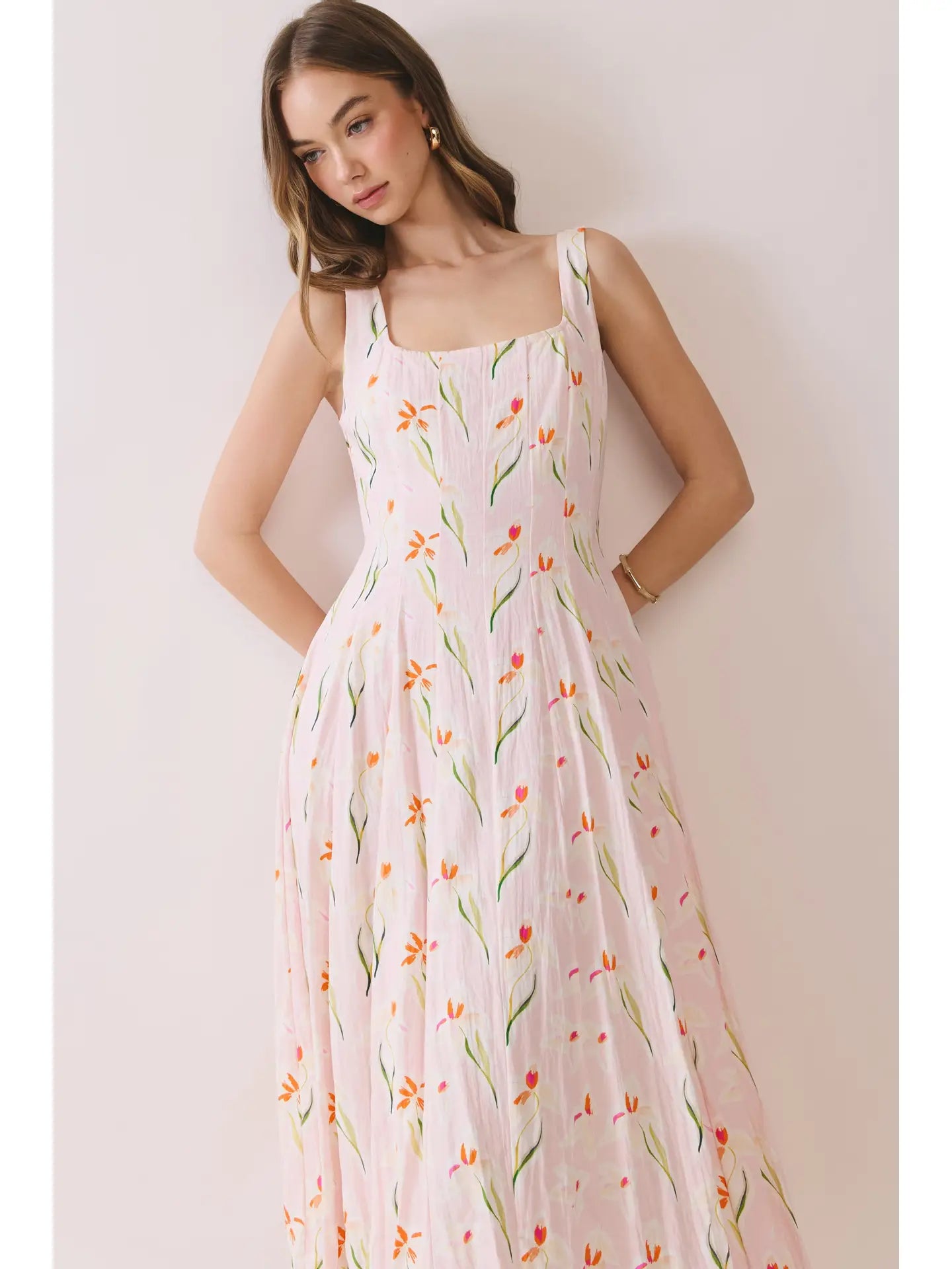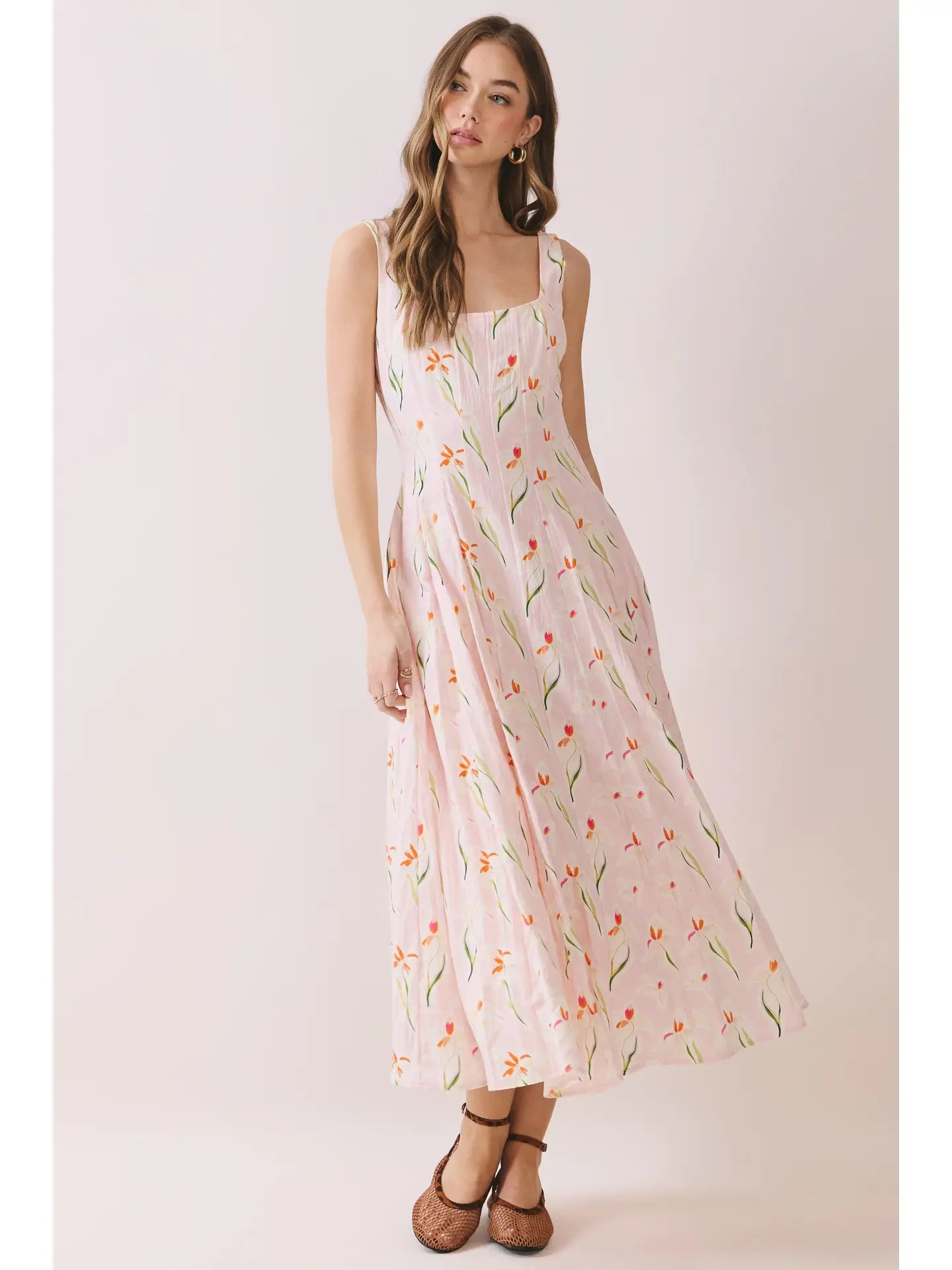 Twirl through your day in this charming Flower Garden Dress, where delicate florals dance across every inch of fabric. The square neckline and sturdy wide straps offer flattering support, while the flowing midi-to-maxi skirt moves beautifully with each step. A hidden back zipper ensures an effortless fit, and the soft, breathable material keeps you comfortable from morning to night. Perfect for garden parties, casual outings, or whenever you want to feel like you're blooming.