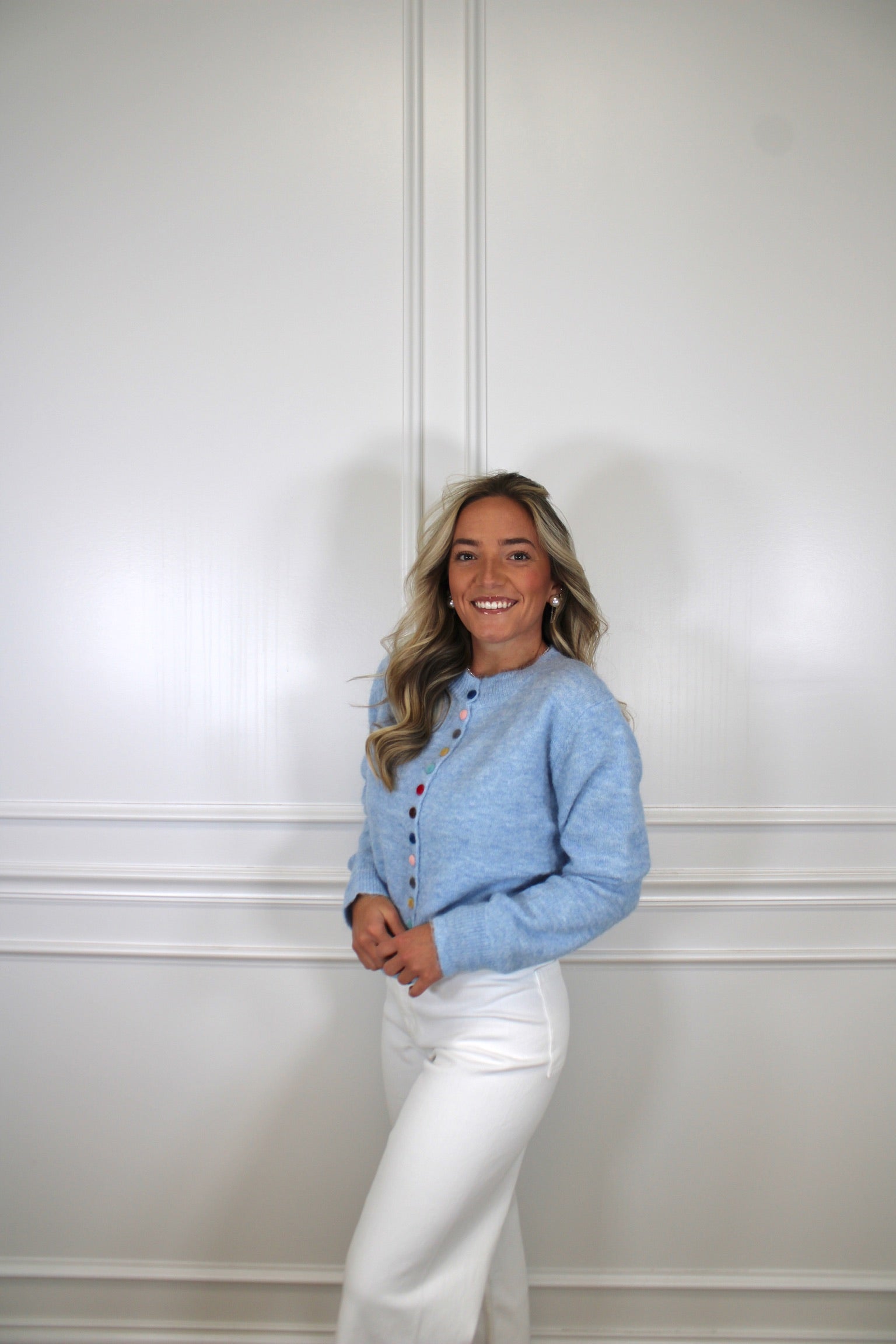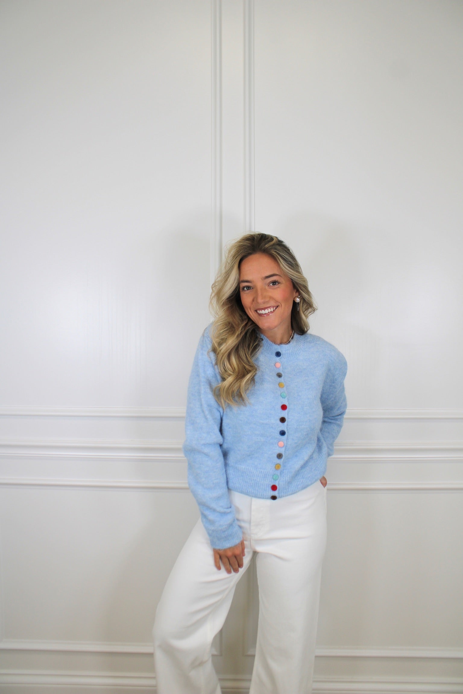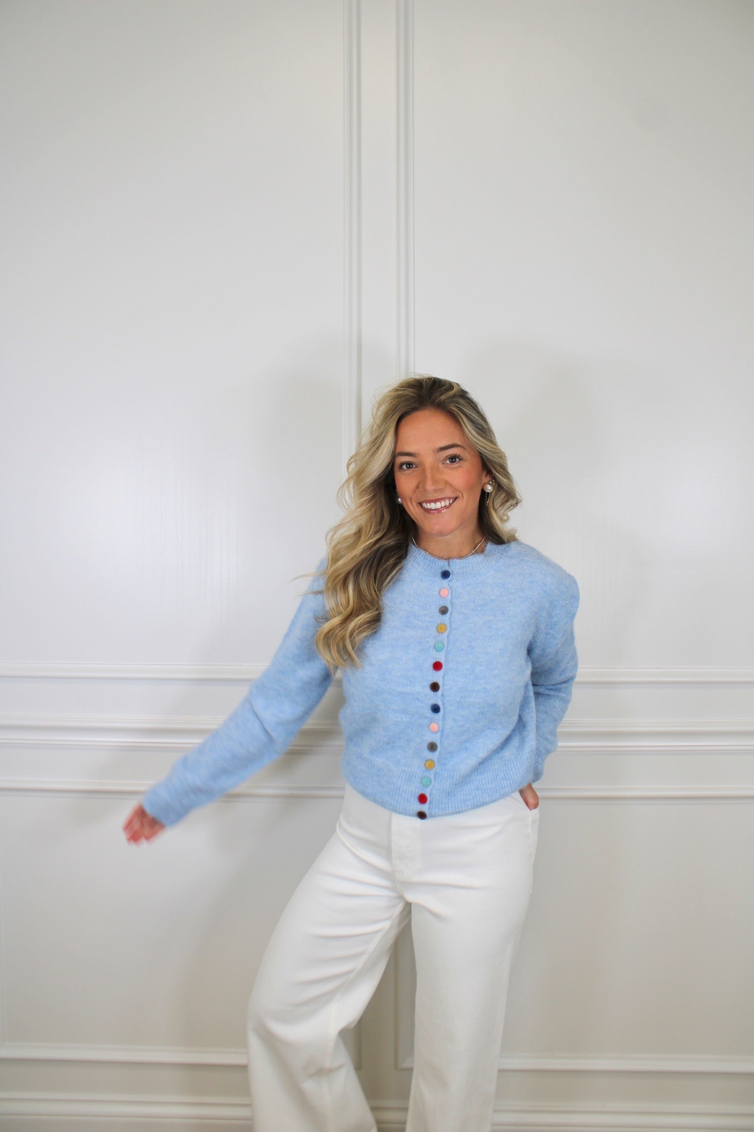 Layer up in style with this vibrant multi-color button knit cardigan! Perfect for mixing and matching with your favorite outfits, this cozy piece features a playful palette that brings personality to any wardrobe. The classic button-front design makes it easy to wear open or closed, while the soft knit fabric keeps you comfortable all day long. Whether you're heading to the office, running errands, or relaxing at home, this versatile cardigan is your go-to for effortless, colorful style.