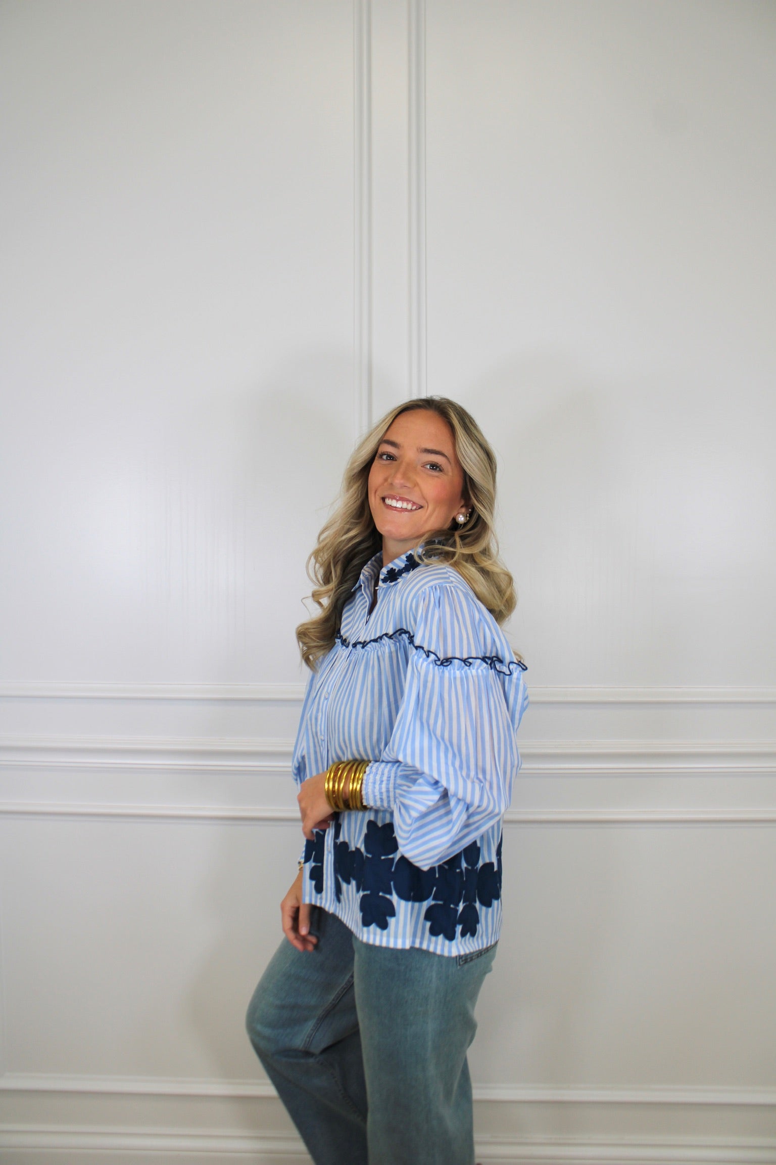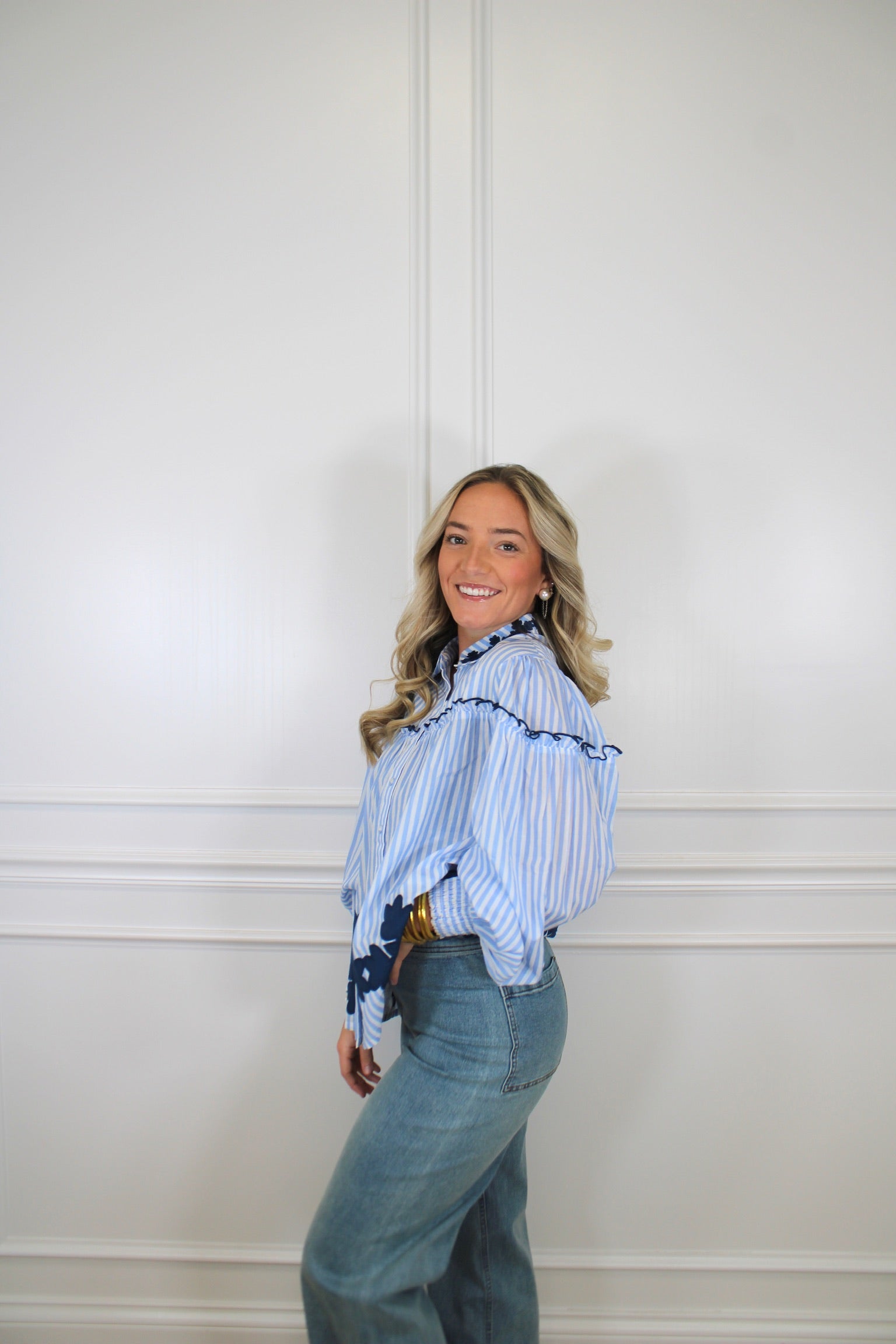 Introducing the Frankie Blouse in a cheerful blue stripe! This versatile piece brings effortless style to your everyday wardrobe. The crisp striped pattern adds visual interest while the relaxed fit keeps you comfortable all day long. Perfect for pairing with jeans, skirts, or trousers, the Frankie is your go-to blouse for casual outings, weekend adventures, or laid-back office vibes. Timeless stripes never go out of style—grab yours today!