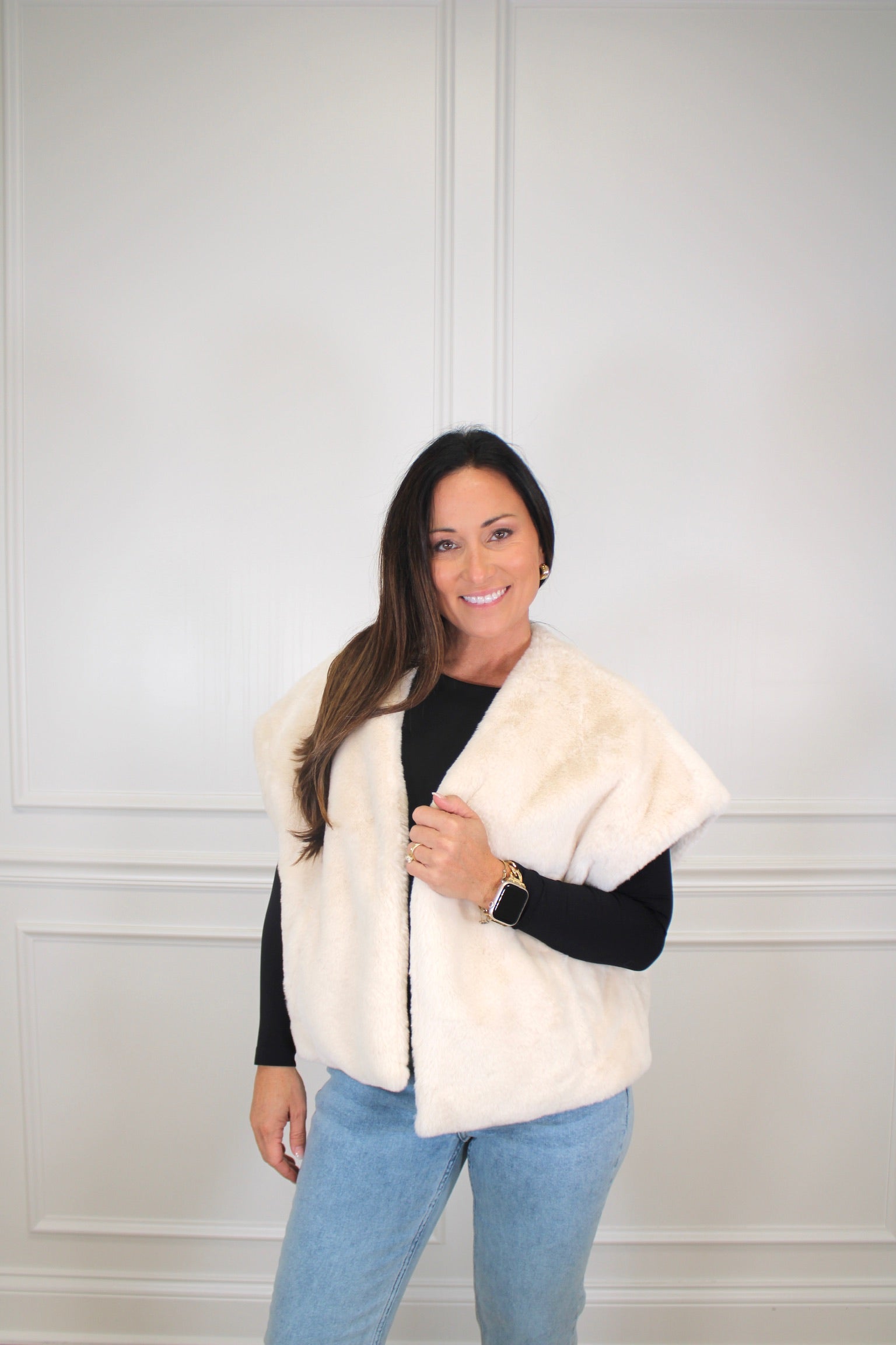 Wrap yourself in luxury with this oversized faux fur vest—the ultimate cozy-chic essential for winter! Soft, sumptuous, and seriously stylish, it layers beautifully over everything from casual tees to elegant dresses. Perfect for adding instant glamour and warmth to your seasonal wardrobe. Whether you're heading out for a night on the town or keeping it casual, this statement piece brings that plush, indulgent vibe that makes every outfit feel special. Stay toasty, stay fabulous!