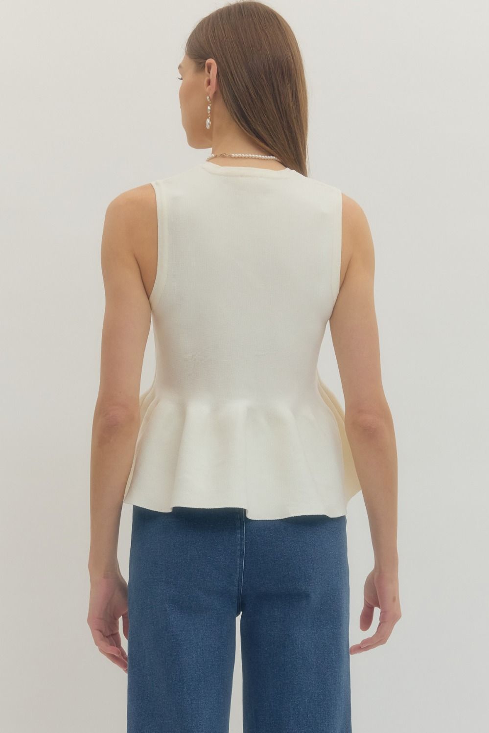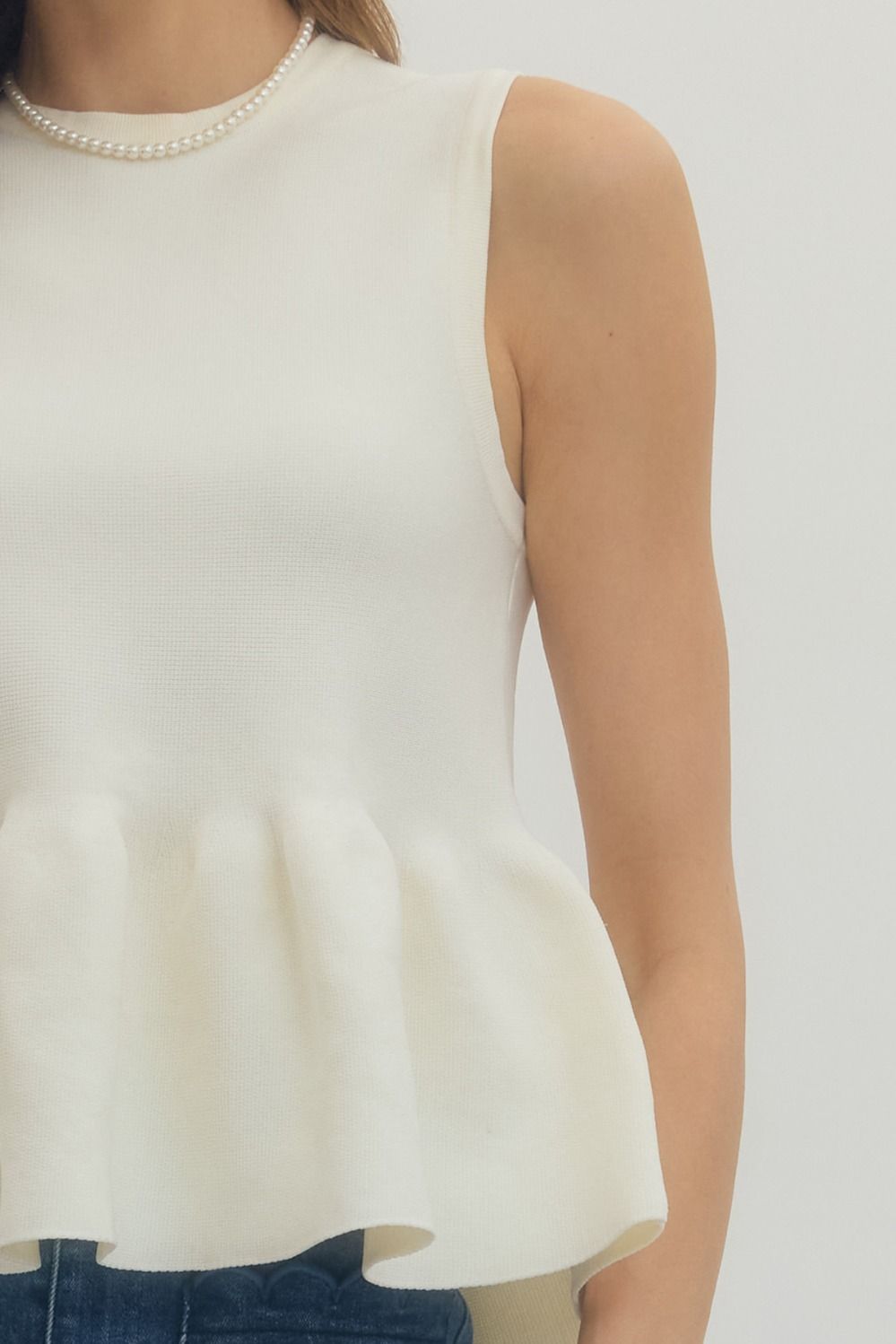 Effortless elegance meets modern style with this solid sleeveless peplum top. Crafted from lightweight ribbed knit fabric, it features a flattering peplum silhouette that adds dimension and movement. The unlined, non-sheer construction ensures comfortable everyday wear, while the sleeveless design makes it perfect for layering or wearing solo. A versatile piece that transitions seamlessly from casual to dressed-up occasions.