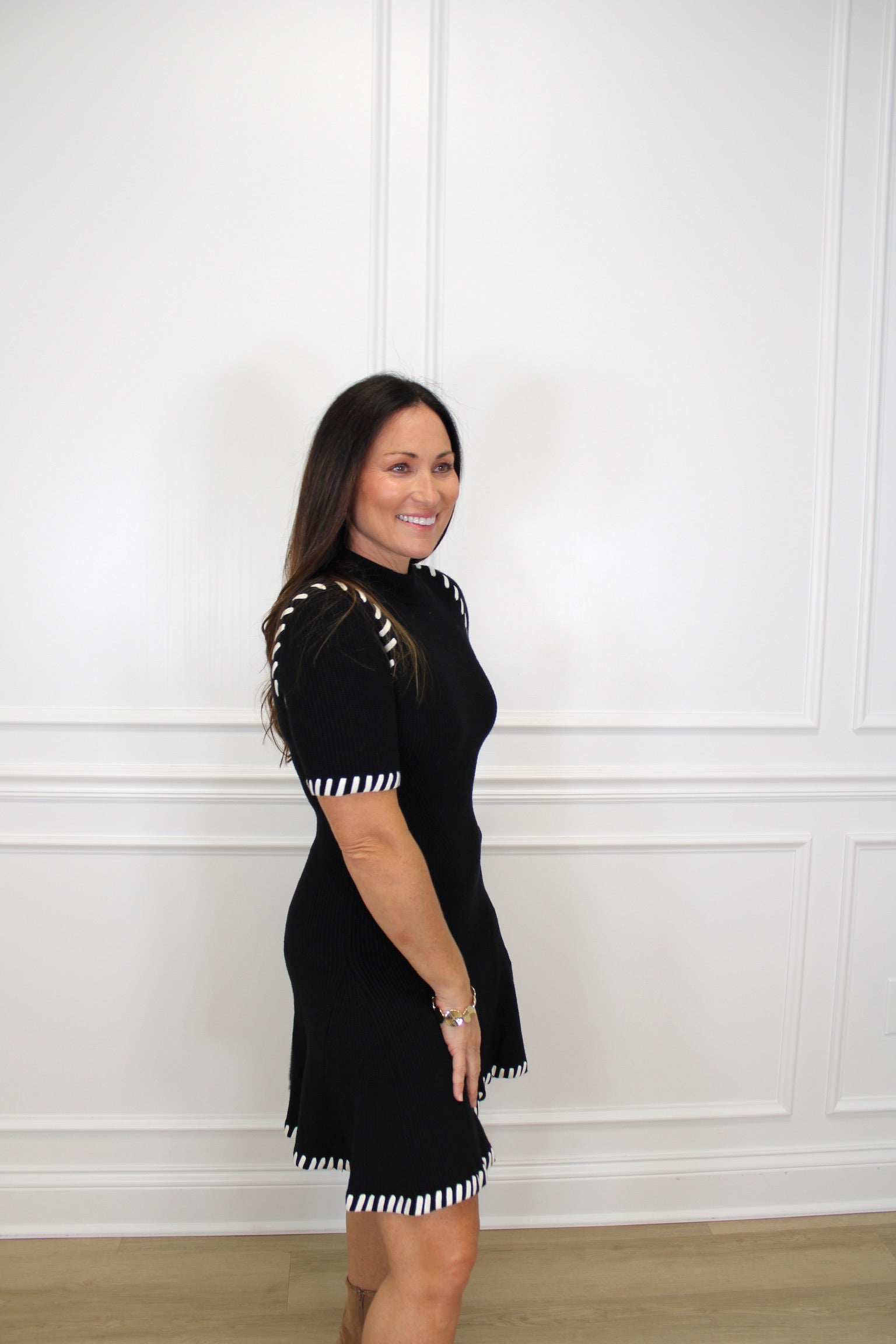 Step out in style with the Framed In Black Mini Dress, featuring a sleek black exterior perfectly lined in crisp white for bold contrast. This playful dress adds a chic edge to your look, ideal for turning heads at any event. Its mini length keeps it flirty, while the contrasting lining adds a fun surprise with every move. Perfect for nights out or special occasions when you want to show off your confident, stylish vibe.