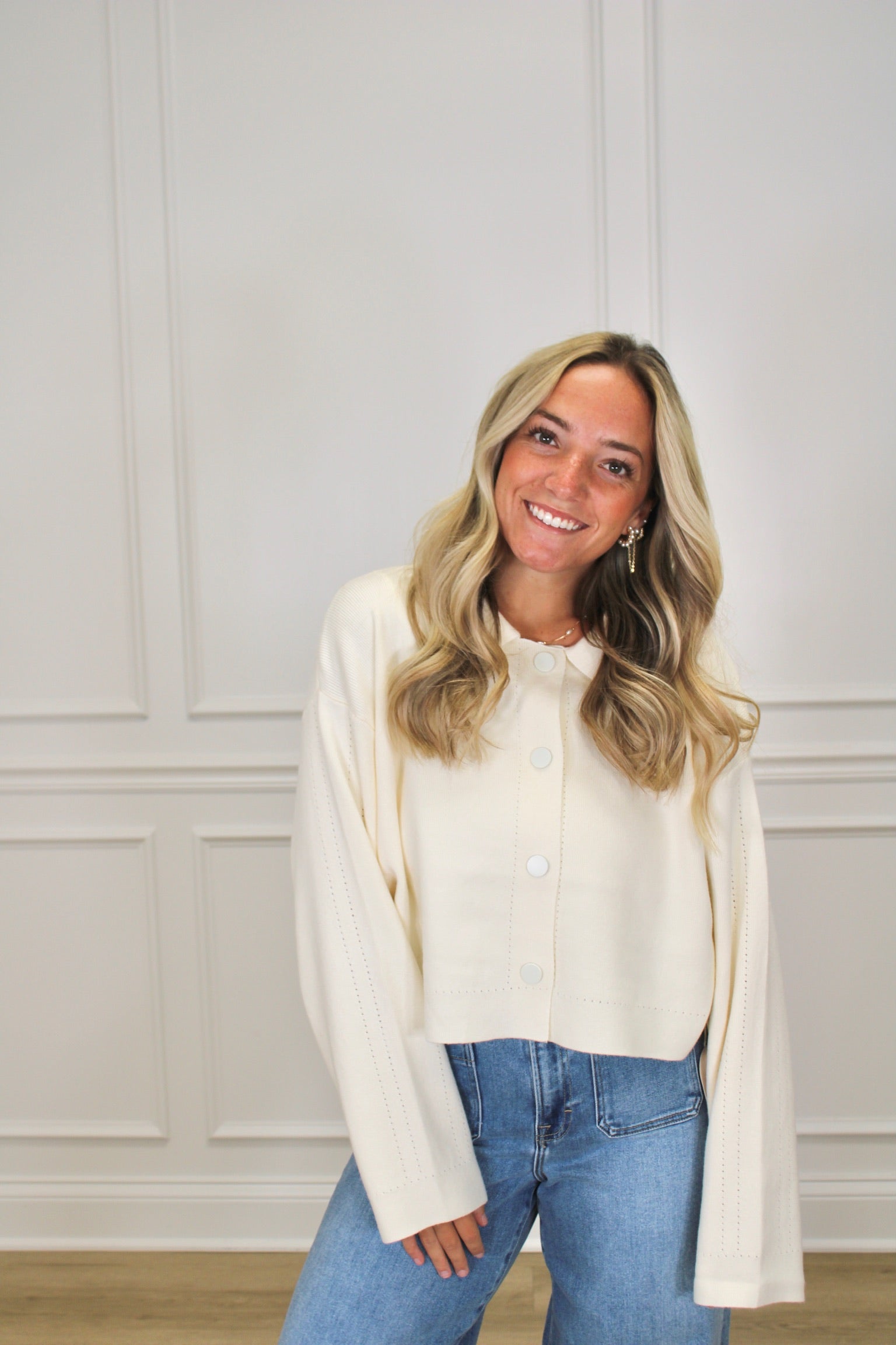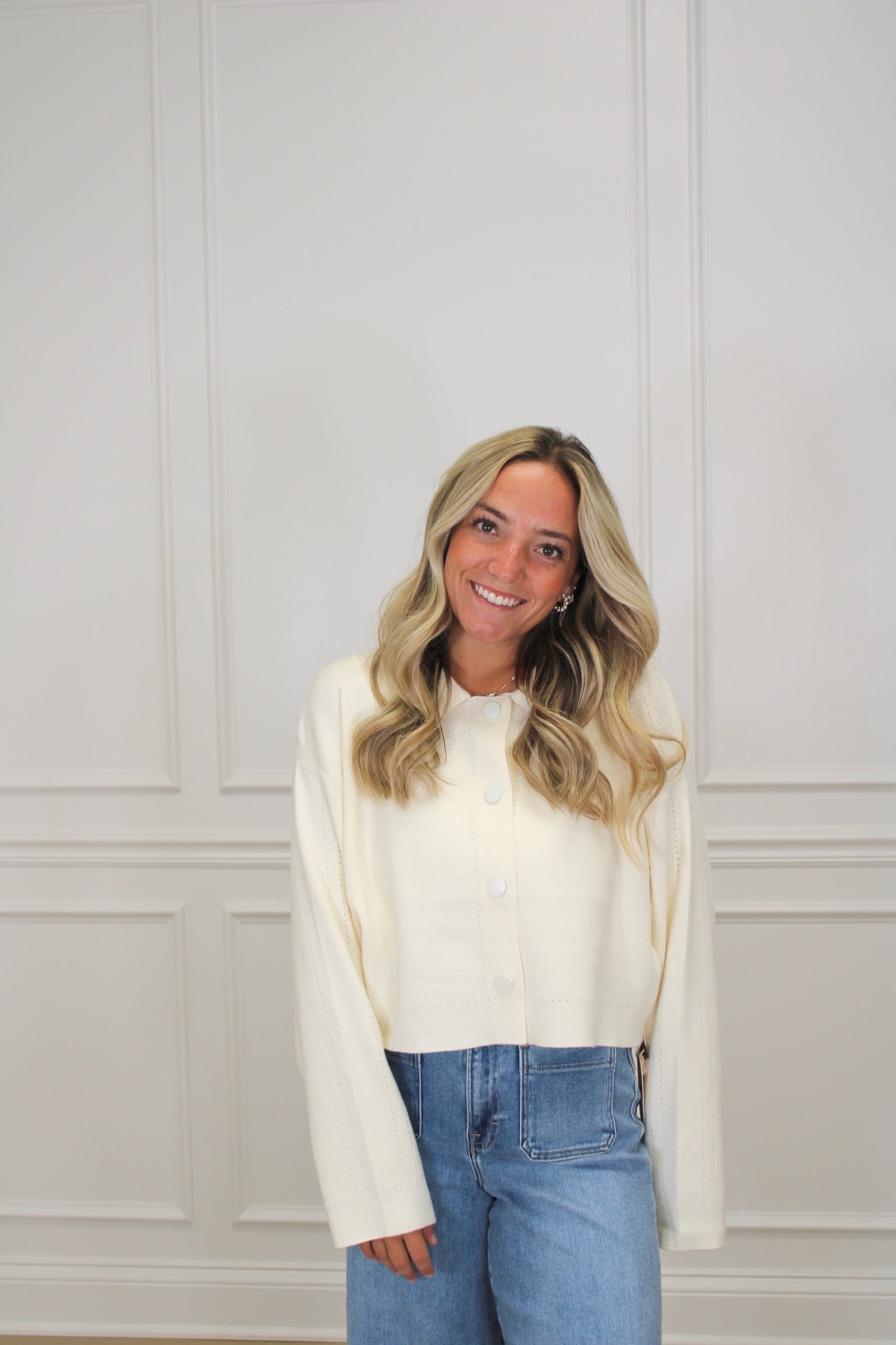 Wrap yourself in cozy charm with the Issa Jacket, a cream sweater jacket made for playful days and breezy evenings. Its soft texture invites you to snuggle up while the classic cut keeps you effortlessly stylish. Perfect for layering on casual adventures or adding a touch of warmth to your favorite outfit, the Issa Jacket is your new go-to for comfort with a cheeky twist.