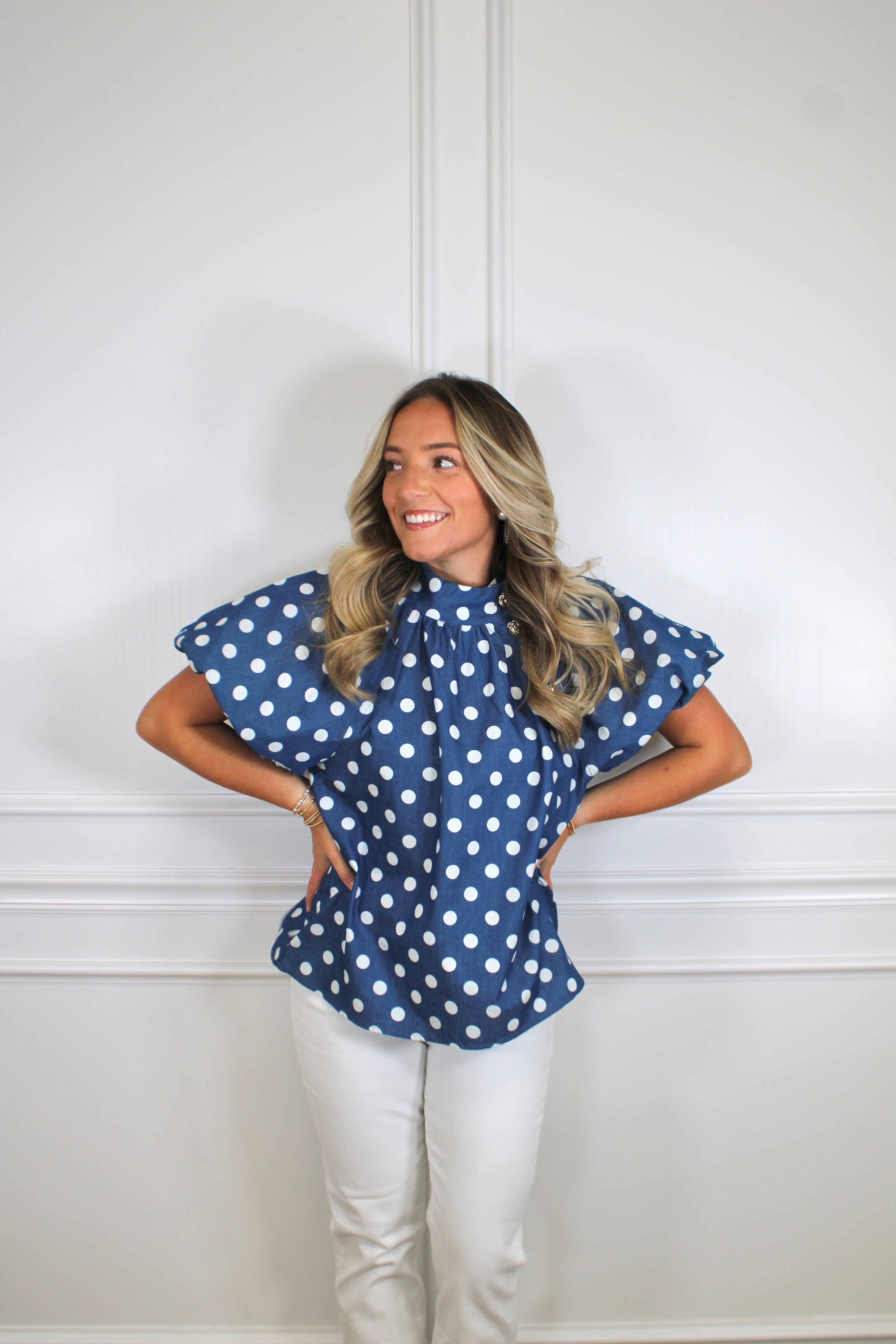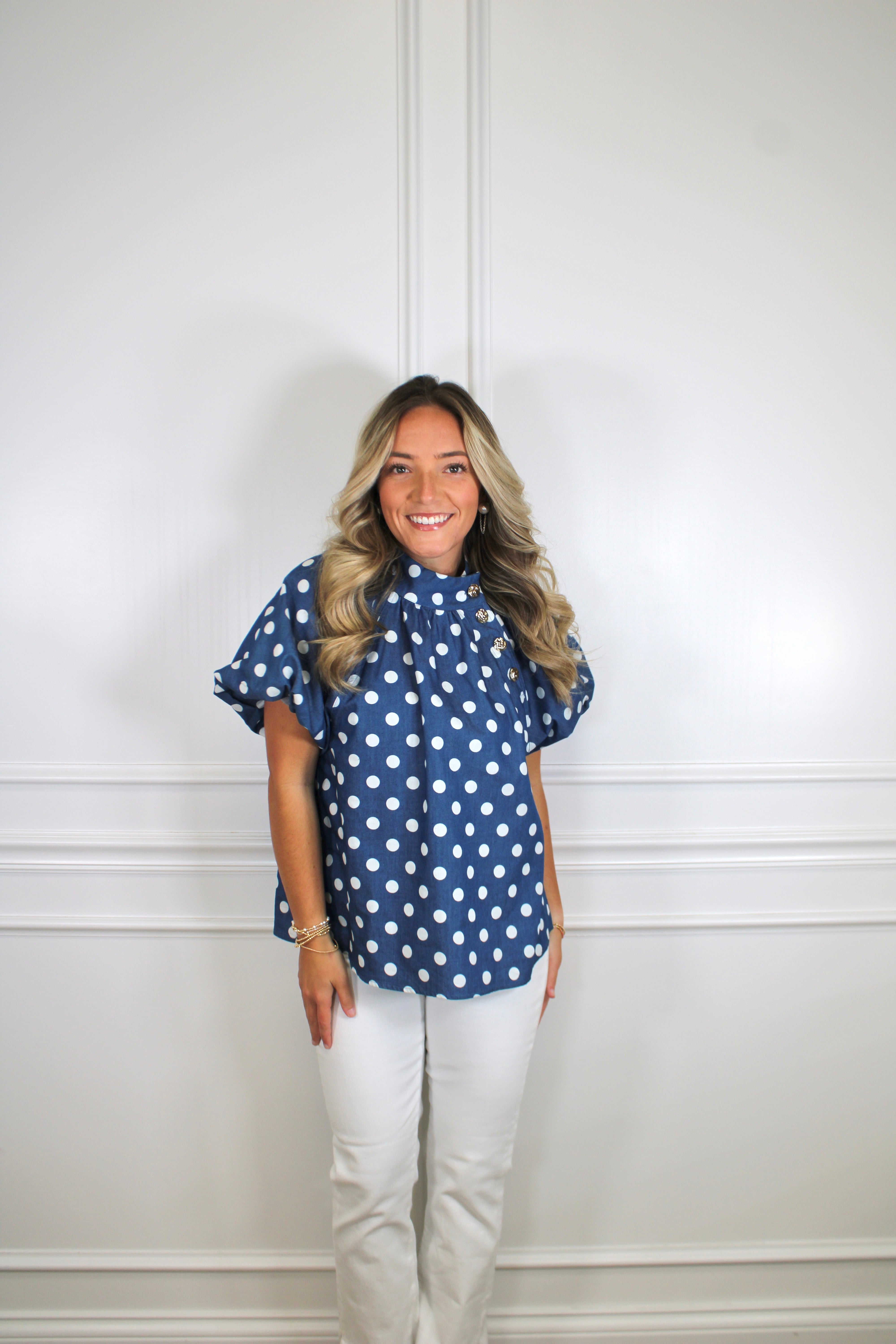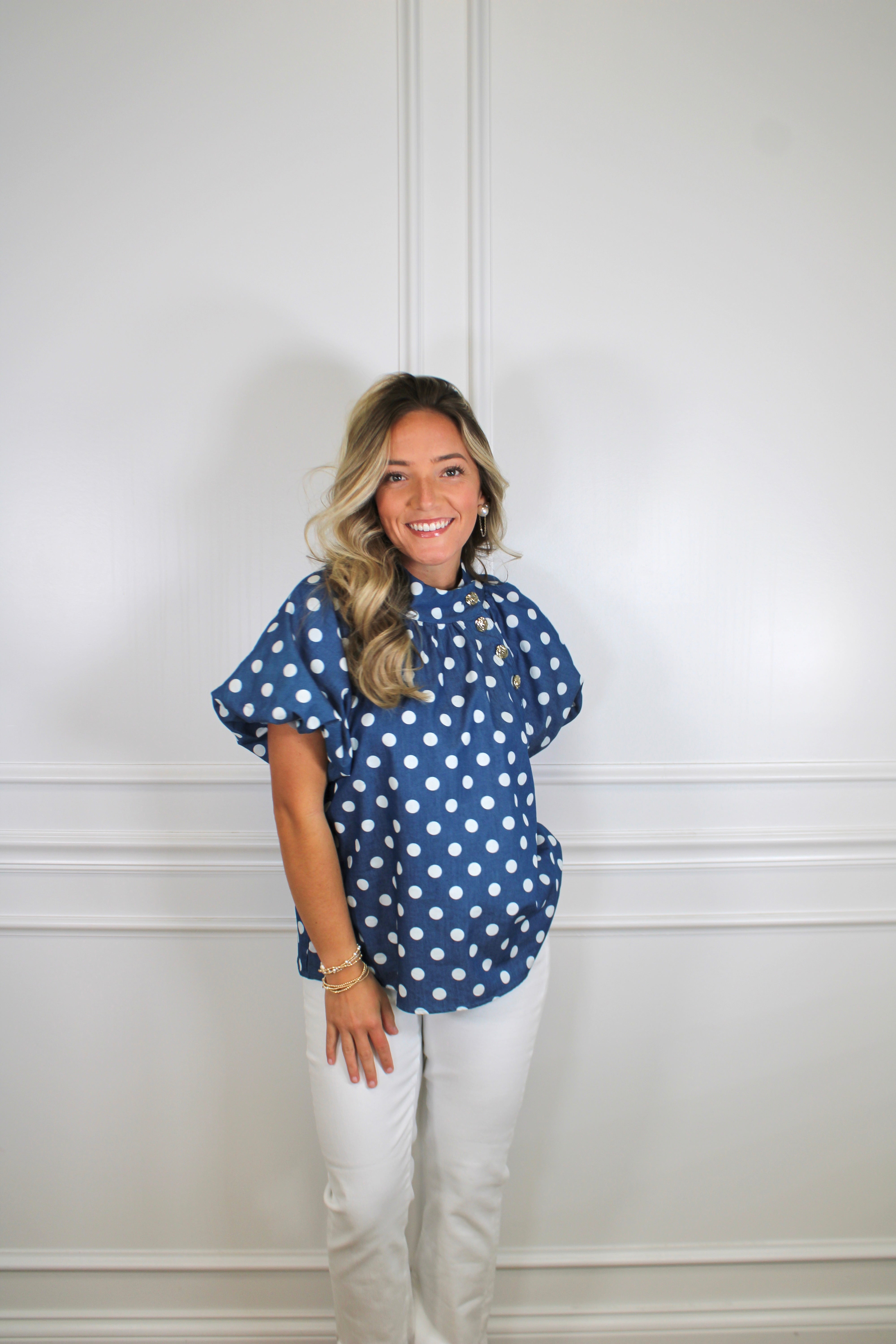 Twirl into sweetness with this charming puff sleeve top! Delicate polka dots dance across the fabric while voluminous sleeves add a playful, feminine touch. Perfect for adding a dash of whimsy to your everyday wardrobe, this versatile piece pairs beautifully with jeans, skirts, or shorts. Whether you're heading to brunch or a casual date night, the Sweet Pea Top brings effortless charm and a sprinkle of fun to any outfit.