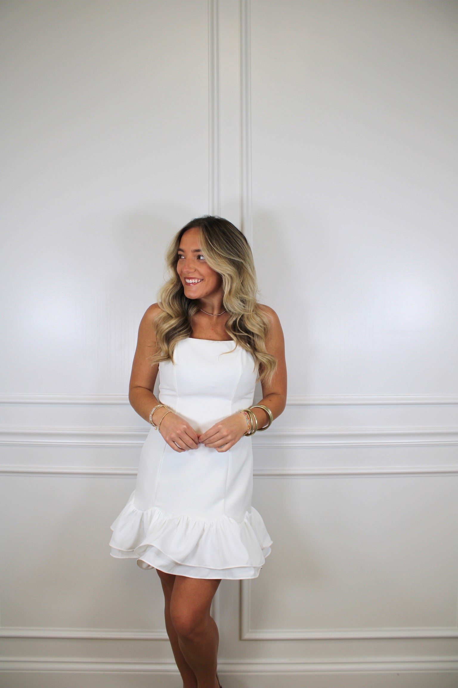 The Audrey Mini is an elegant choice for your most memorable moments. This charming dress features a flattering scallop neckline and a playful ruffle hem that adds movement and dimension. Perfect for graduation celebrations or bridal events, it combines sophistication with a touch of whimsy. The mini length keeps things fresh and modern while the thoughtful design details ensure you'll feel confident and beautiful.