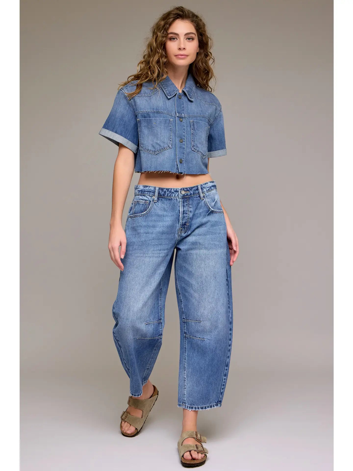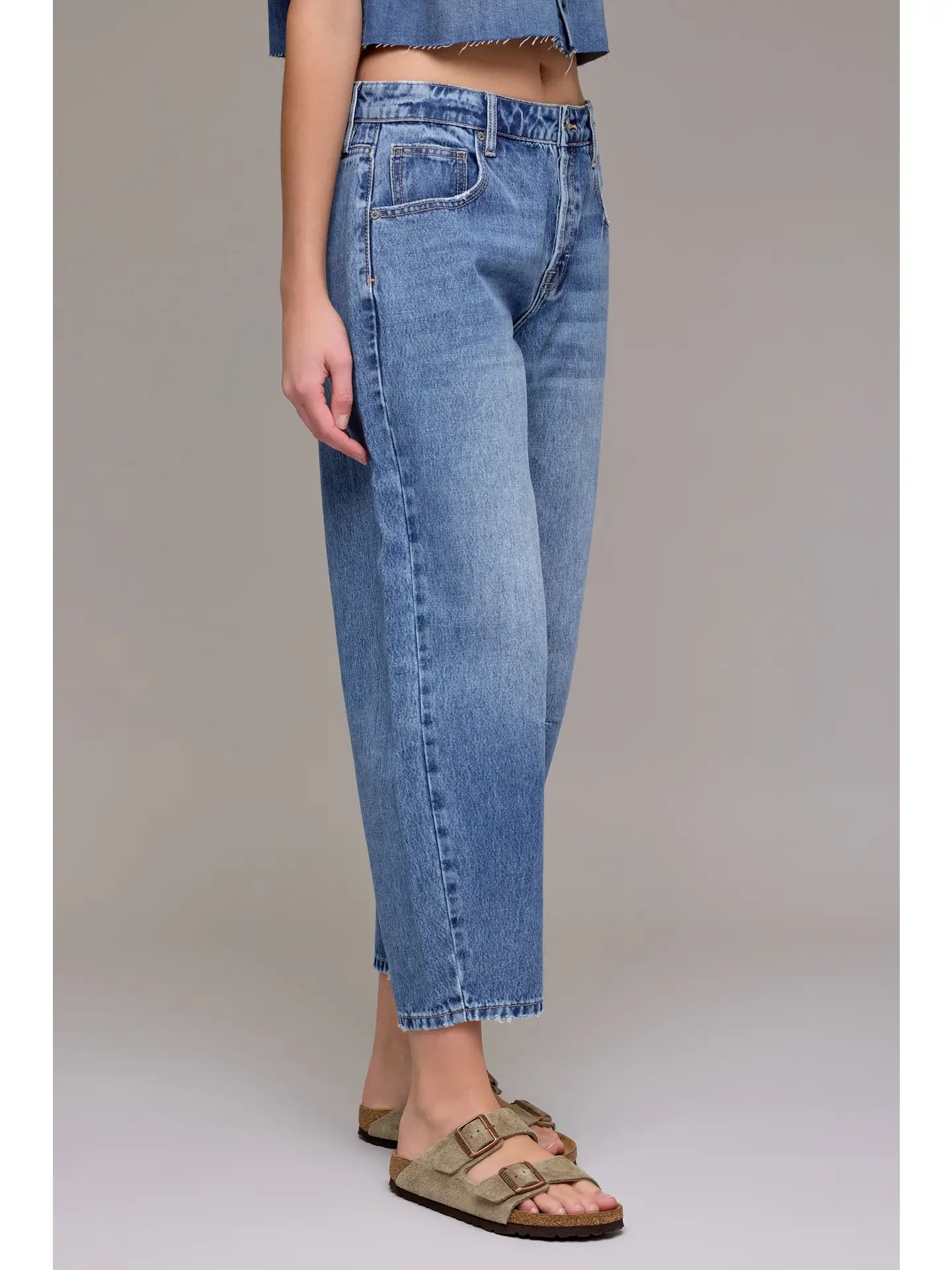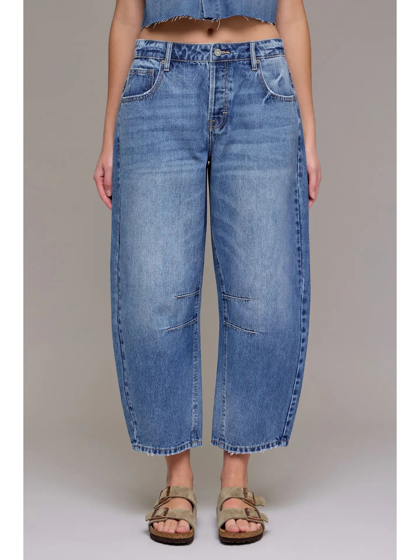 The Sammie Crop Barrel Jean brings effortless cool to your everyday rotation. Cut at a flattering mid-rise with a 25-inch inseam, this ankle-grazing barrel leg style hits right at the sweet spot between cropped and full-length. The relaxed, rounded silhouette pairs perfectly with sneakers, loafers, or your favorite kicks. Whether you're running errands or grabbing coffee with friends, The Sammie delivers that just-right fit that makes getting dressed actually fun.