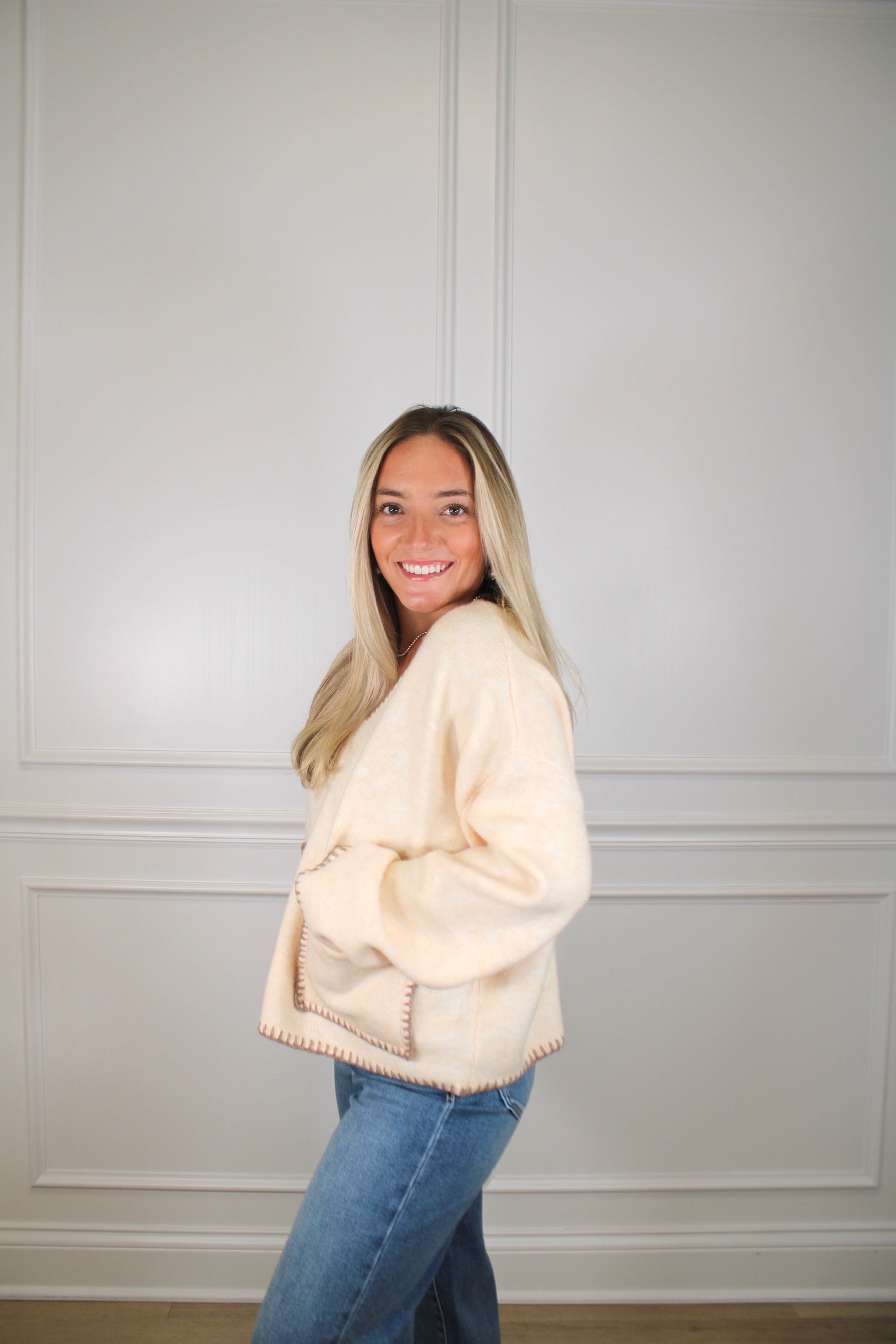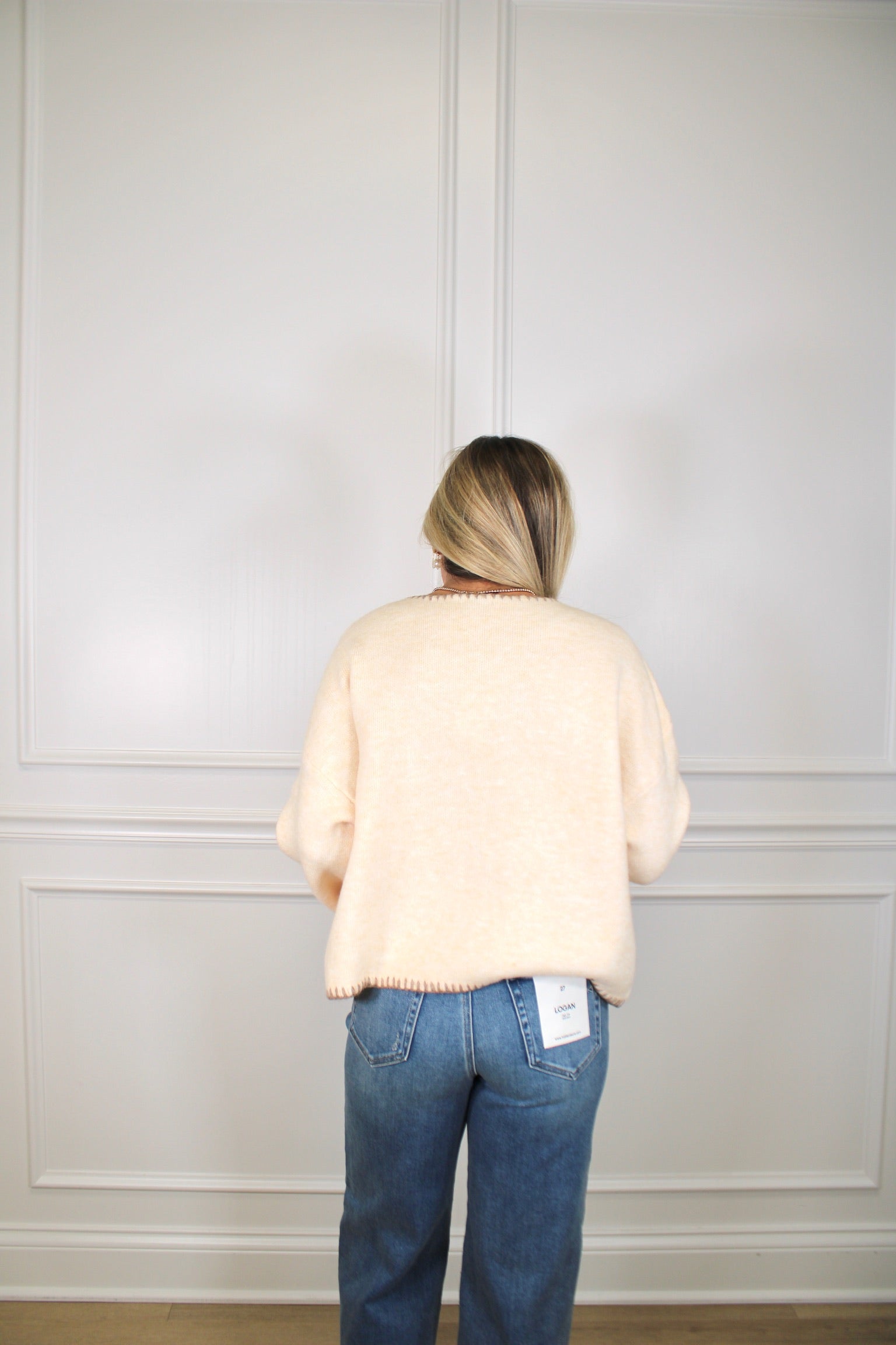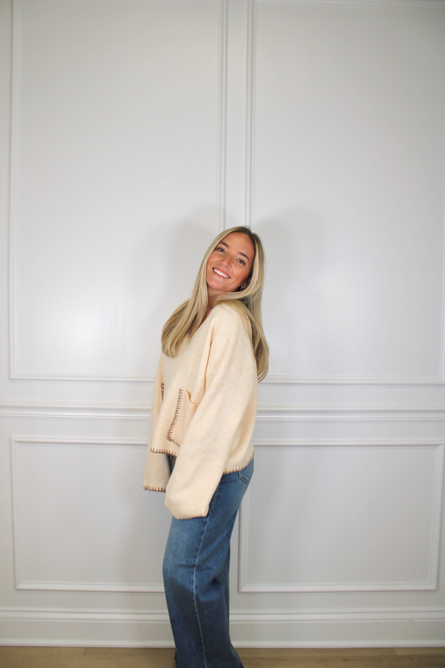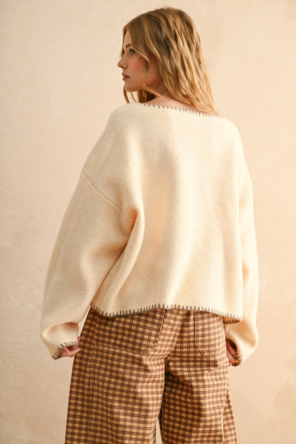 Cozy up in this charming V-neck sweater top featuring adorable stitch detailing that brings a whimsical touch to your everyday wardrobe. The flattering neckline pairs perfectly with jeans, skirts, or layered looks, while the soft fabric keeps you comfortable all day long. Whether you're heading to brunch or settling in for a relaxed weekend, this playful piece adds just the right amount of personality to any outfit. A versatile staple that's sure to become your go-to favorite!