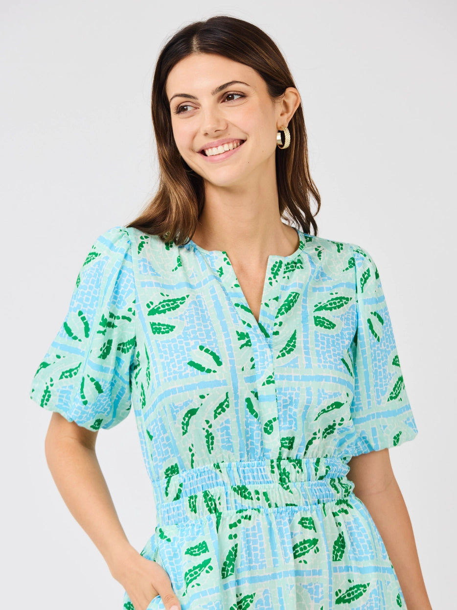 Embrace effortless elegance with the Tracey Trellis Dress, featuring a charming geometric trellis tile pattern perfect for warm-weather adventures. The short sleeves and flowing silhouette create a relaxed, breezy fit ideal for spring and summer days. Whether you're planning a getaway or simply want that vacation-ready aesthetic, this maxi/midi dress delivers comfort and style in one versatile piece.